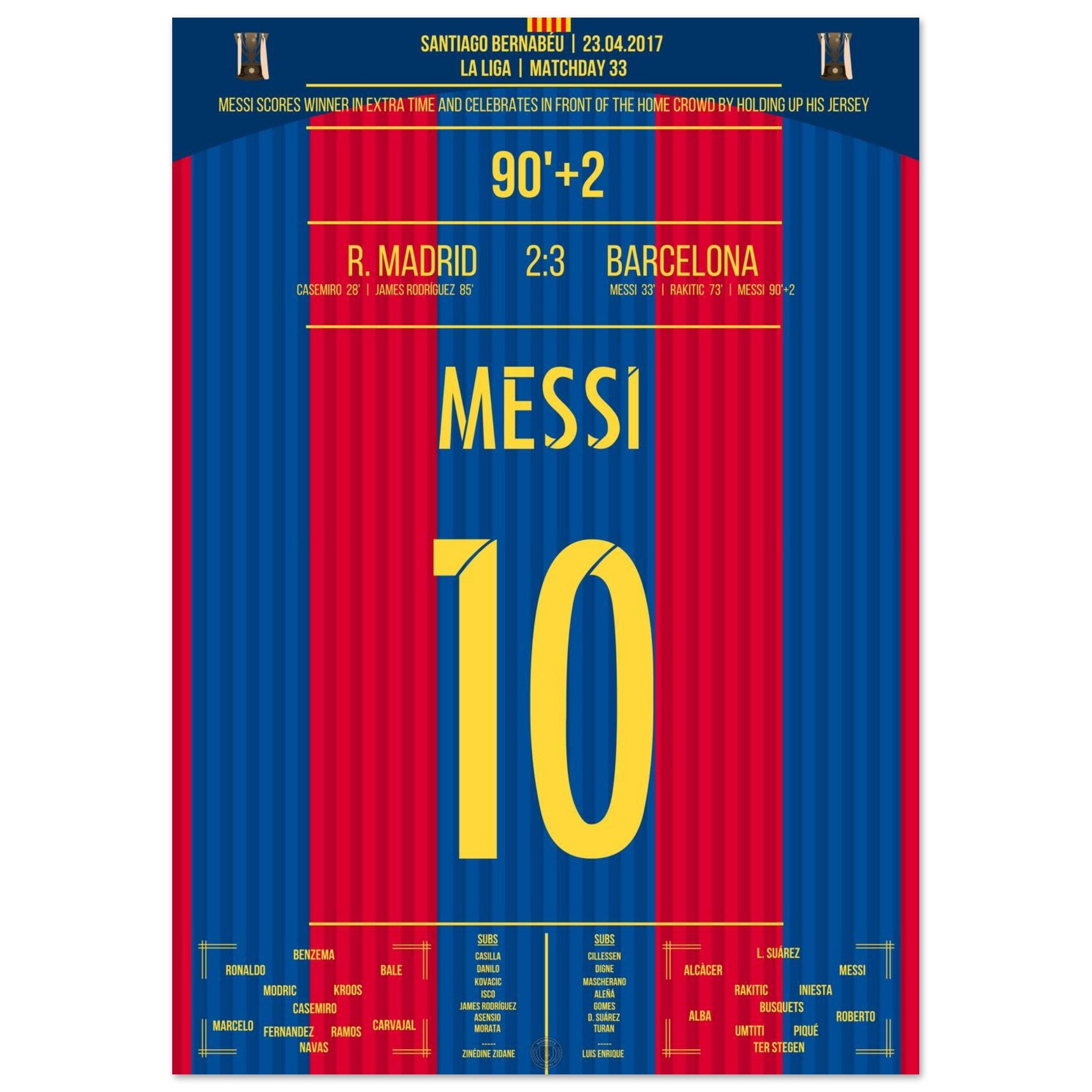 Unser Poster feiert diesen magischen Augenblick – Messi, Ruhe im Chaos, Größe im feindlichen Stadion.