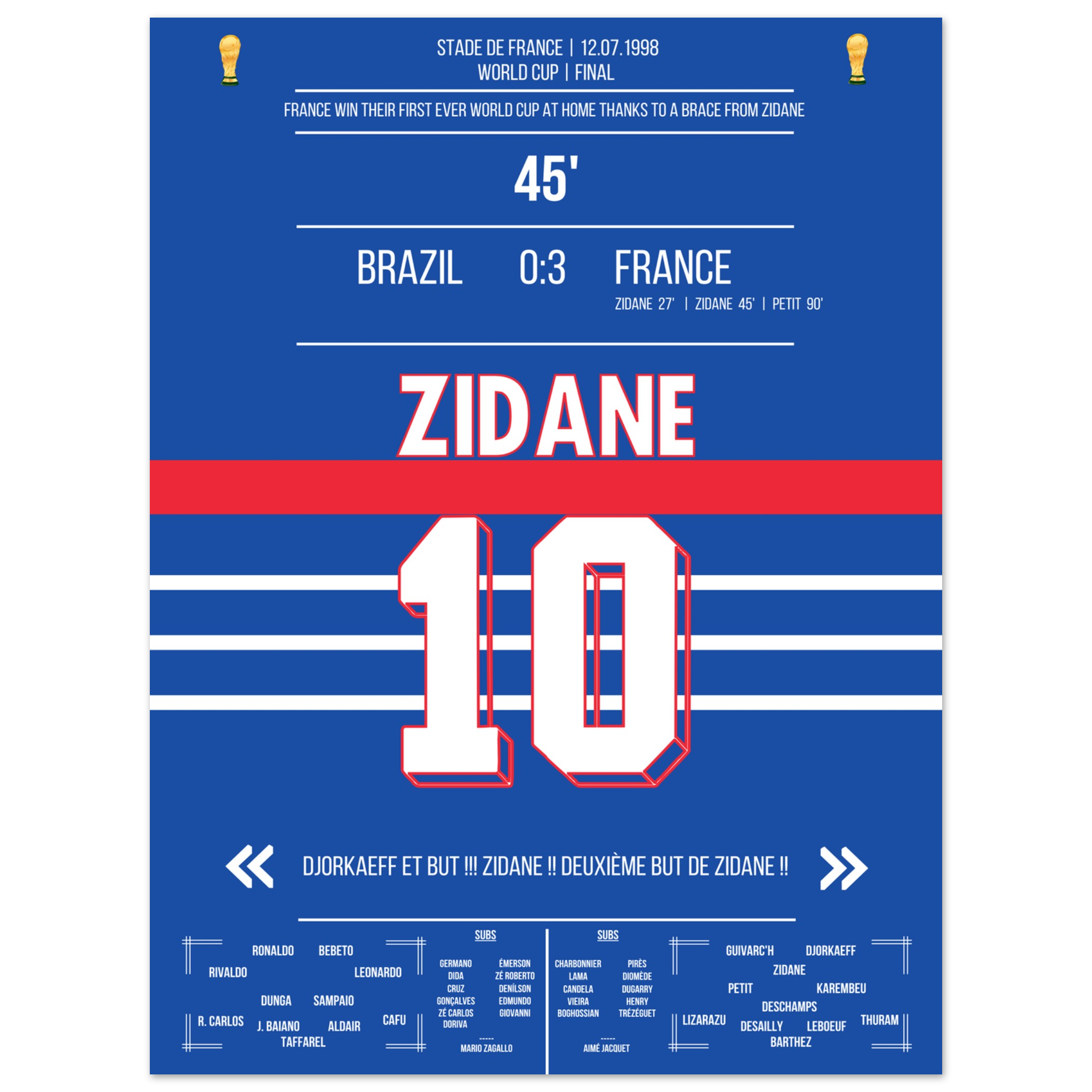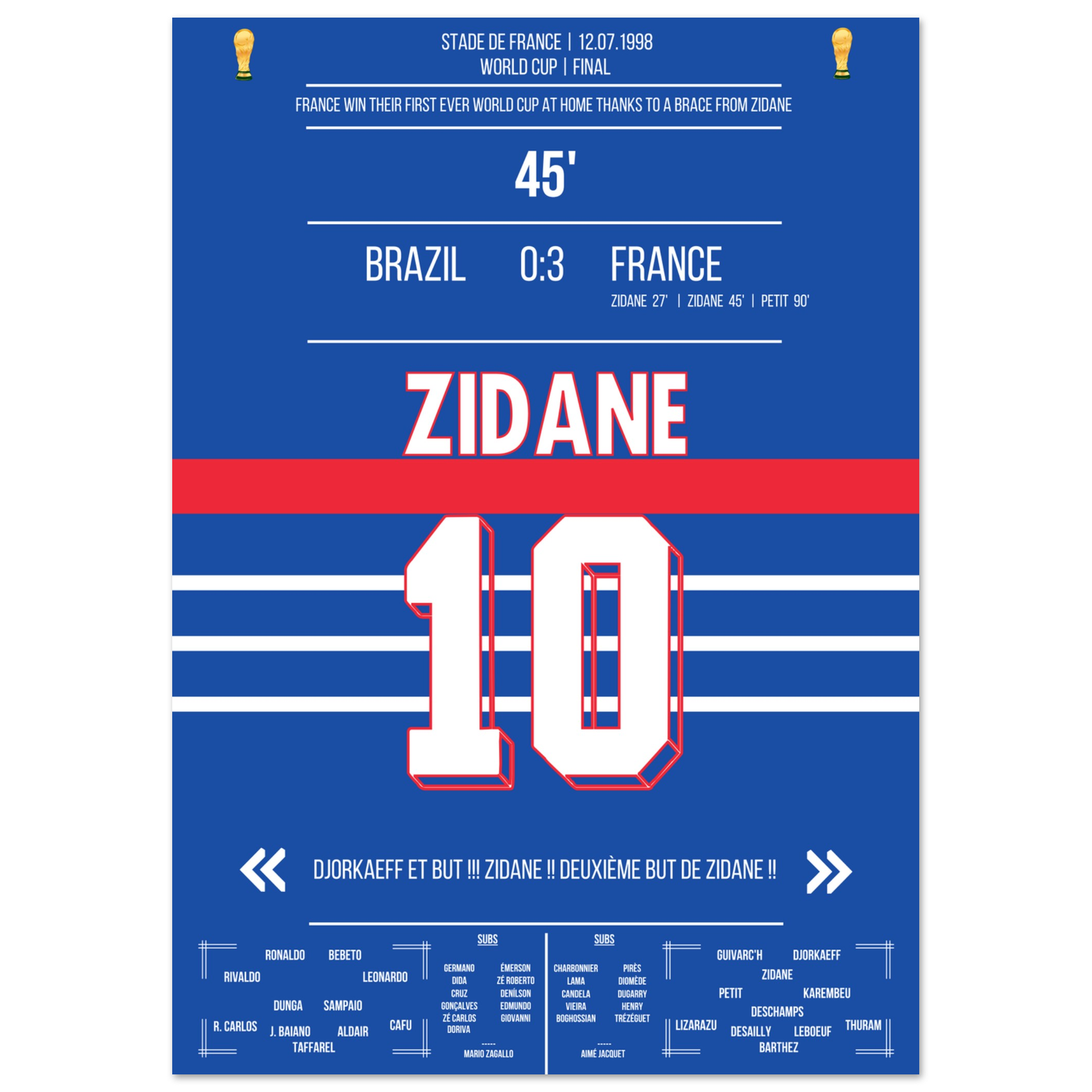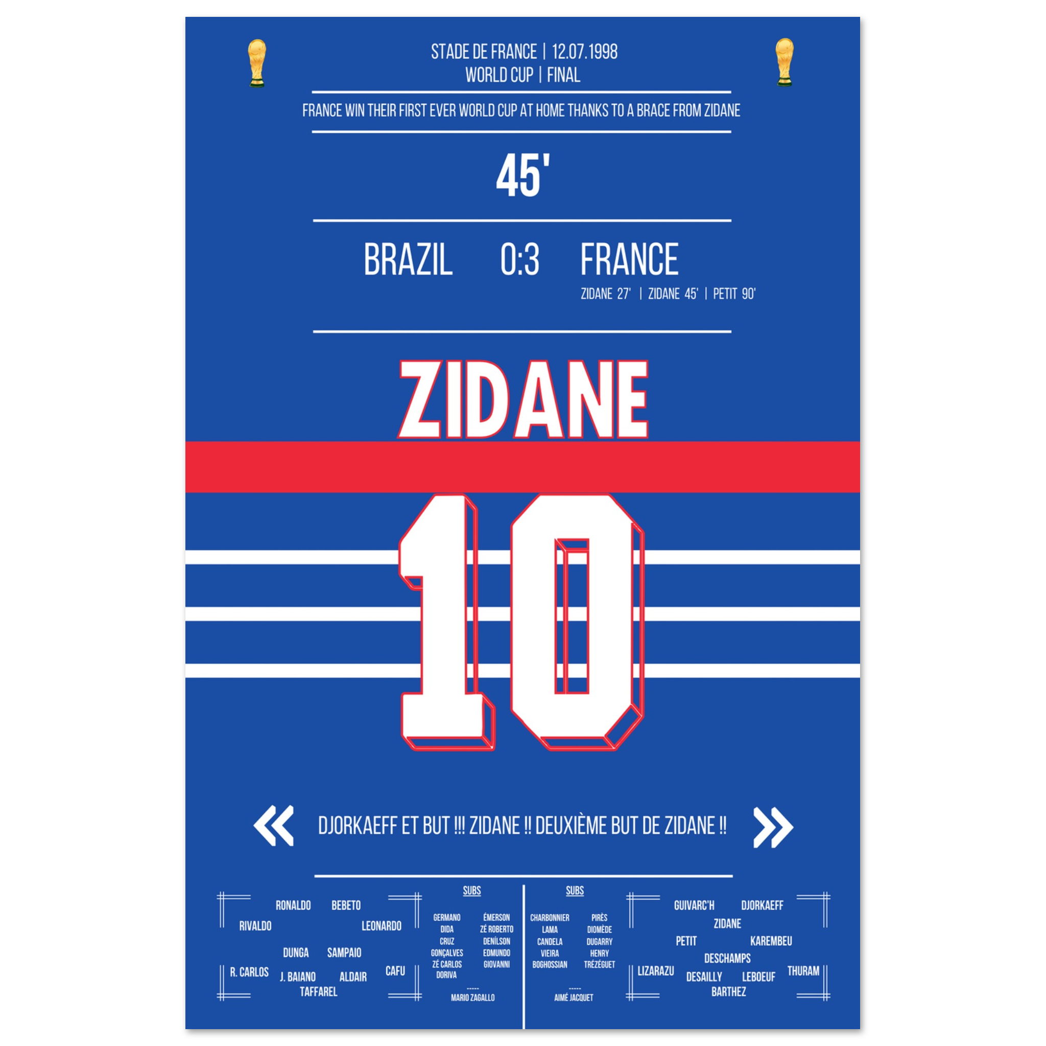 Zidane, doublé de têtes pour le premier titre de la France en Coupe du Monde 1998 contre le Brésil.