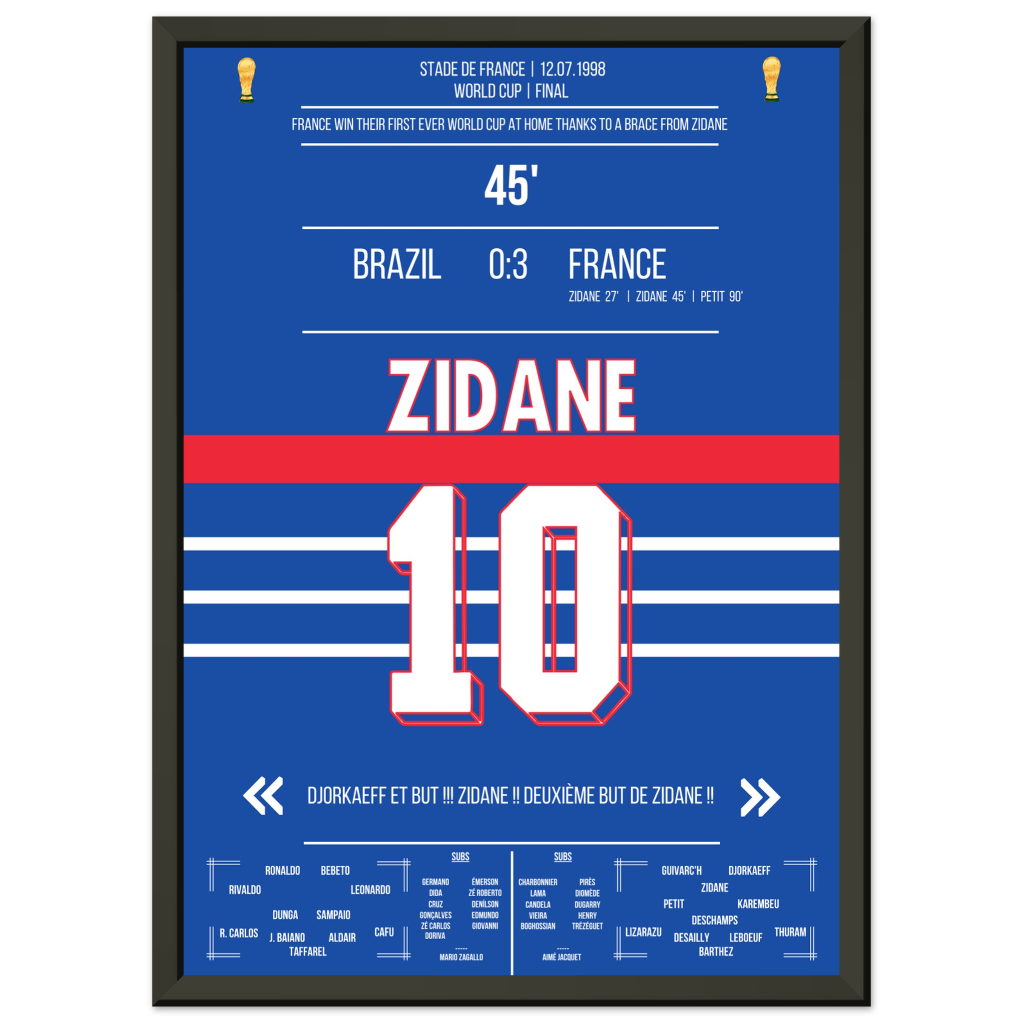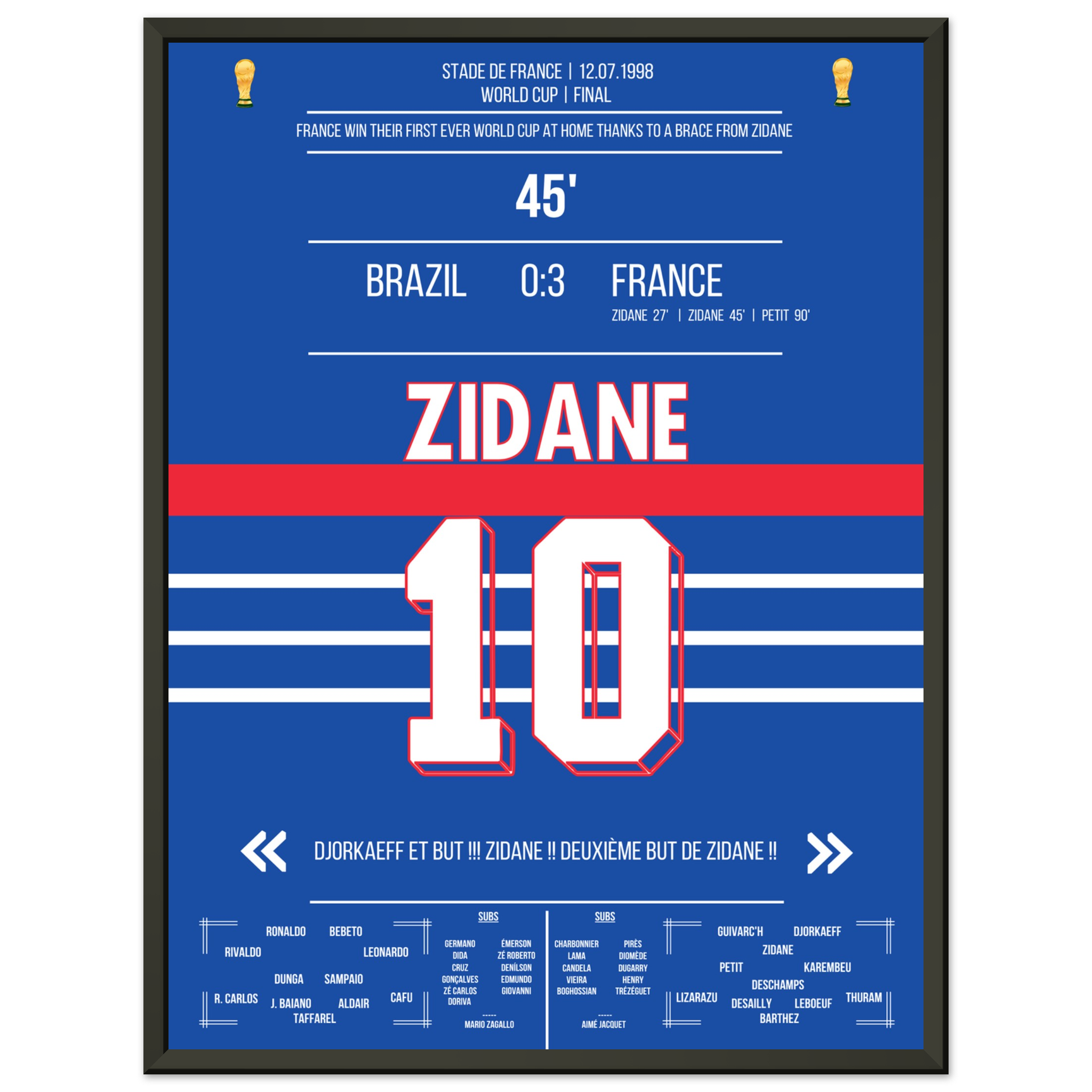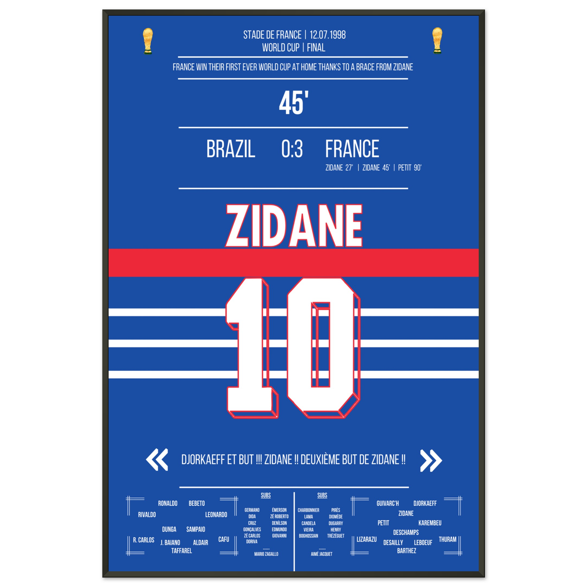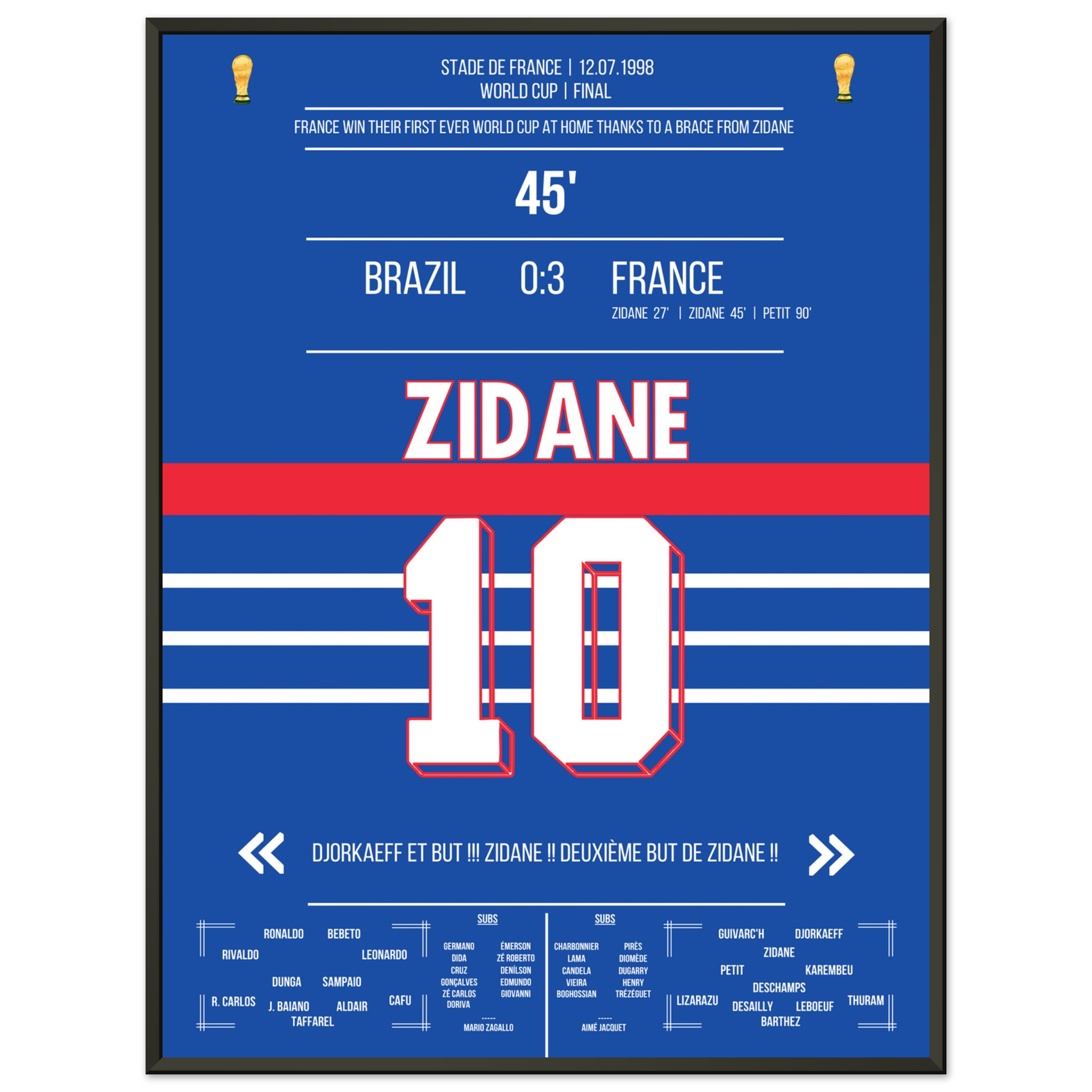 Zidane, doublé de têtes pour le premier titre de la France en Coupe du Monde 1998 contre le Brésil.