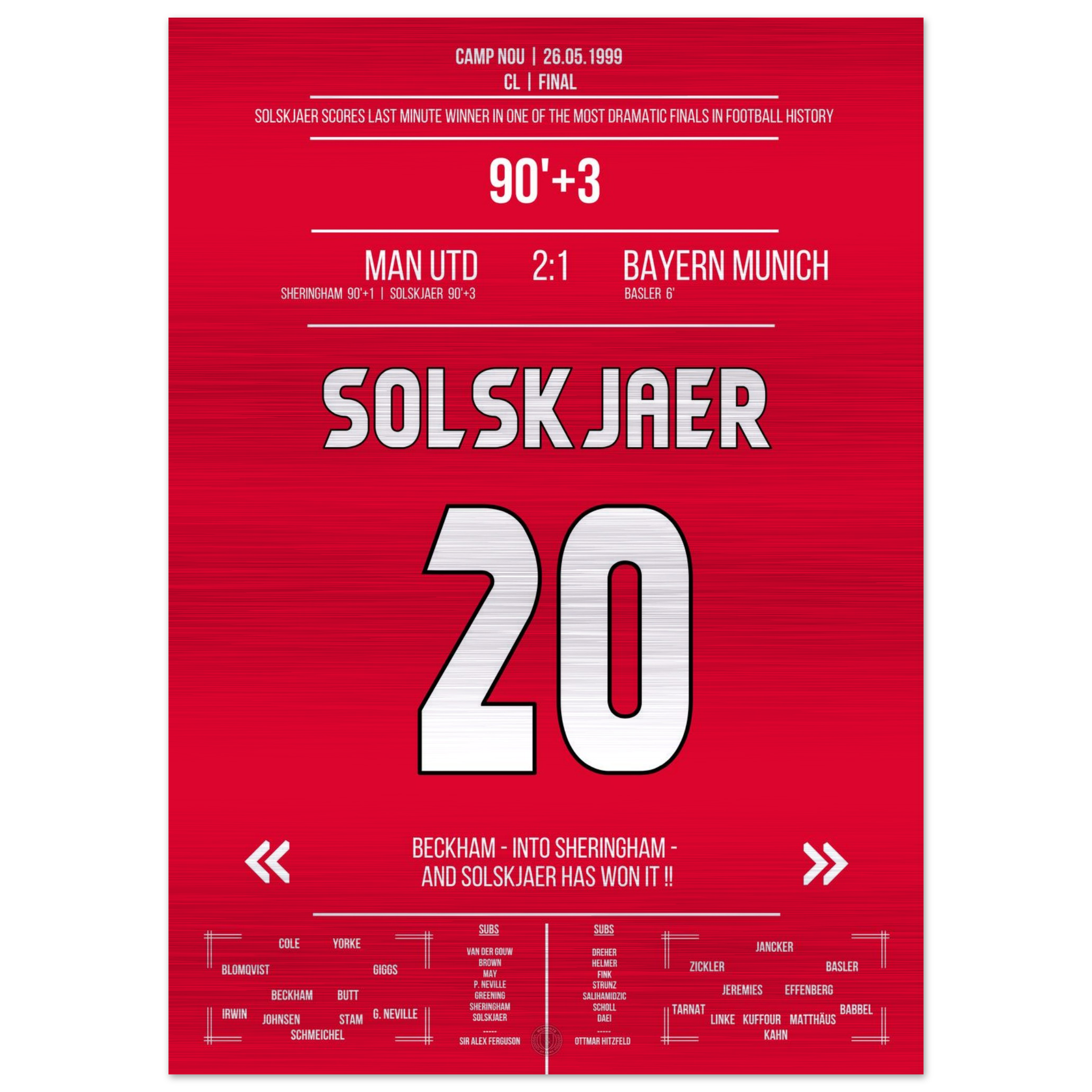 Solskjaer trifft im denkwürdigsten Comeback der Geschichte im Finale 1999 gegen Bayern