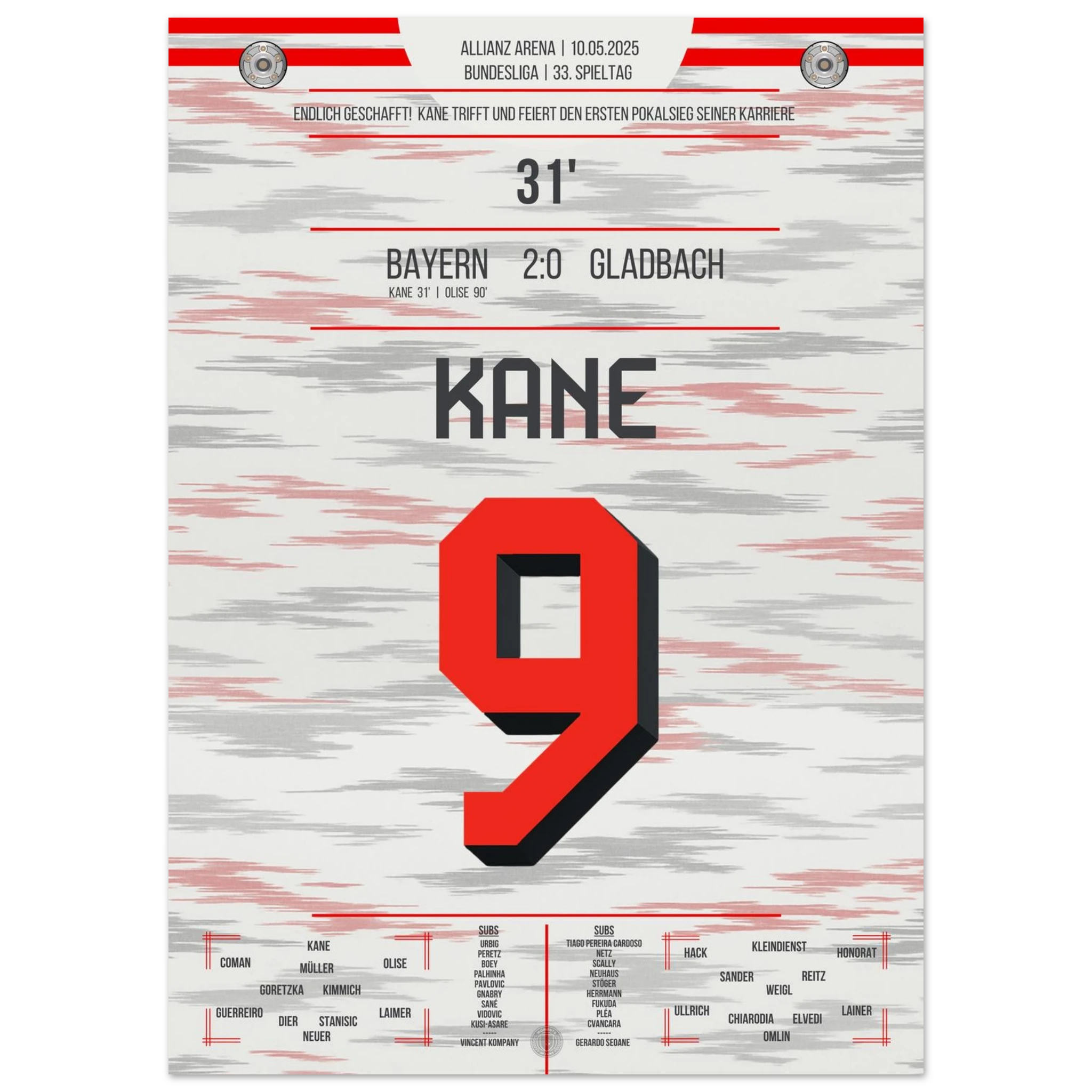 Kane erzielt in der 31. Minute sein erstes Tor im Meisterjahr und markiert damit einen besonderen Meilenstein seiner Karriere. Dieser Treffer läutet den Weg zum Titelgewinn ein – ein unvergesslicher Moment