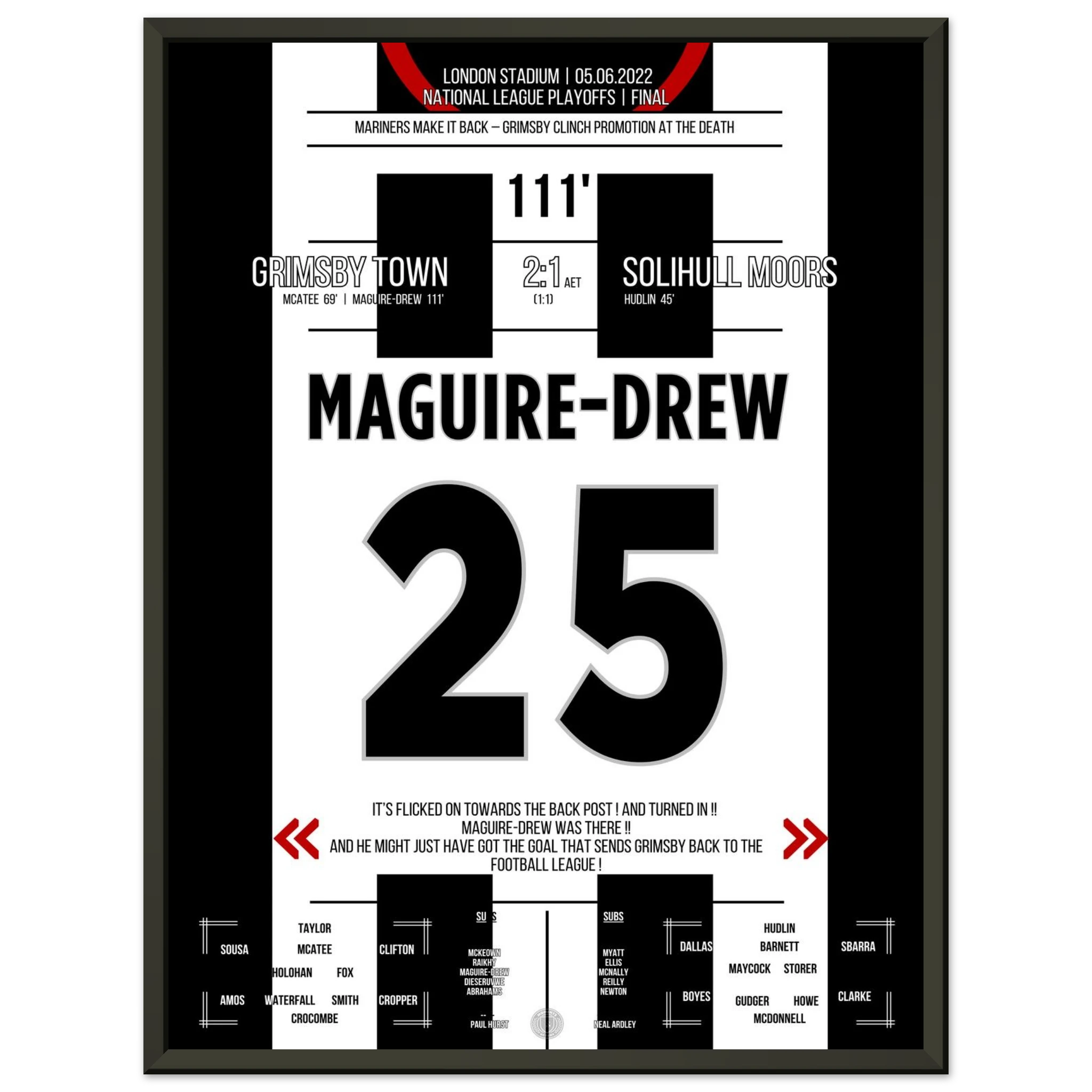 Unser Poster hält diesen unvergesslichen Moment fest – Grimsby zurück, wo es hingehört. ⚫⚪⚽