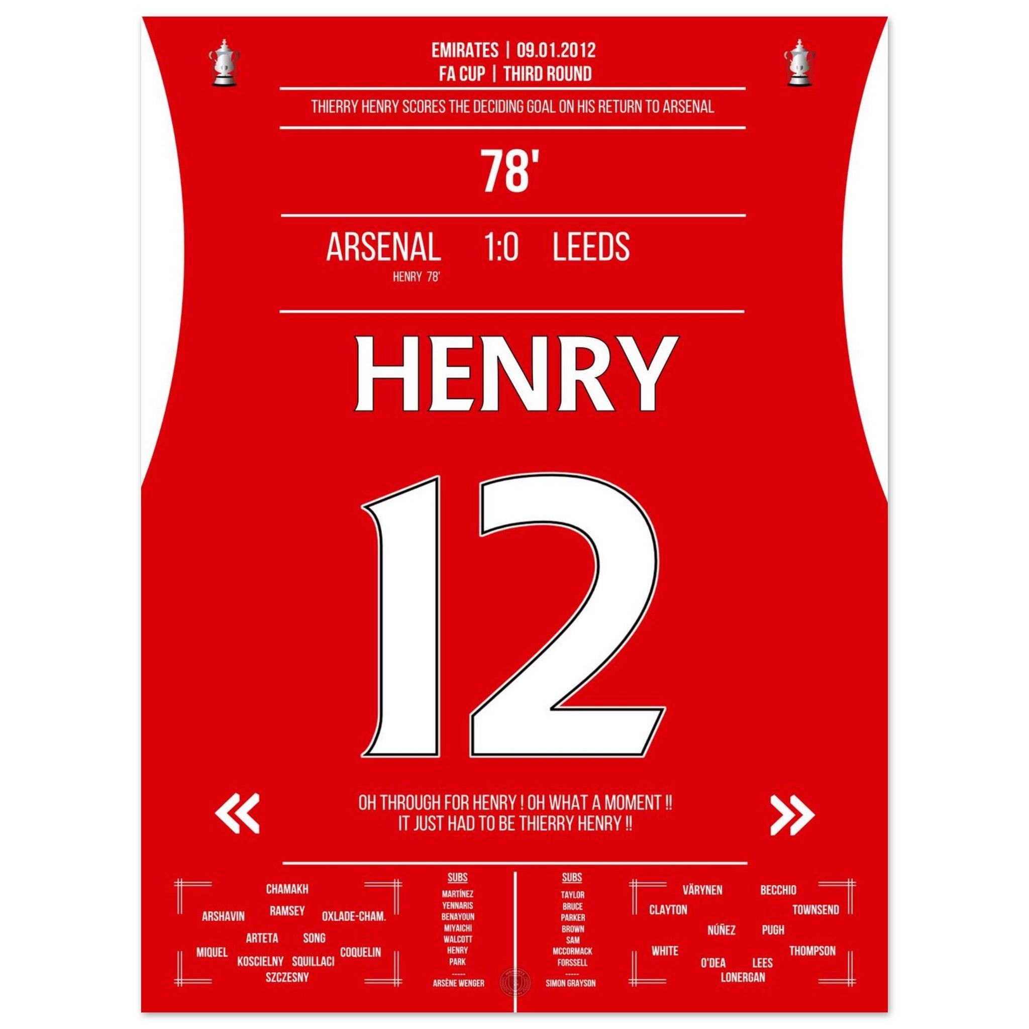 9. Januar 2012 – Arsenal vs. Leeds 1:0 – Henrys magische Rückkehr: