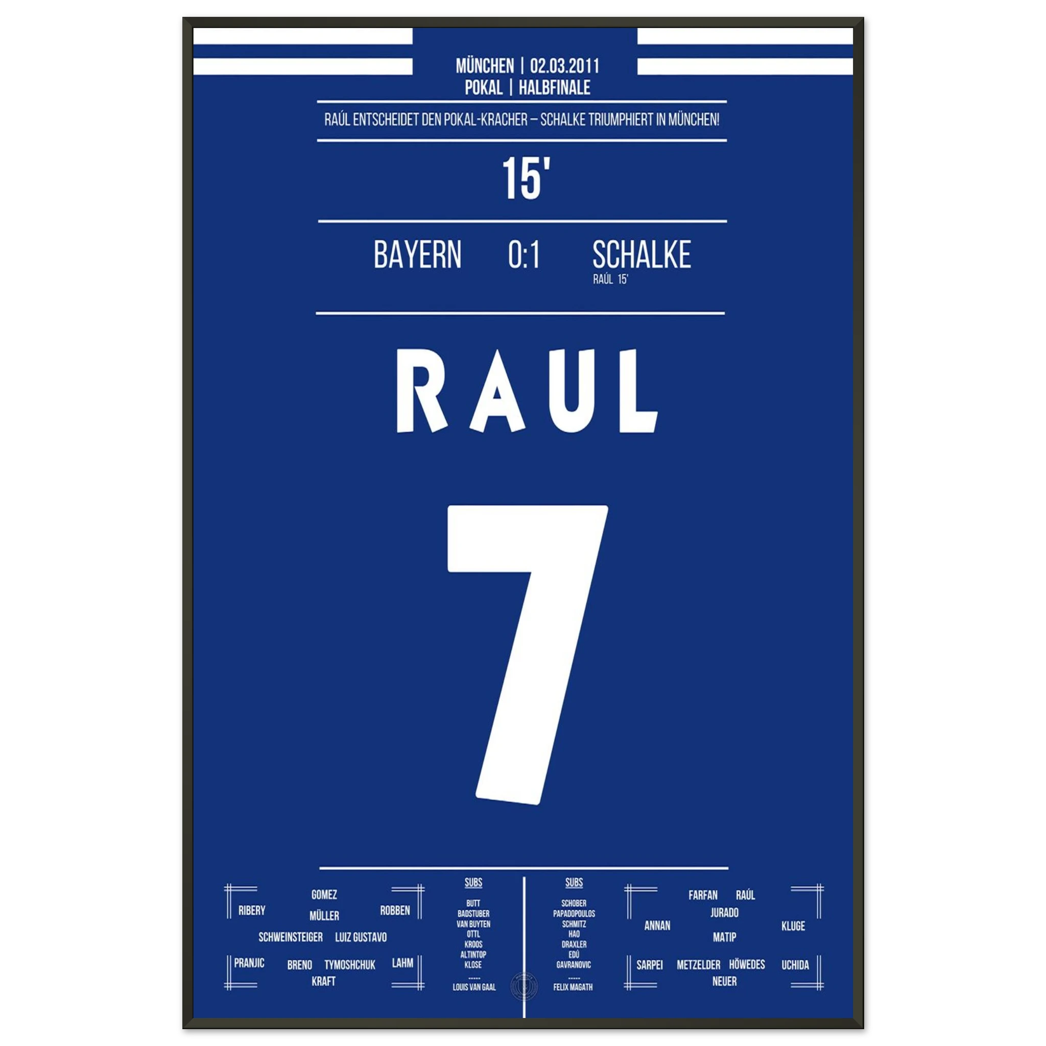 Ein Poster für die Ewigkeit – Raúl in Königsblau, Bayern am Boden.