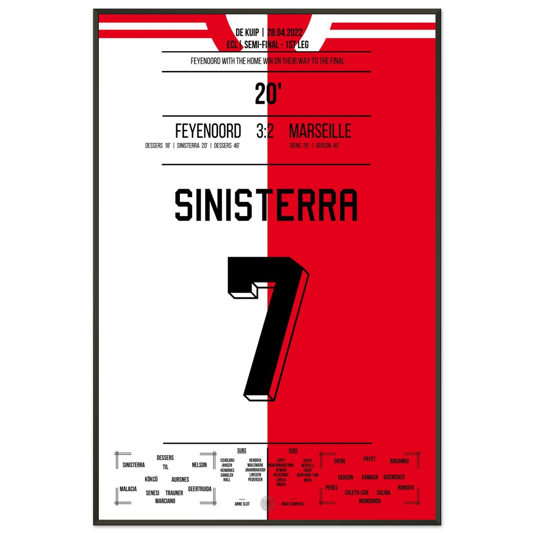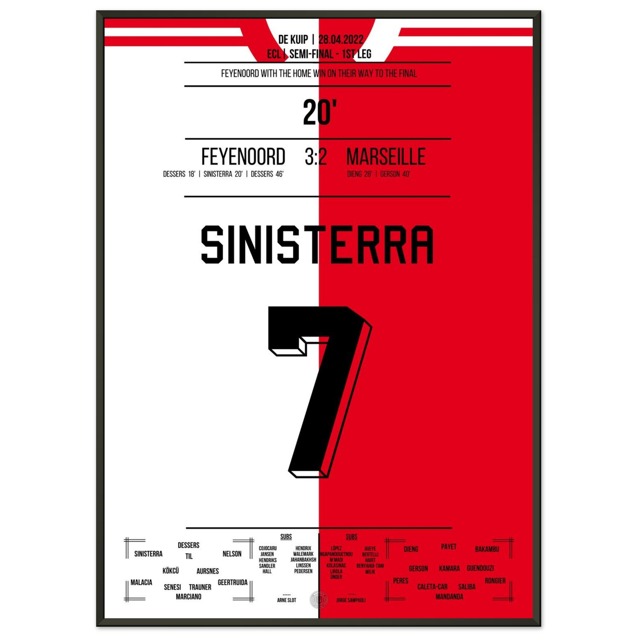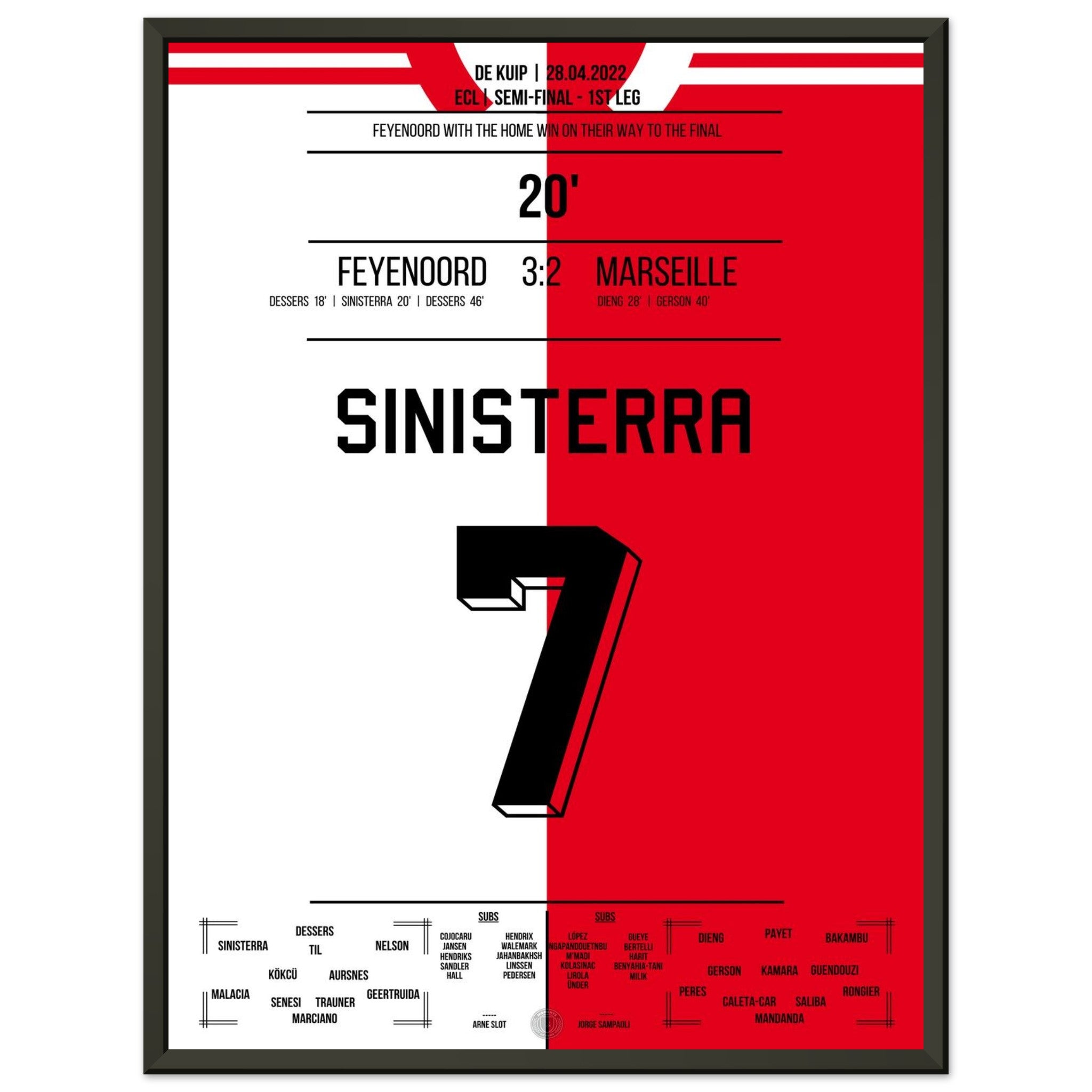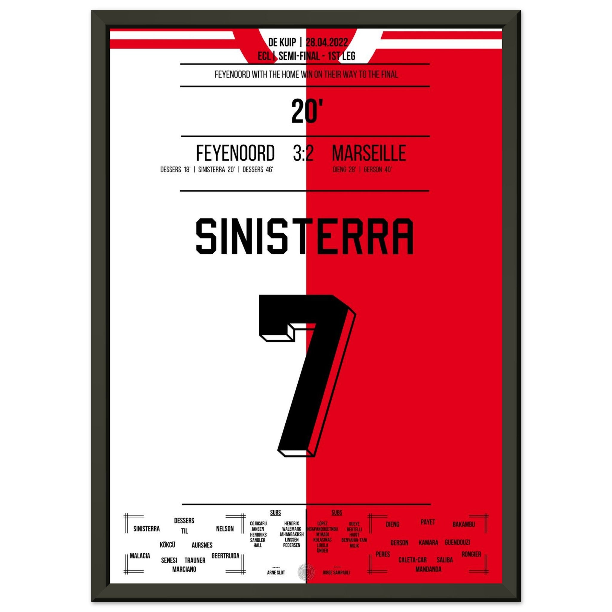 Sie können sicher sein, dass jedes Poster und jeder Rahmen in einer robusten Verpackung versandt wird, damit es in tadellosem Zustand ankommt. Es ist die perfekte Ergänzung für die Sammlung eines jeden Fußballfans oder das perfekte Geschenk für den eingefleischten Fußball-Fan ihres Freundes- oder Familienkreises.