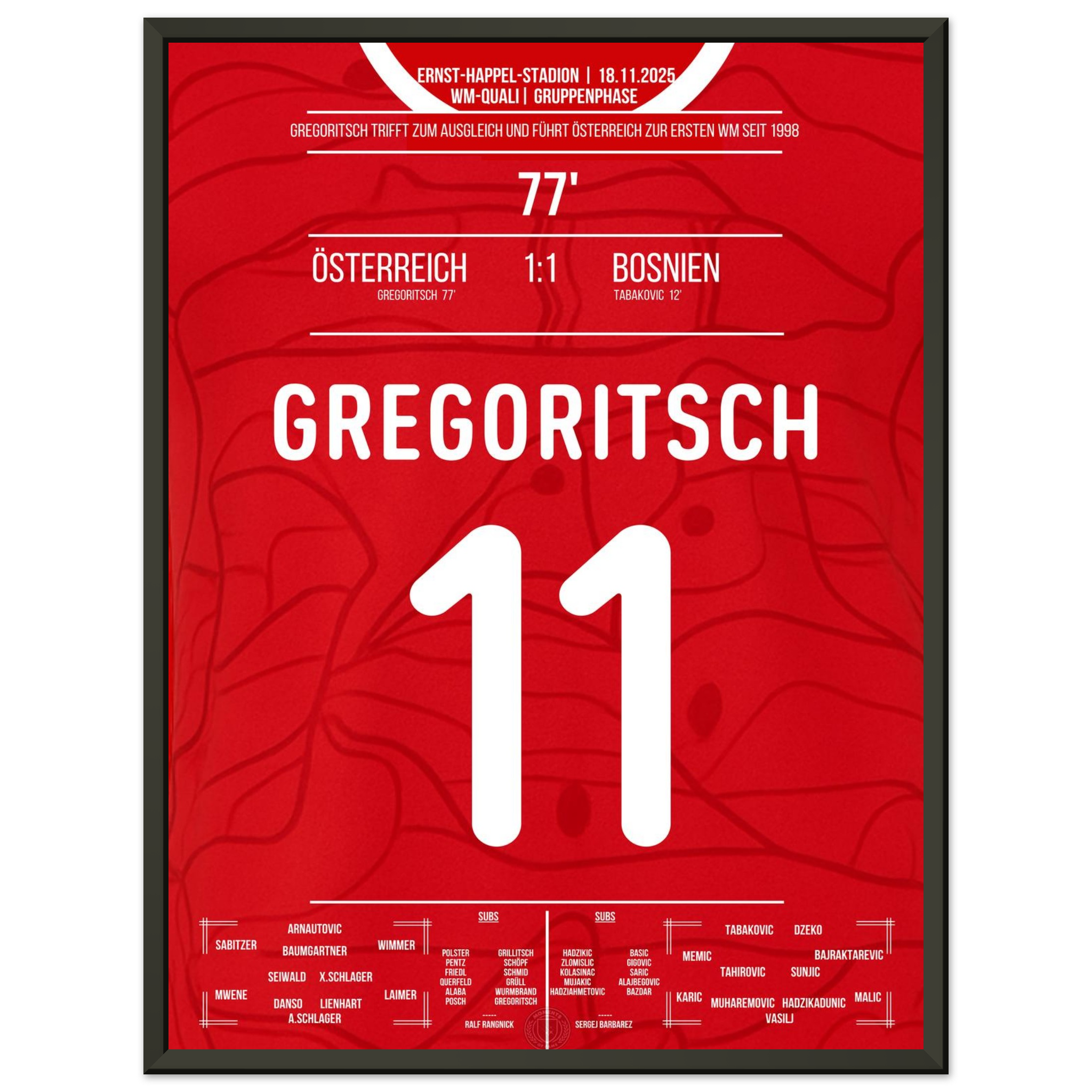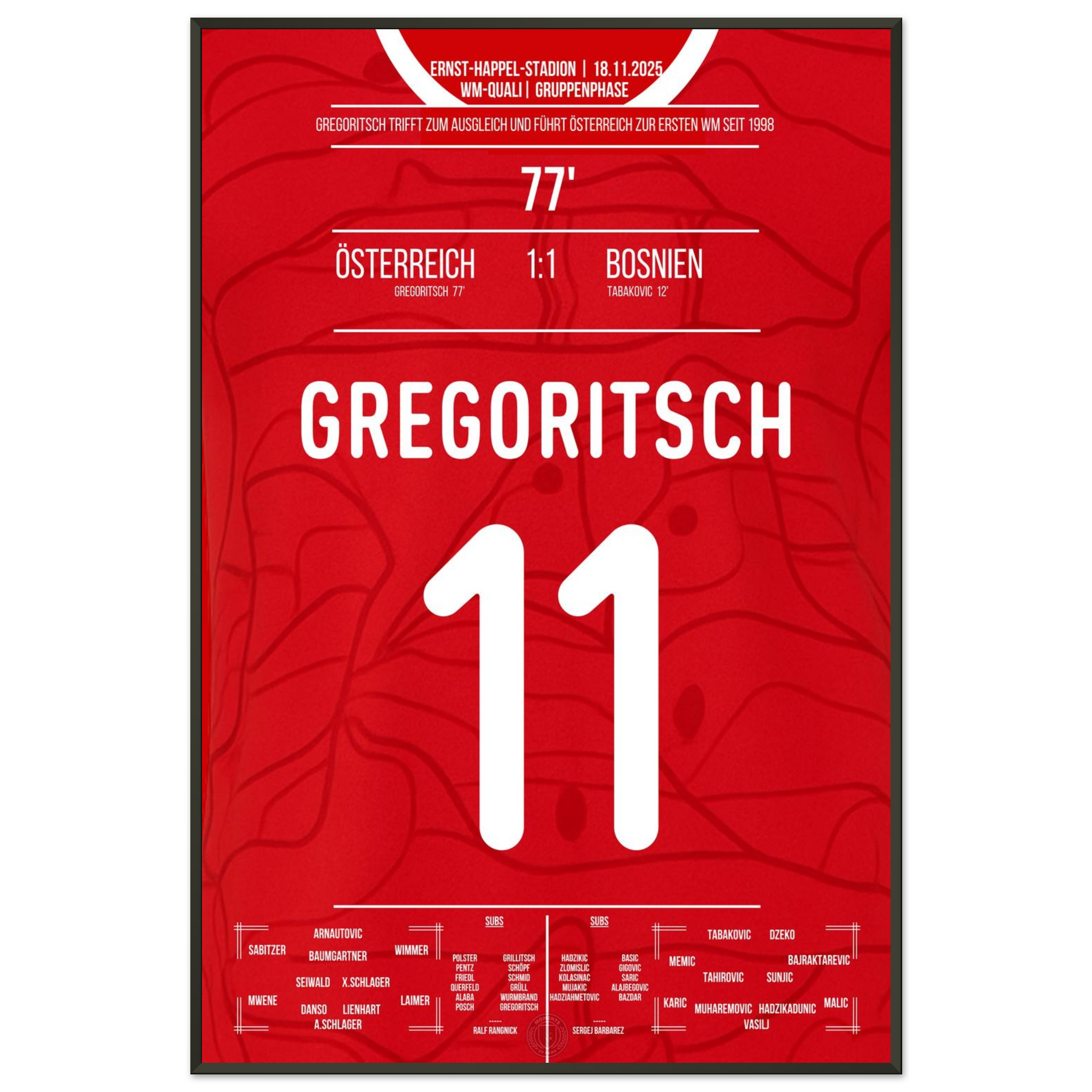 Dieses Poster feiert den Moment, in dem ein Tor zur Erlösung wurde – und Rot-Weiß-Rot wieder auf die Weltbühne zurückkehrte.