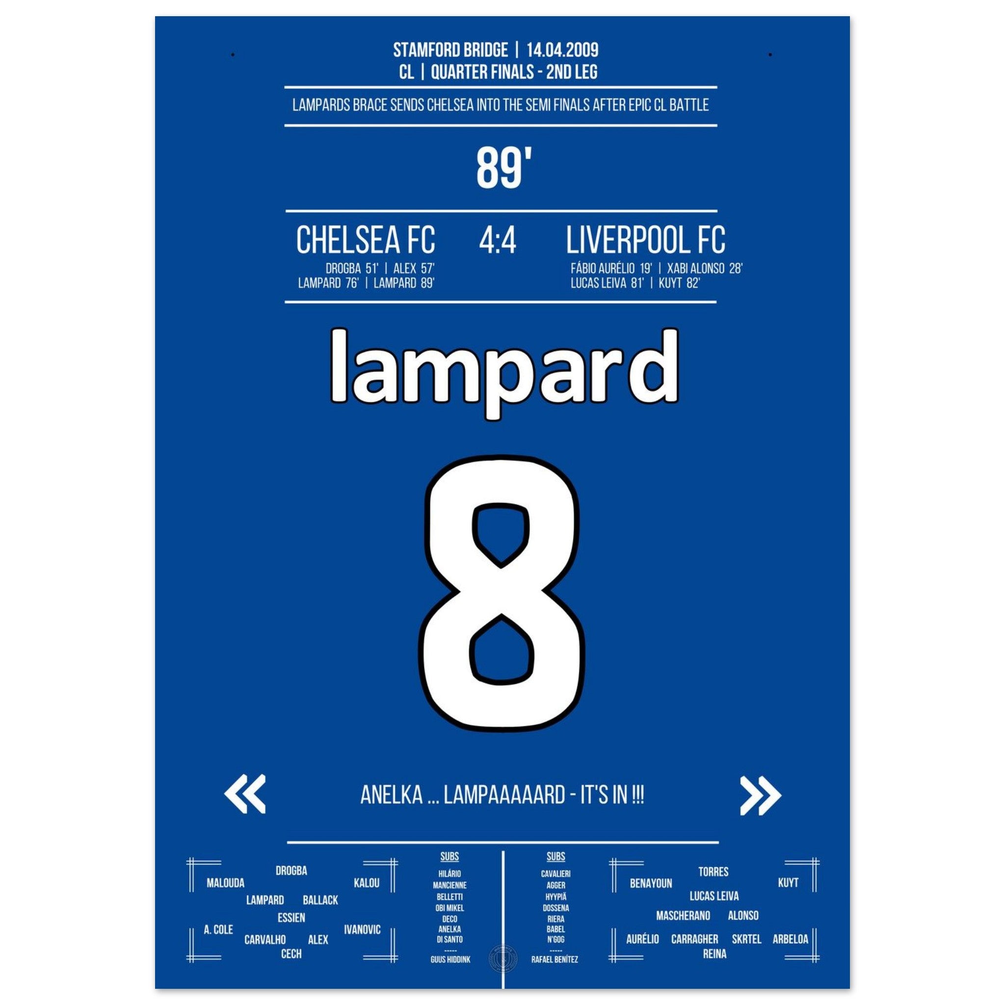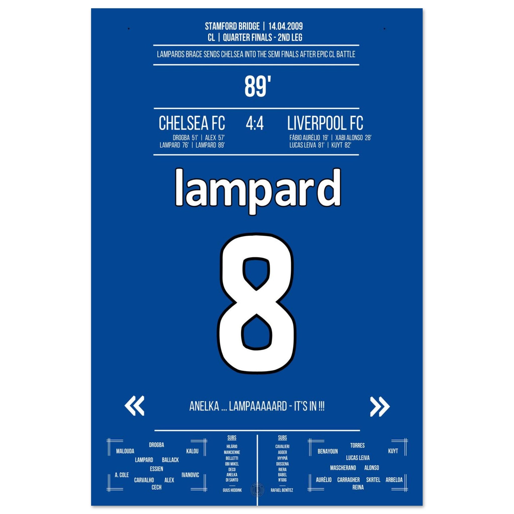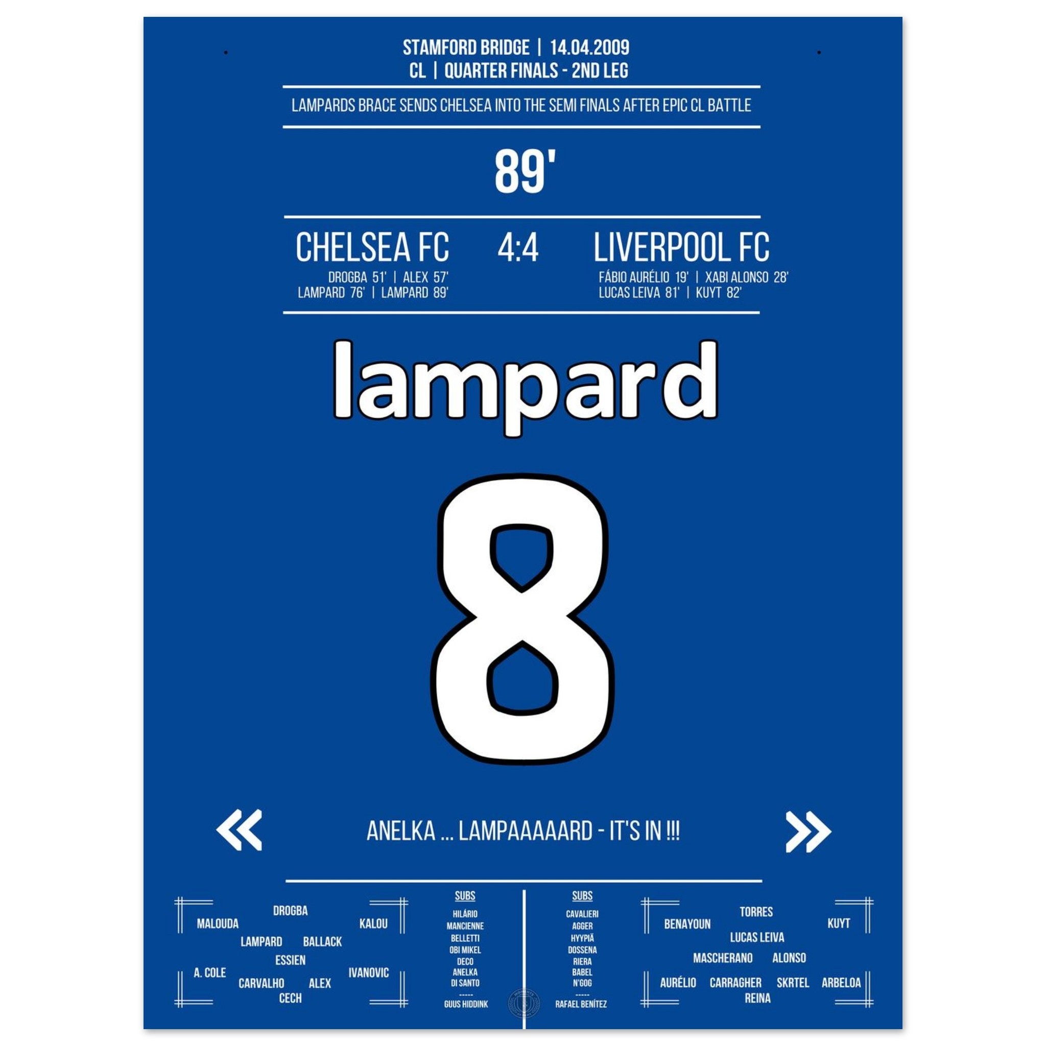 Lampard with 2 goals for Chelsea in the CL 2009 against Liverpool