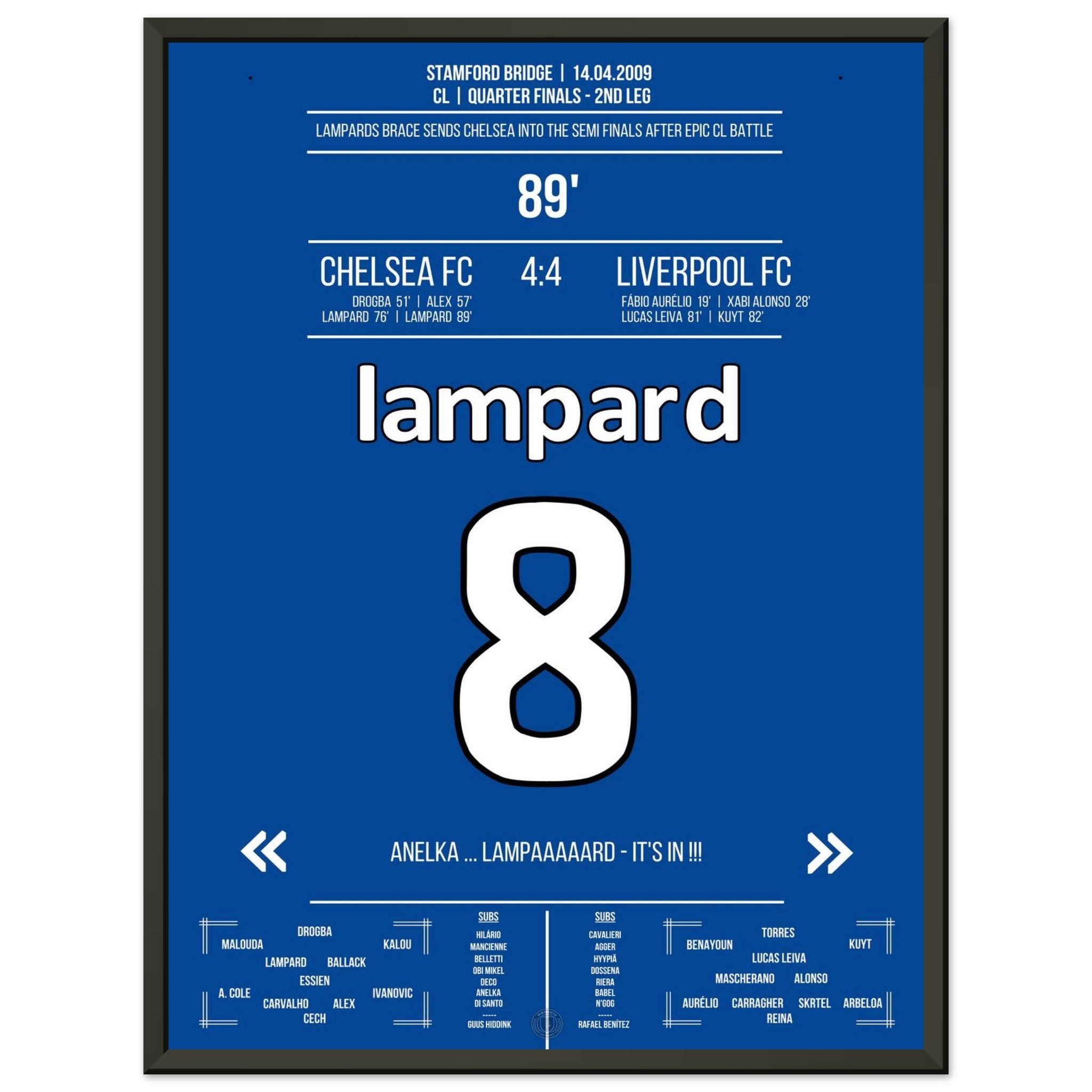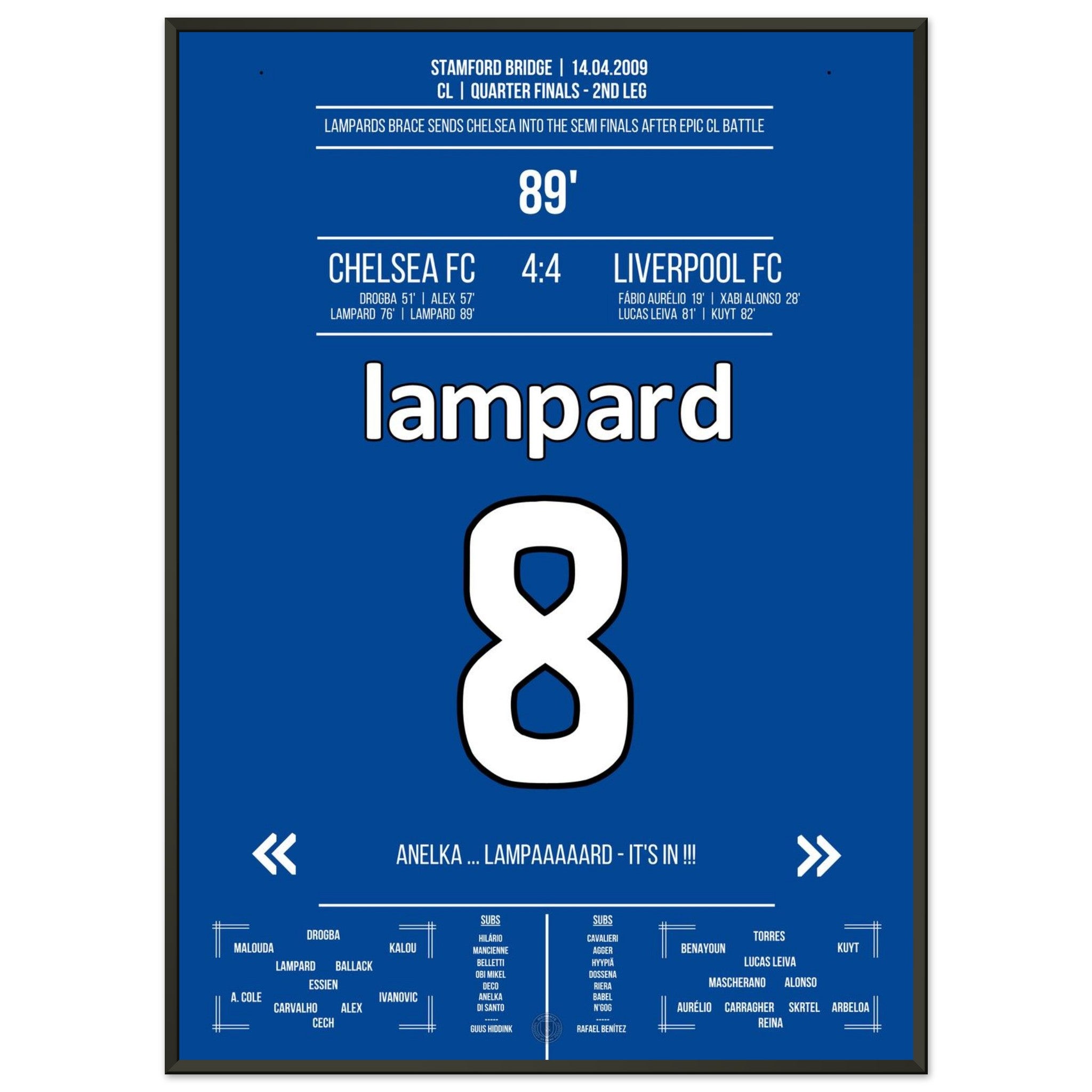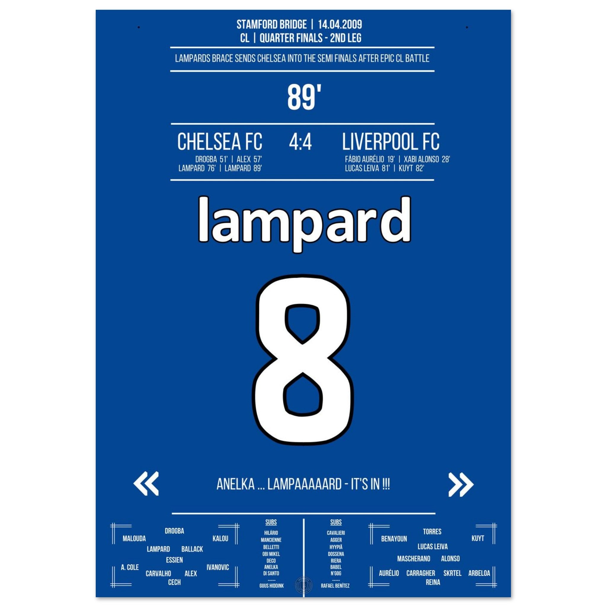 Lampard with 2 goals for Chelsea in the CL 2009 against Liverpool