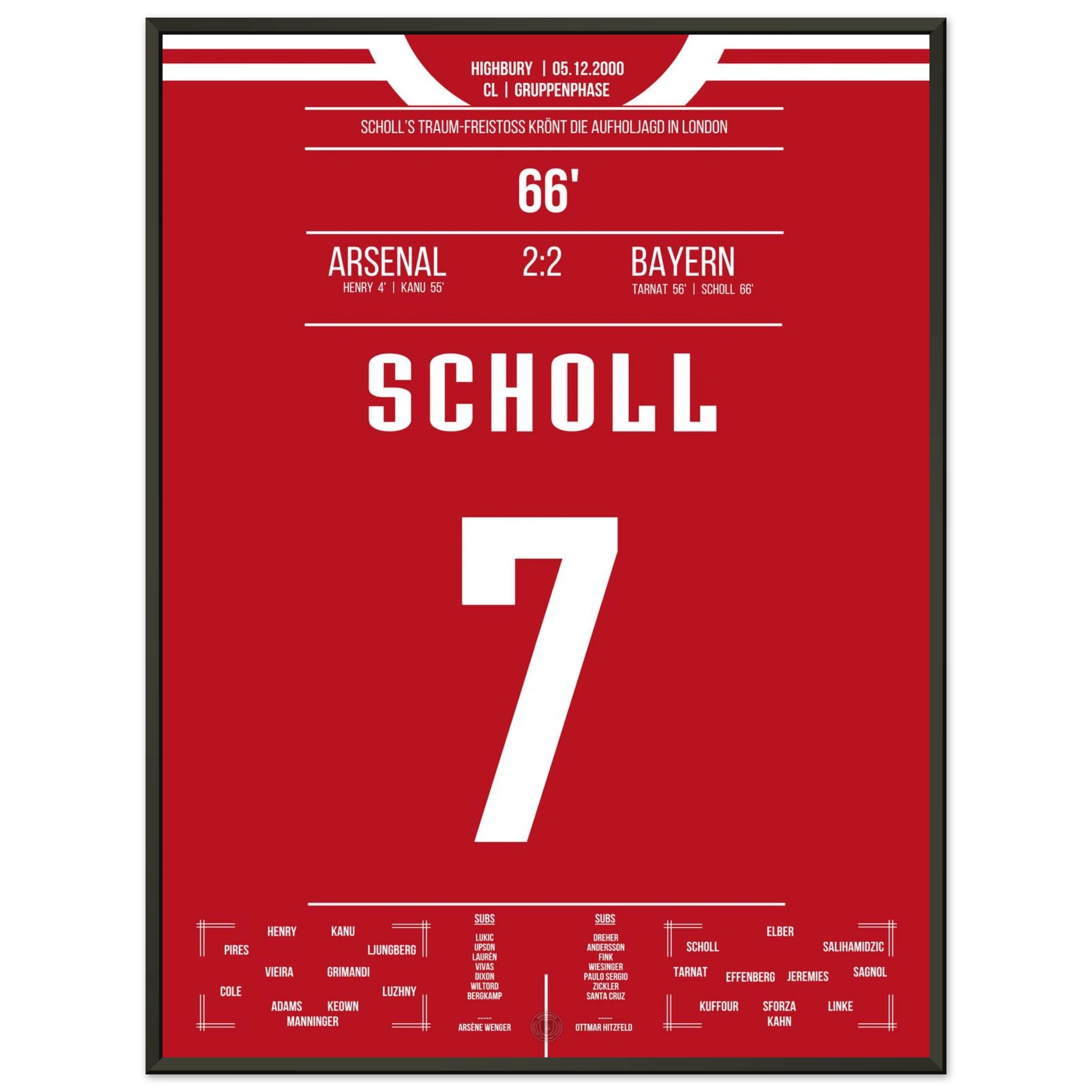 5. Dezember 2000 – Arsenal vs. Bayern 2:2 – Scholls Kunstwerk im Highbury: