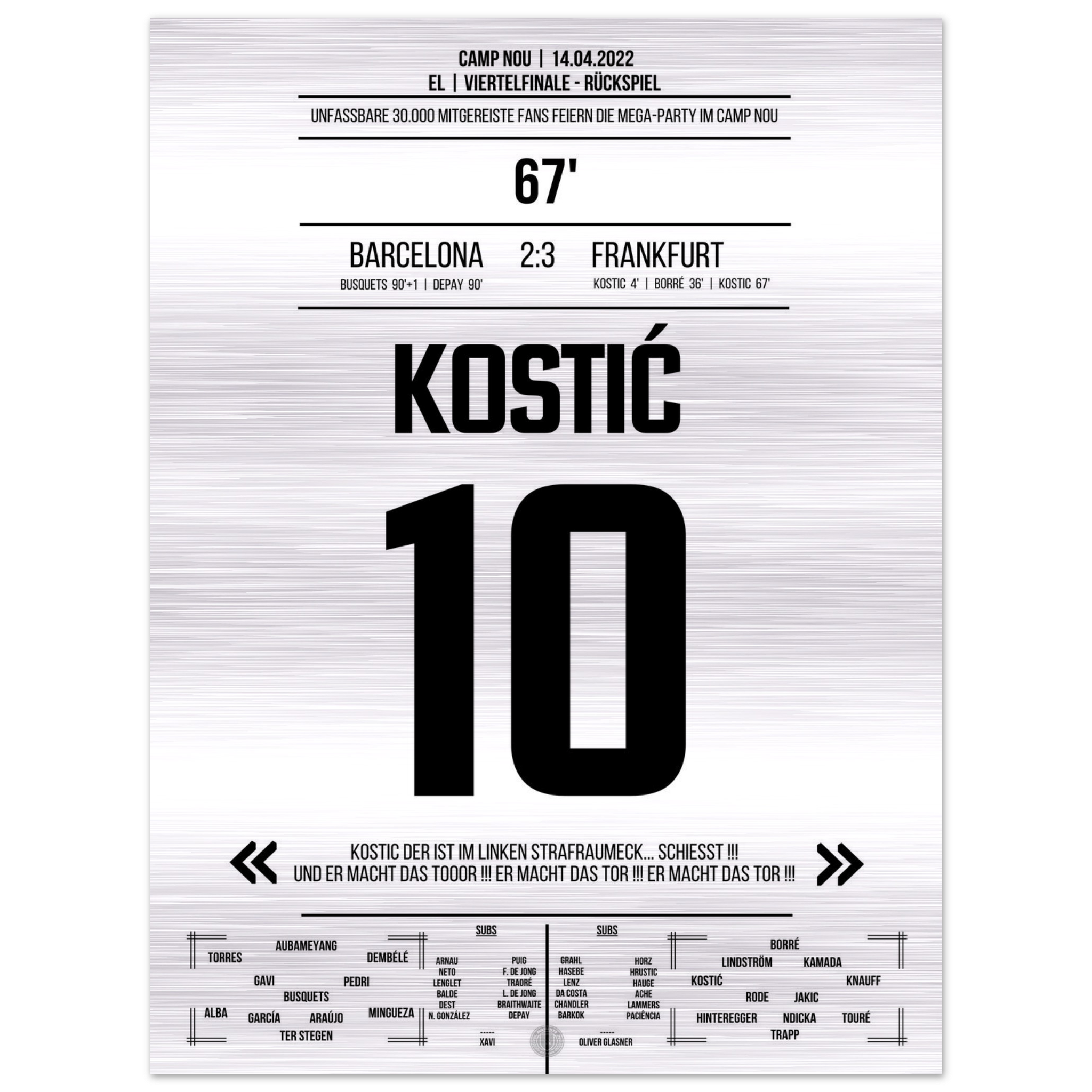 Kostic's Galavorstellung bei Frankfurt's großer Party im Camp Nou