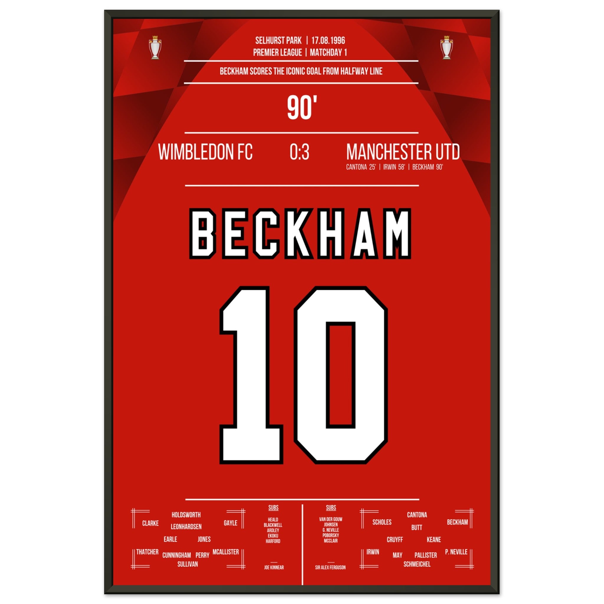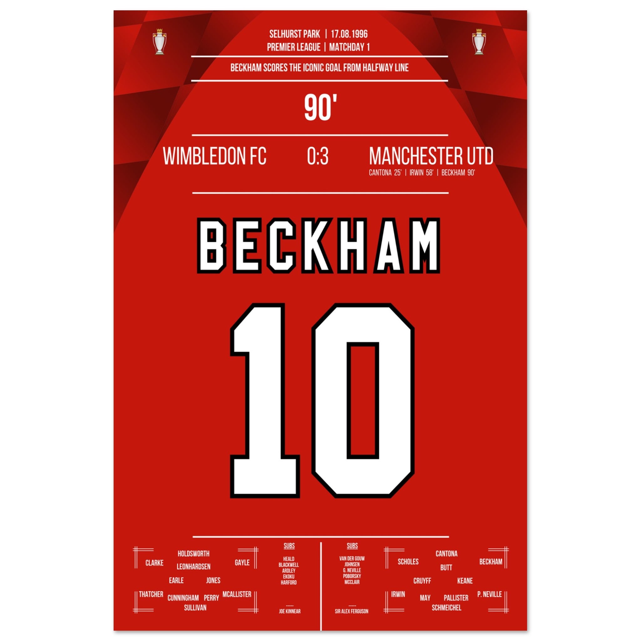 Beckham's goal from the halfway line in the away game against Wimbledon in 1996
