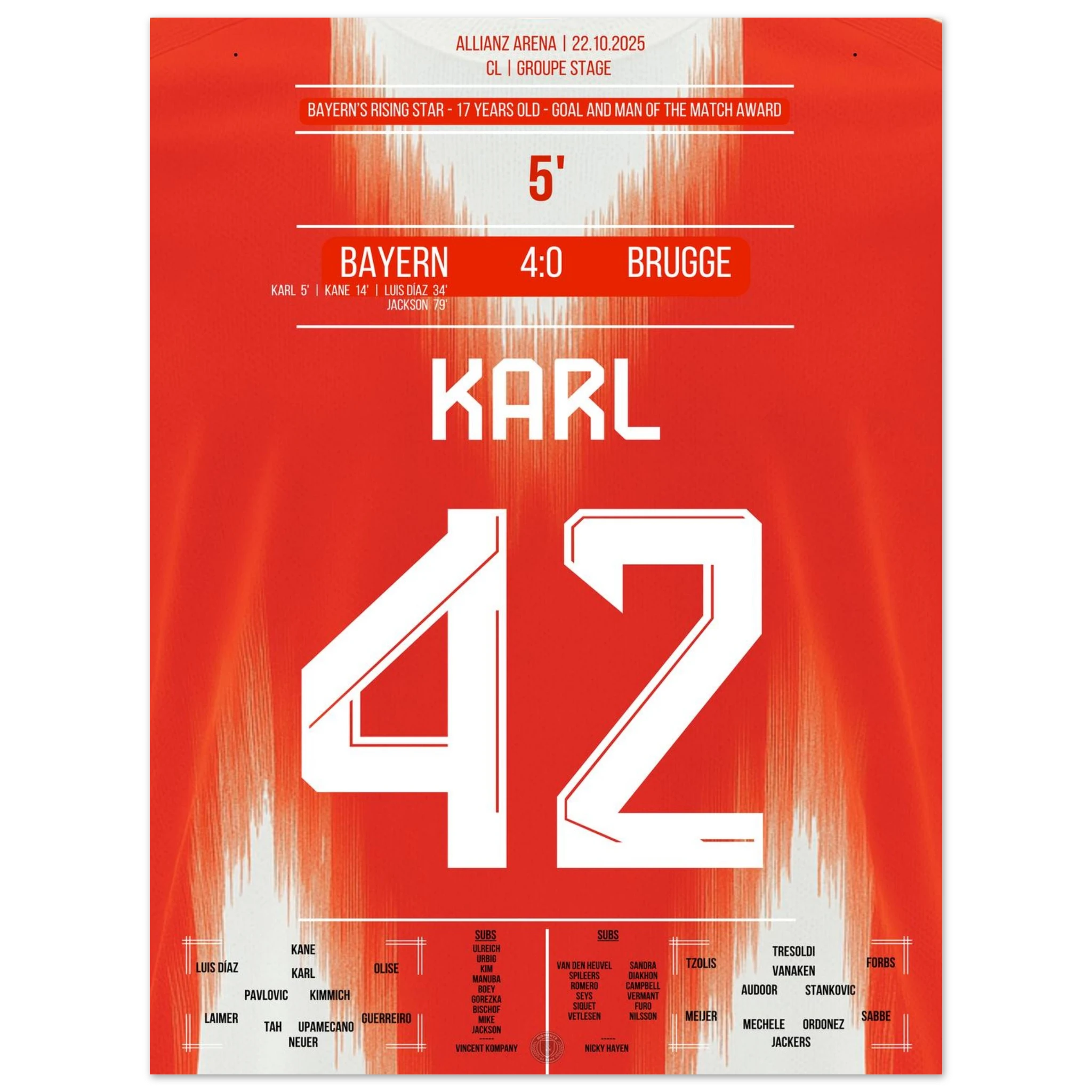 22. Oktober 2025 – Bayern vs. Brügge 4:0 – Karls Traumtor eröffnet den Gala-Abend: