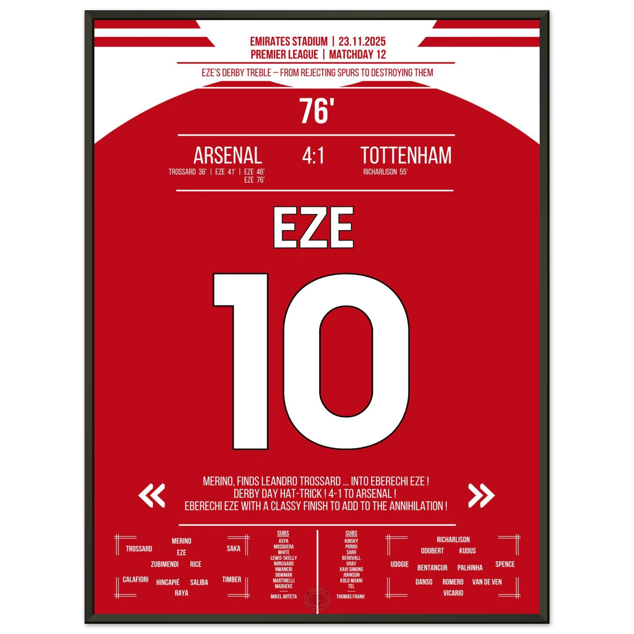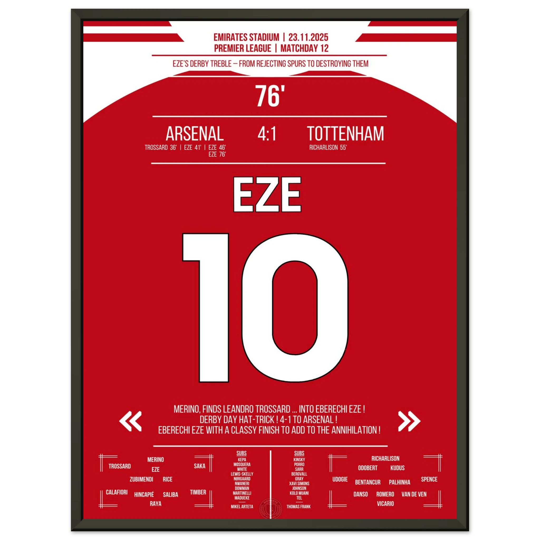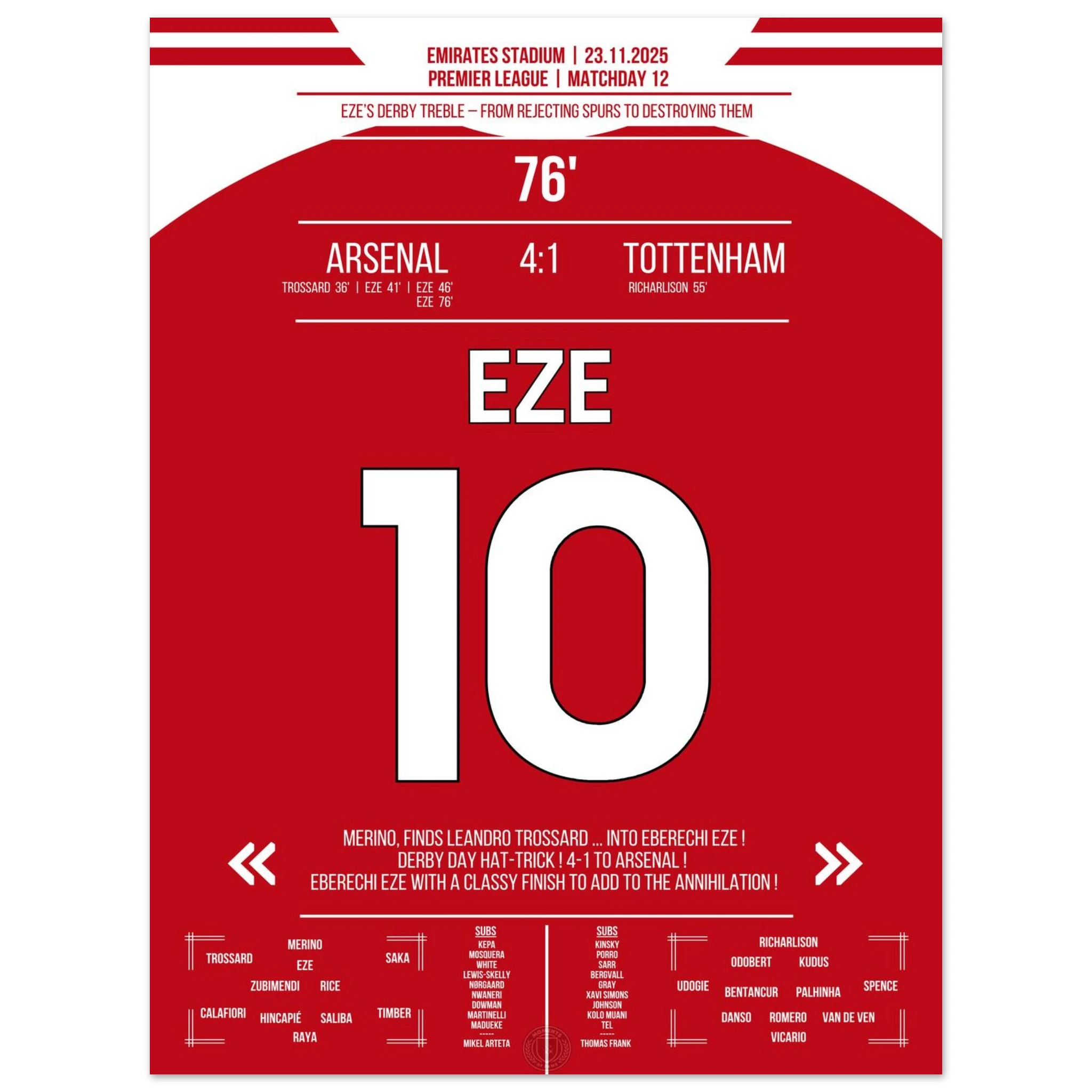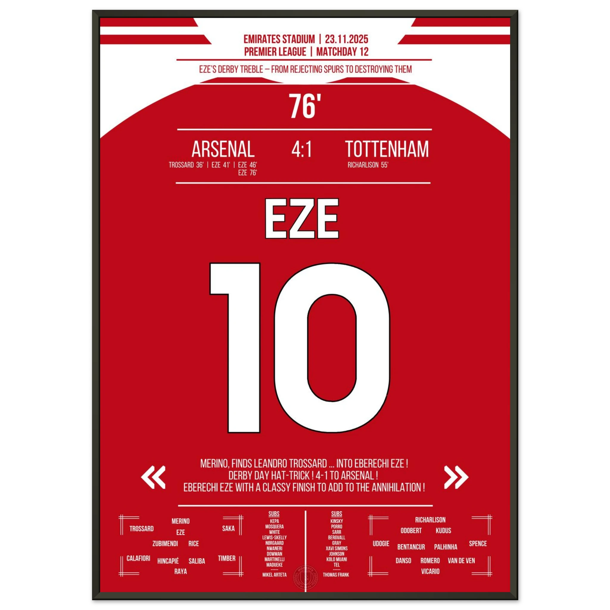 Unser Poster feiert diesen magischen Derby-Tag, an dem Eze den Norden Londons in Ekstase versetzte.