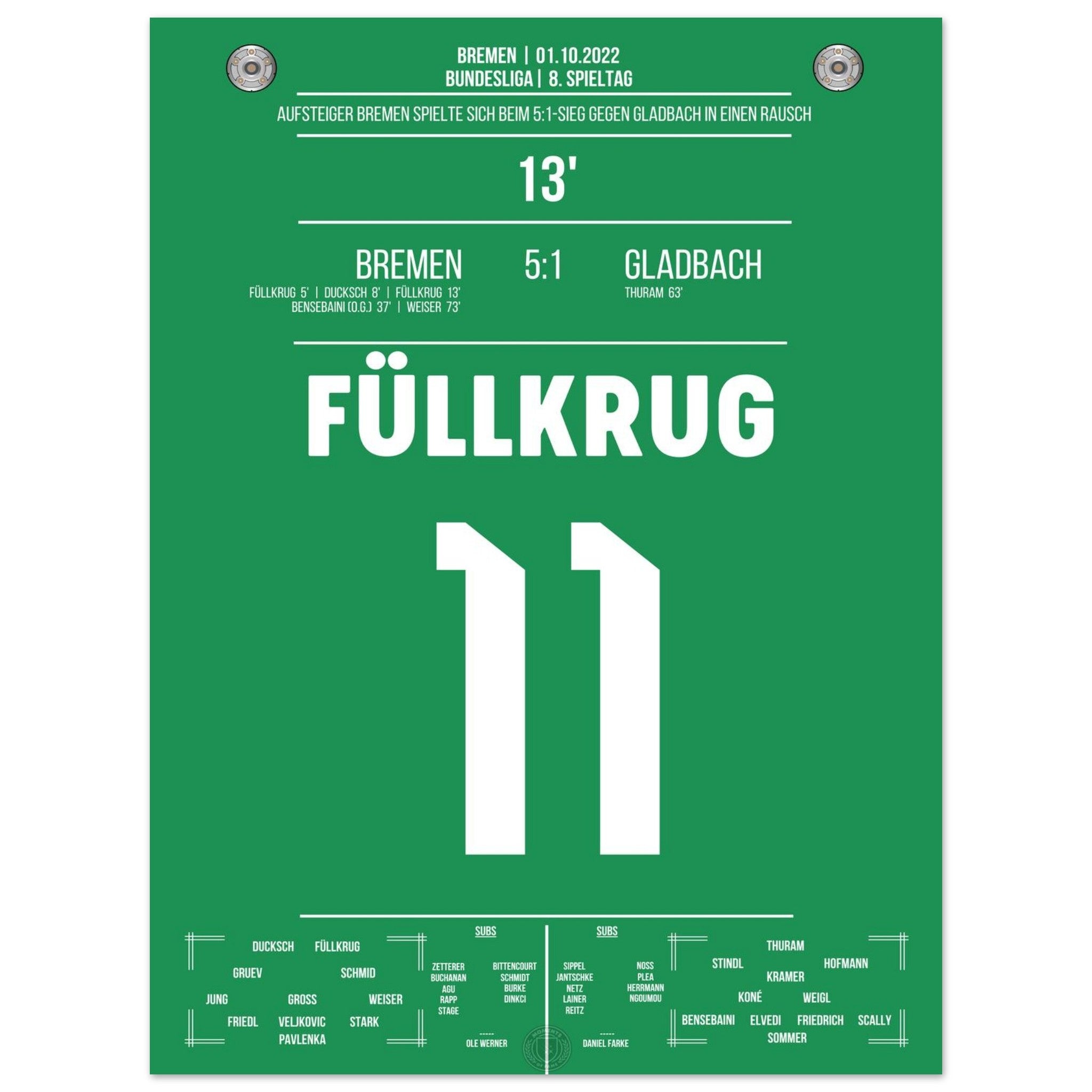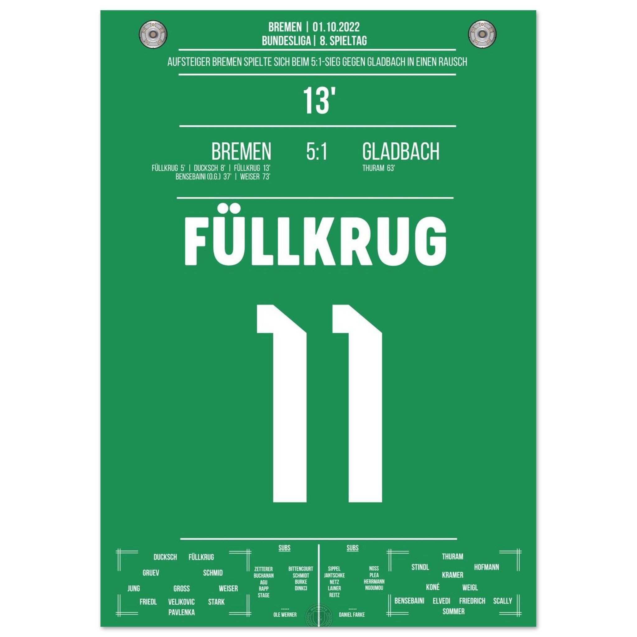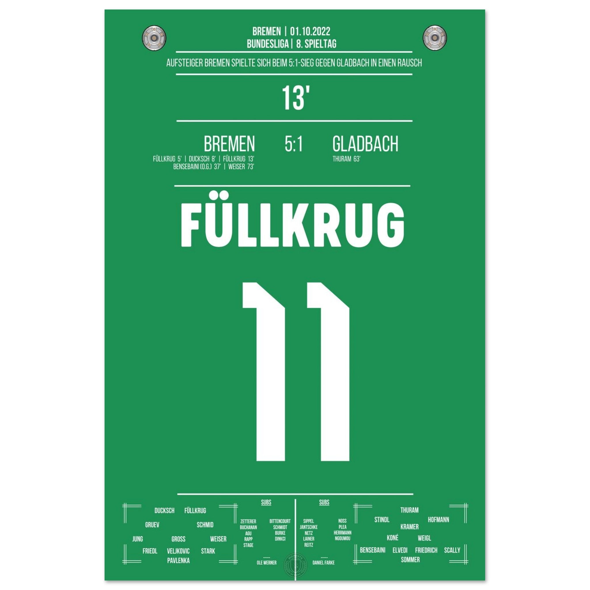 Like in a frenzy! Füllkrug's double pack in the 5:1 victory against Gladbach in 2022.