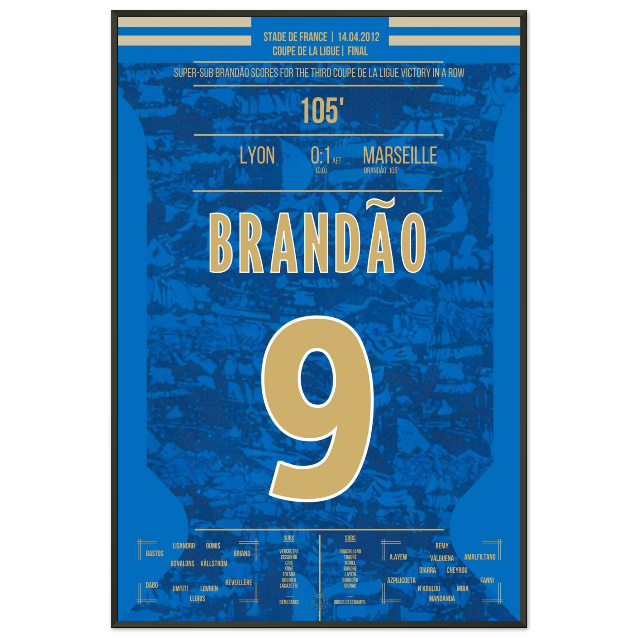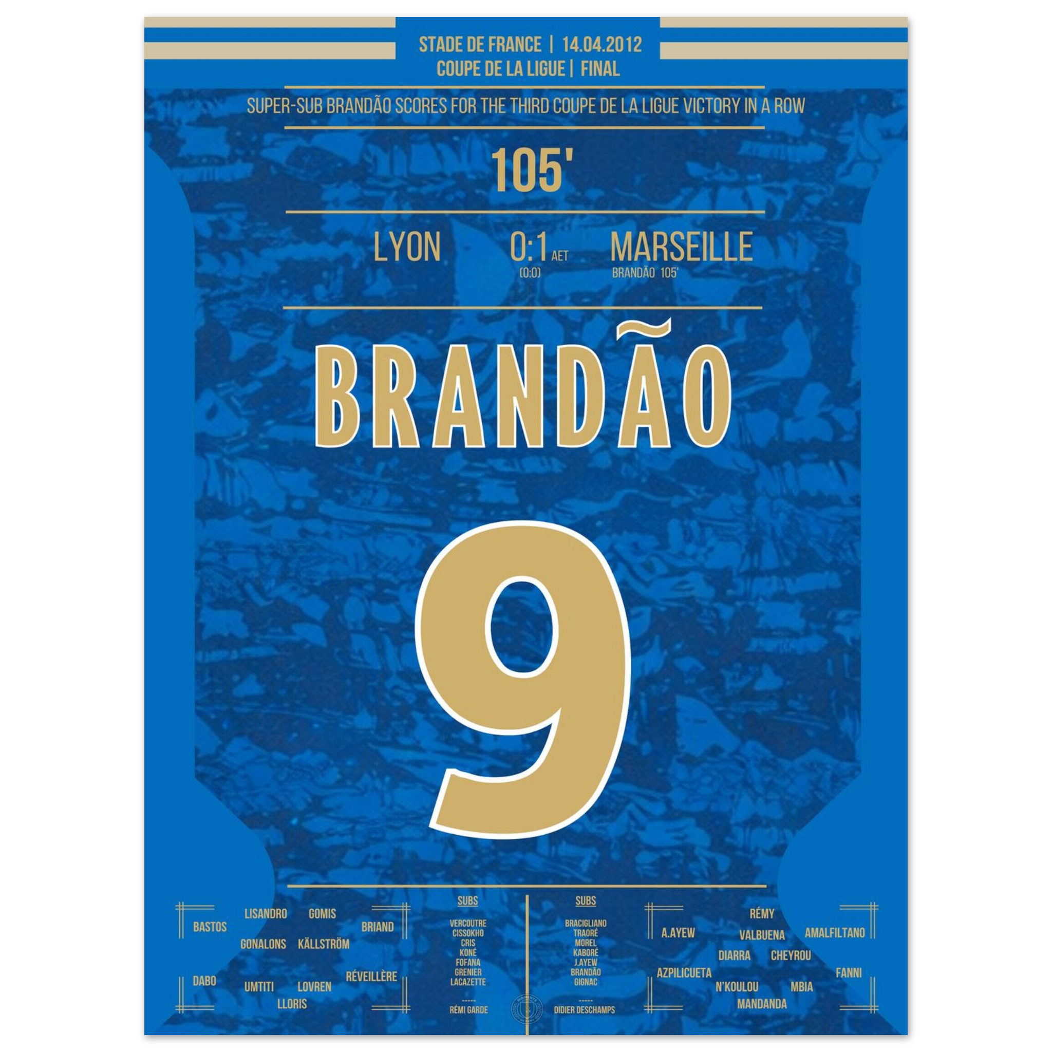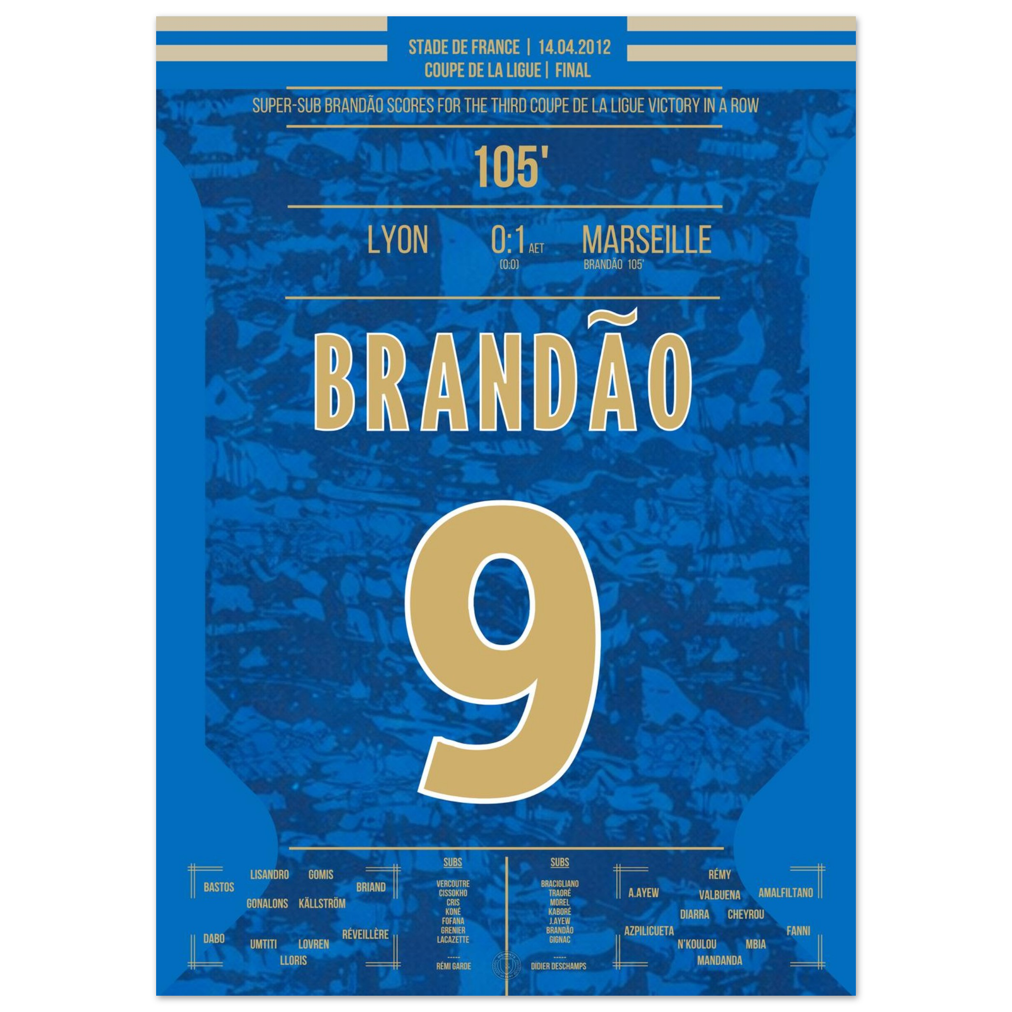 Dieses Poster fängt den Augenblick ein, in dem Brandão Geschichte schrieb und Marseille jubeln ließ.