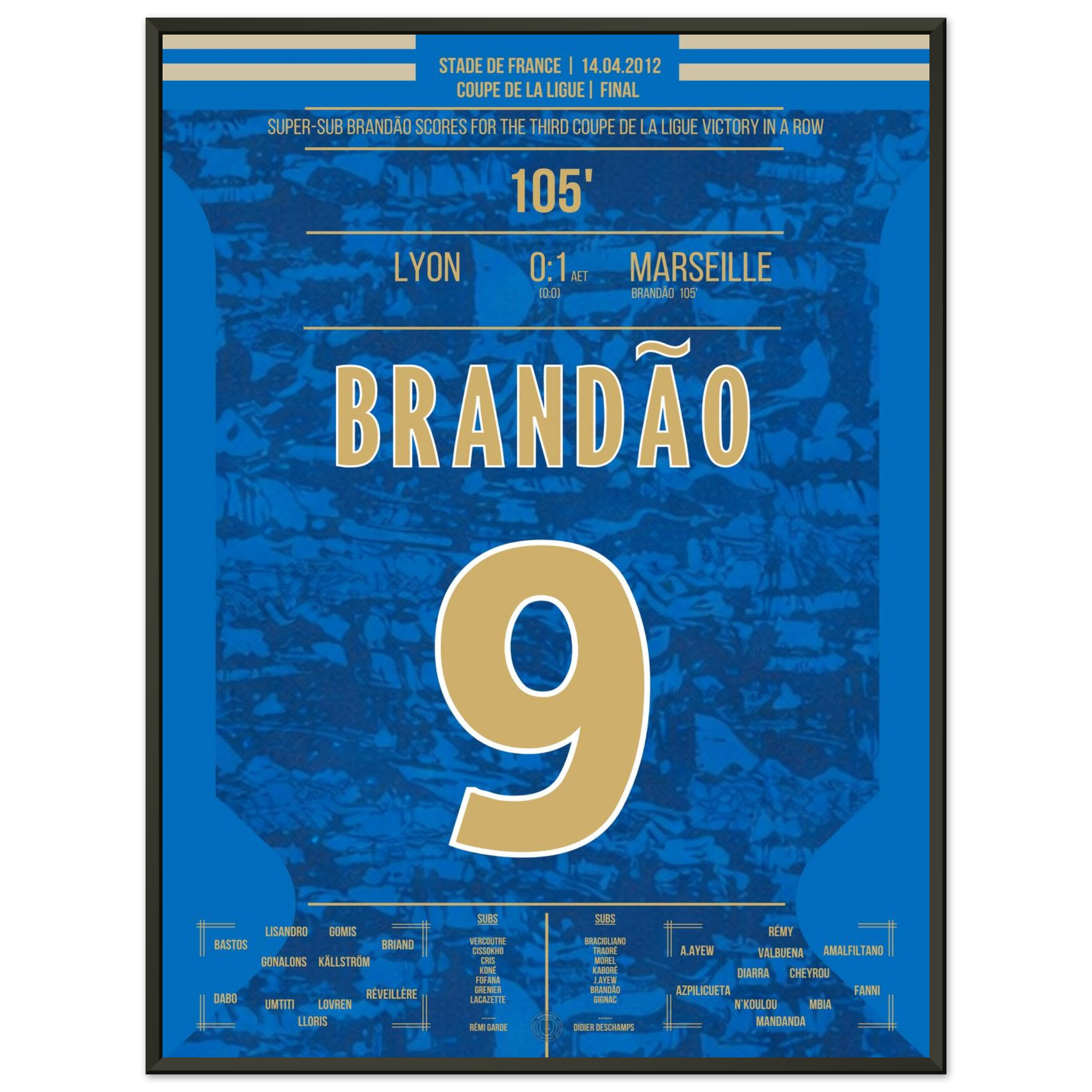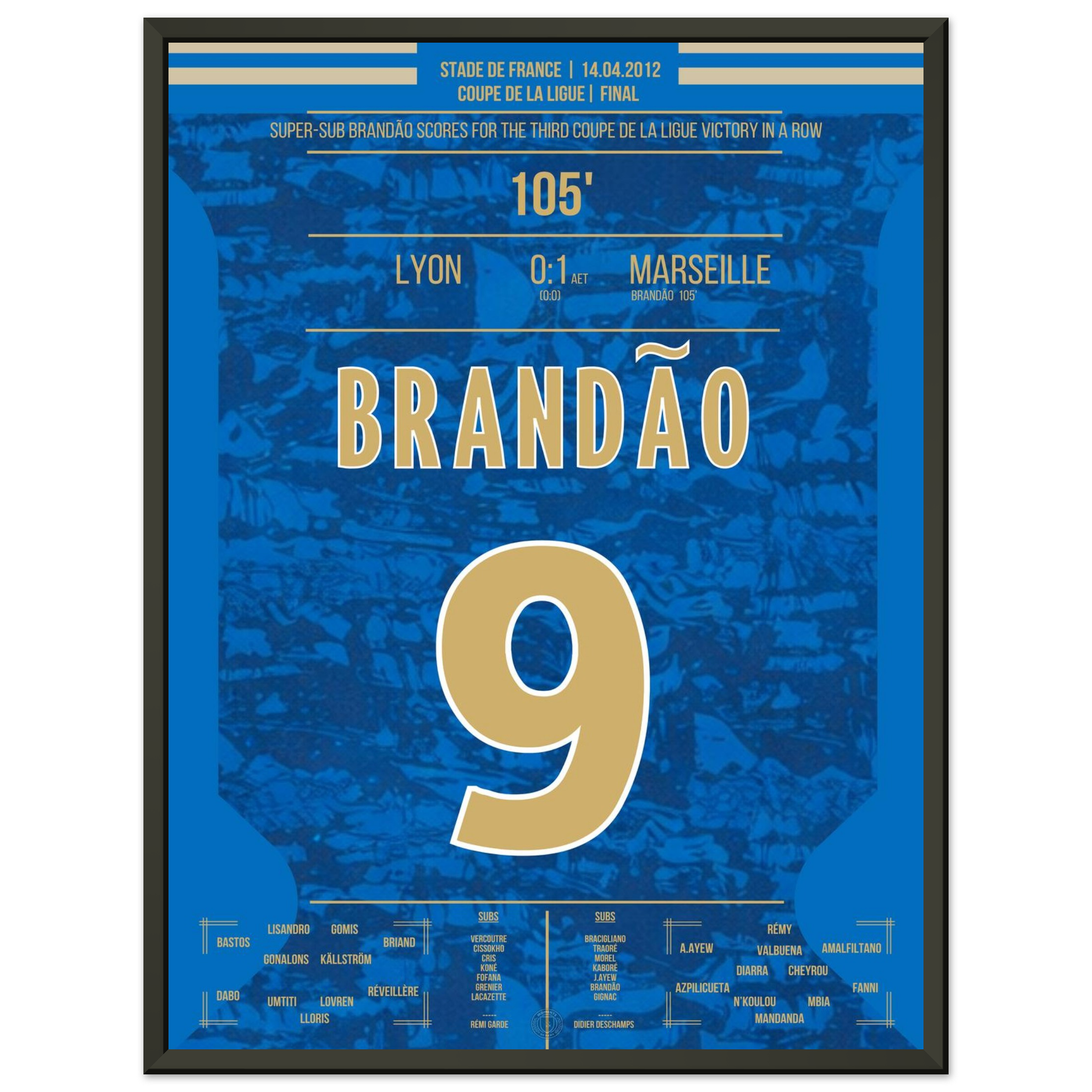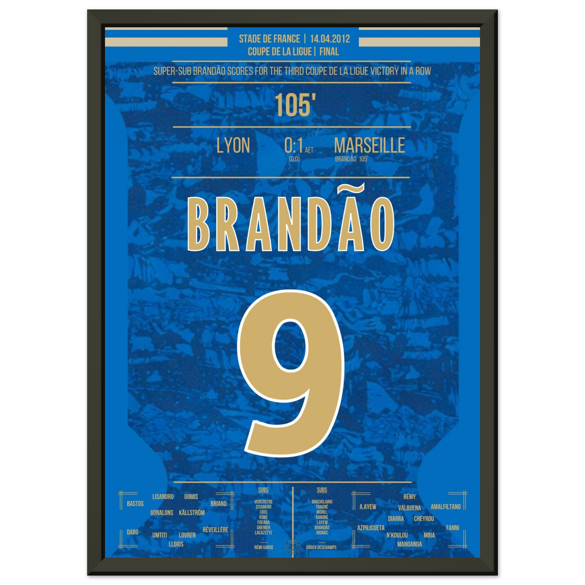 Dieses Poster fängt den Augenblick ein, in dem Brandão Geschichte schrieb und Marseille jubeln ließ.