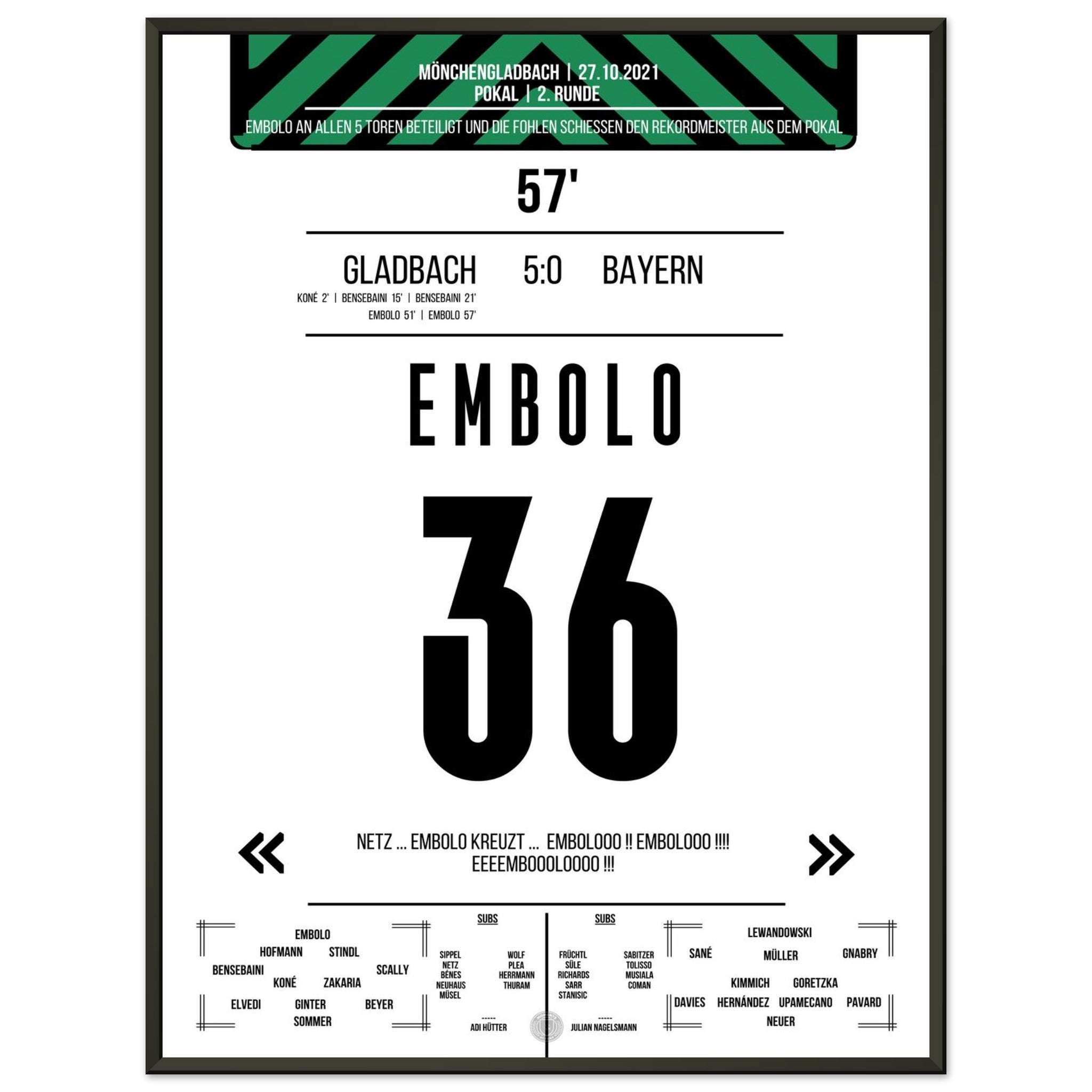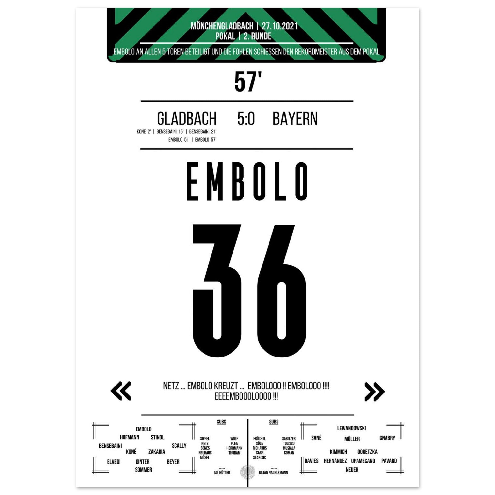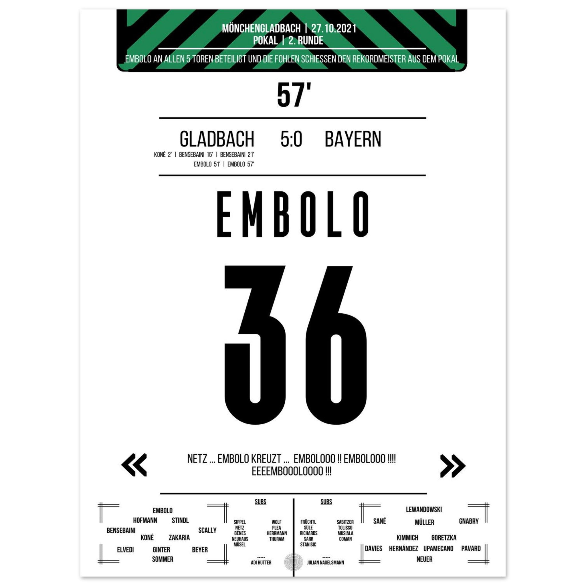 Breel Embolo during the 5-0 victory in the DFB Cup Gladbach - <tc>Bayern</tc> 2021