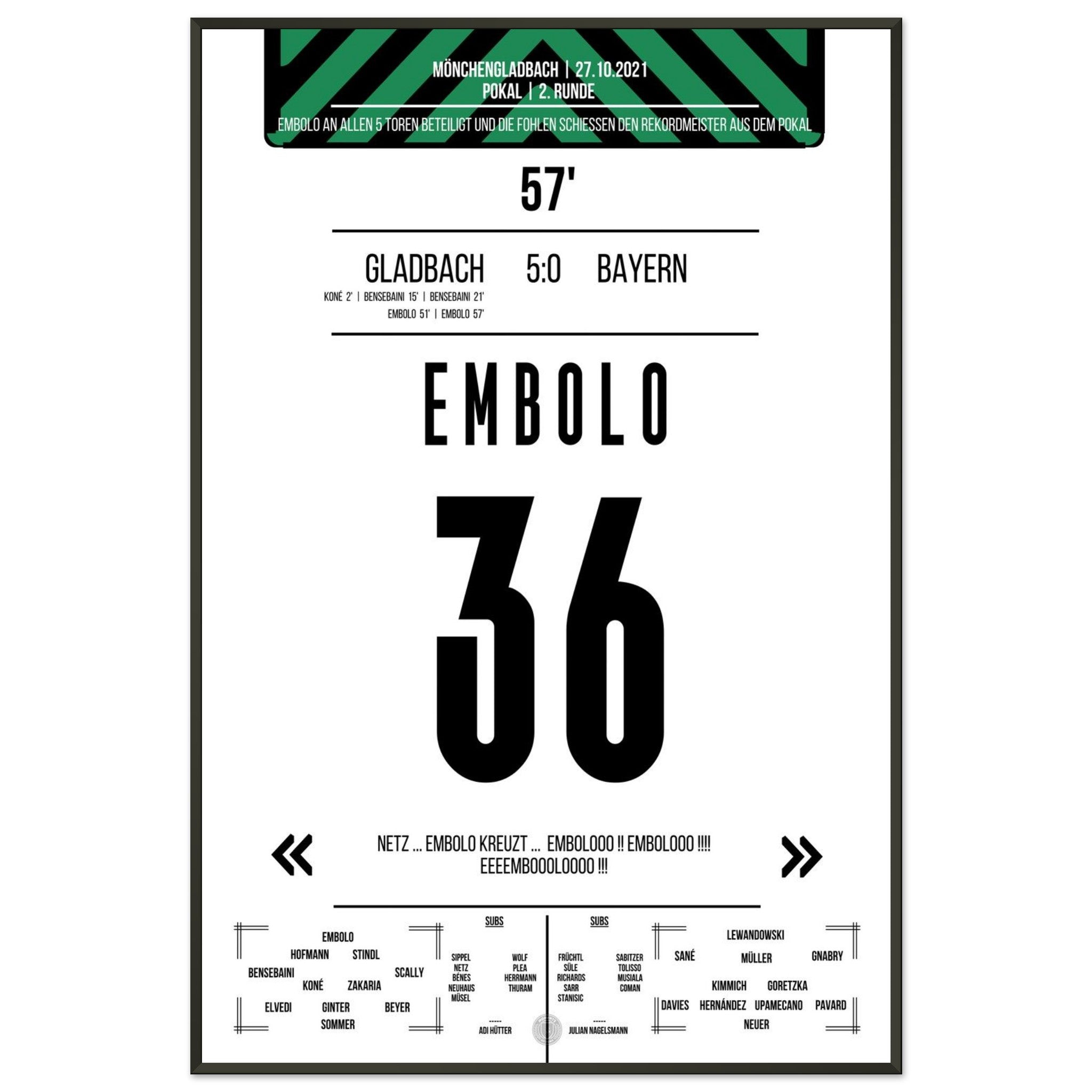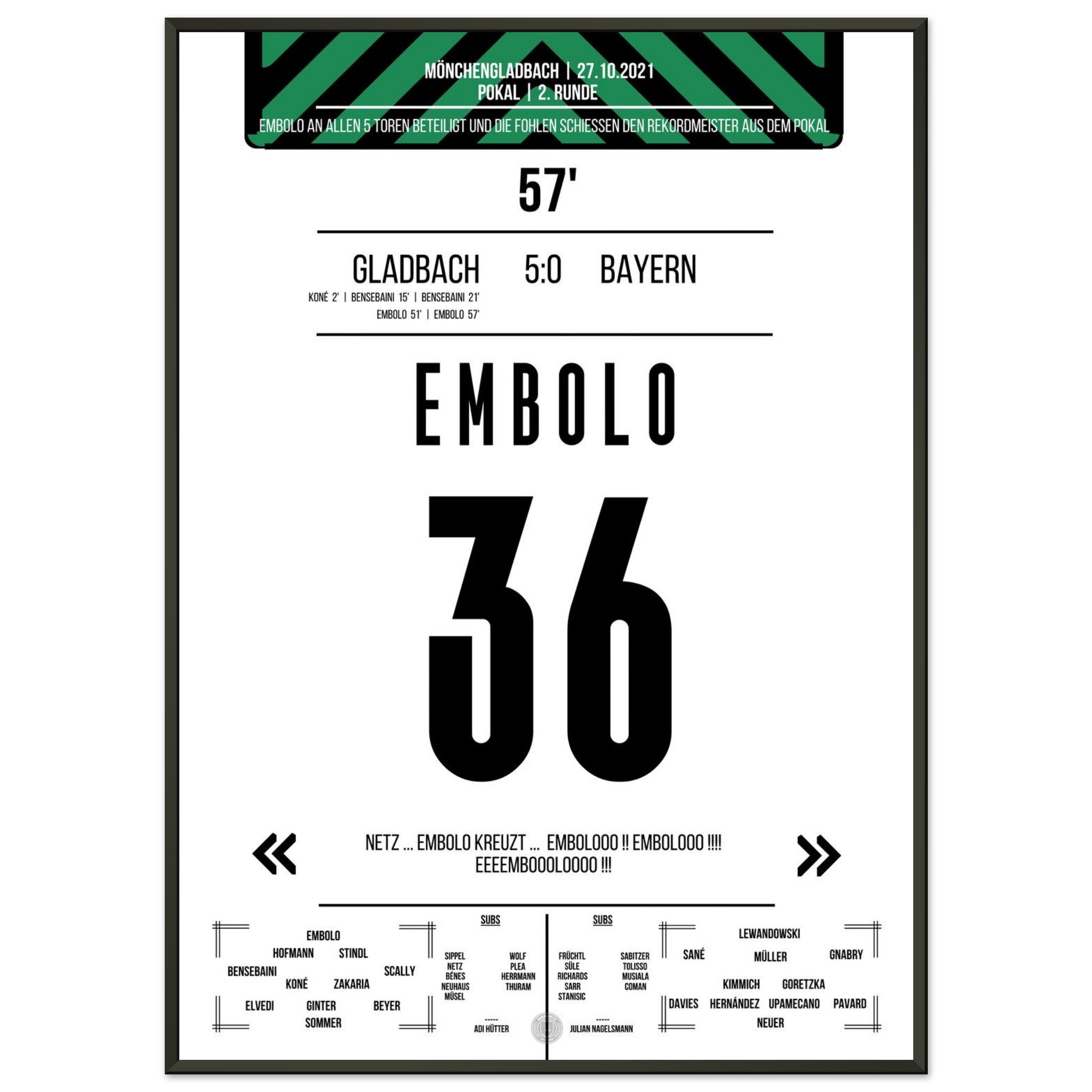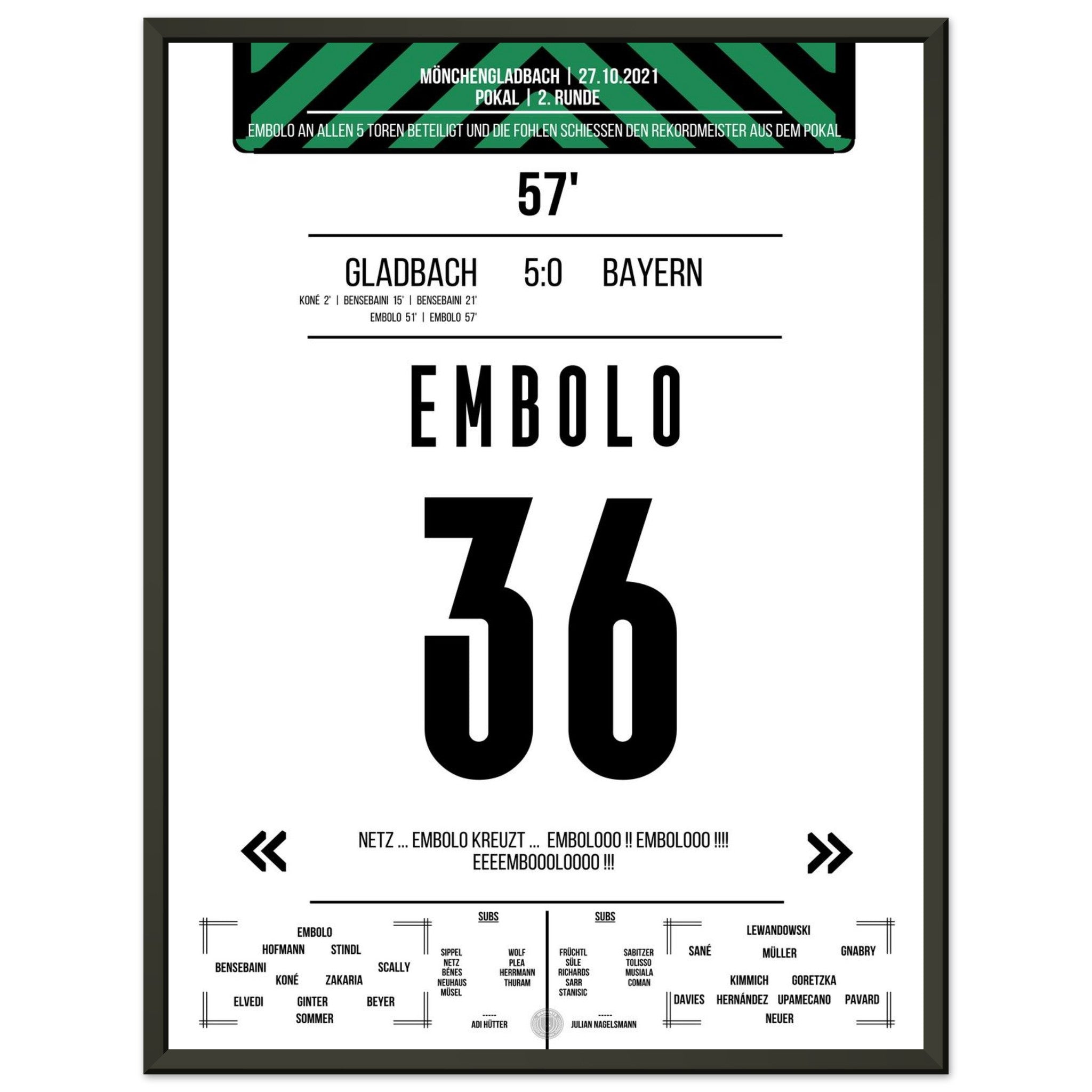 Breel Embolo during the 5-0 victory in the DFB Cup Gladbach - <tc>Bayern</tc> 2021