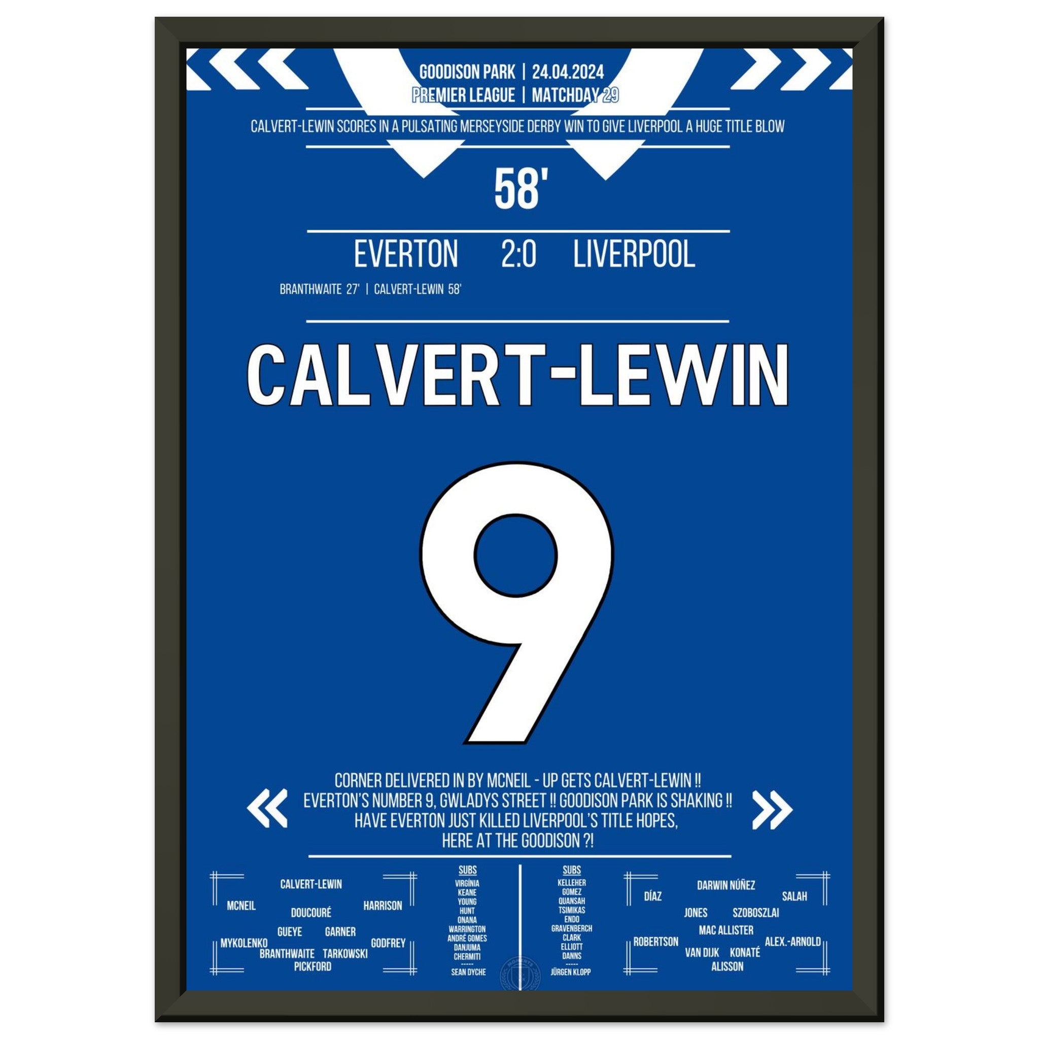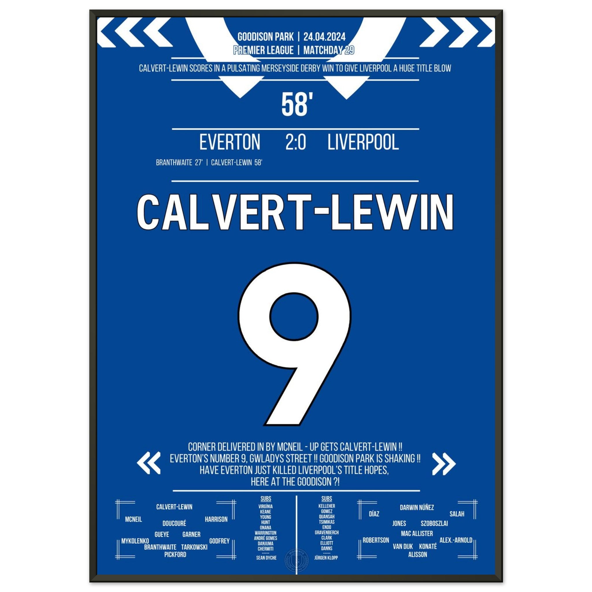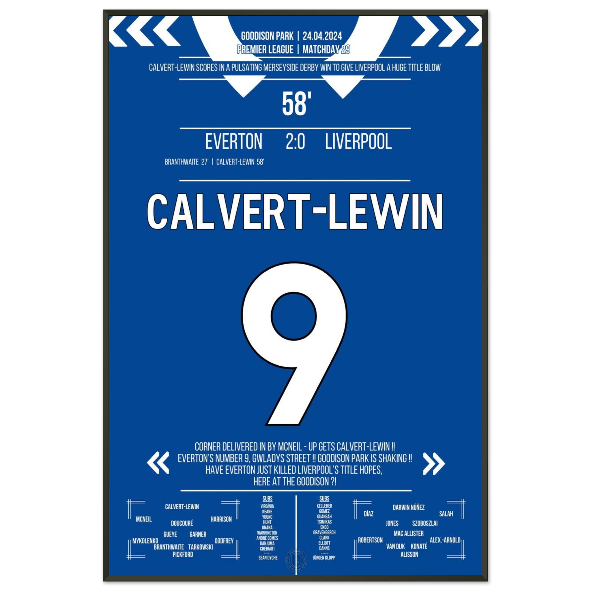 Calvert-Lewin scores the winning goal in the Merseyside Derby.