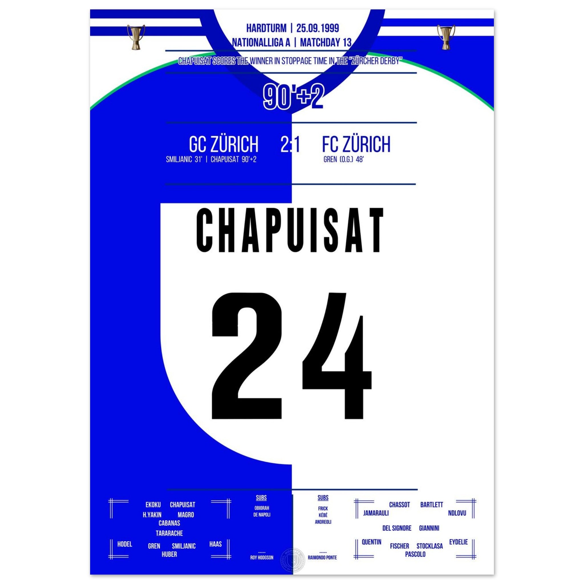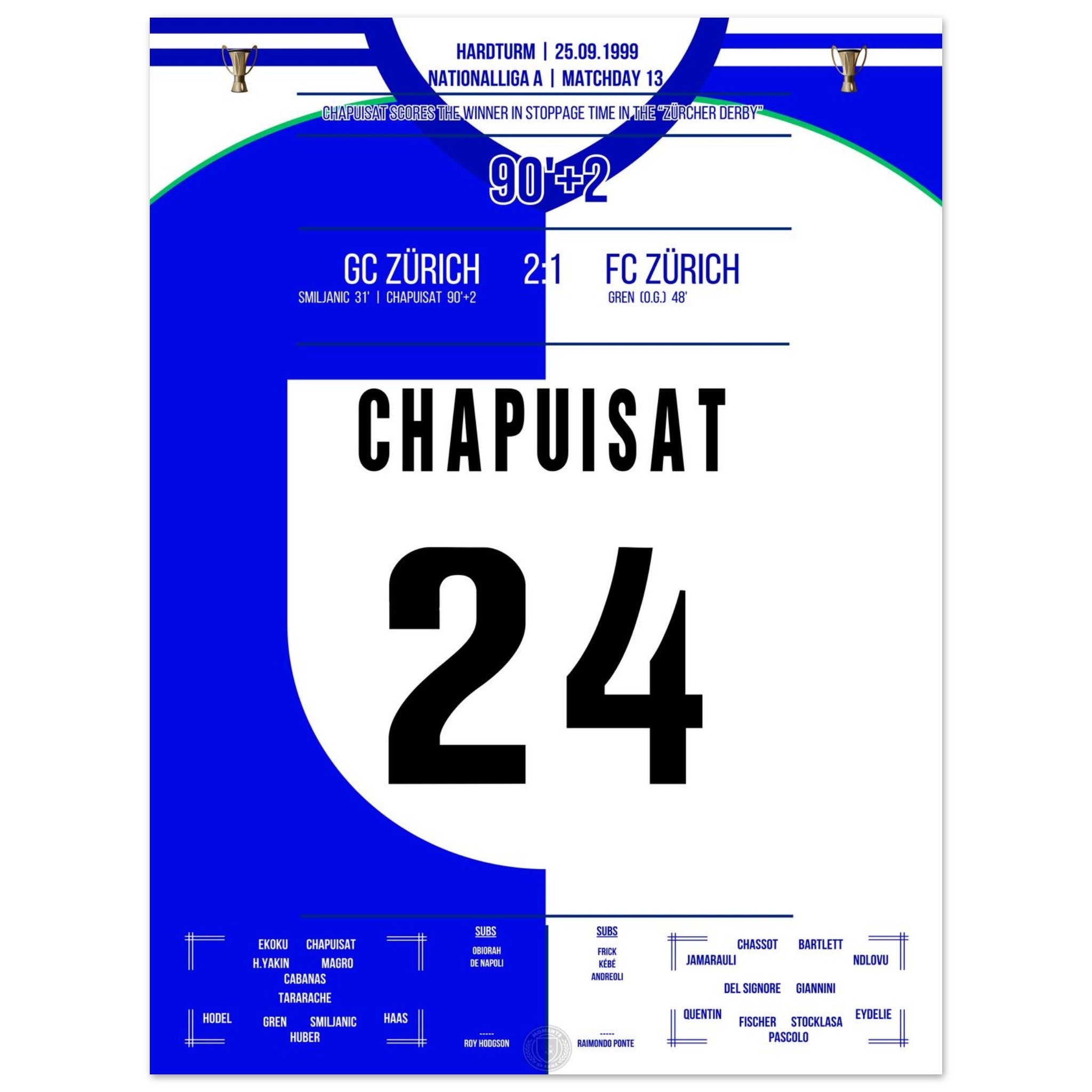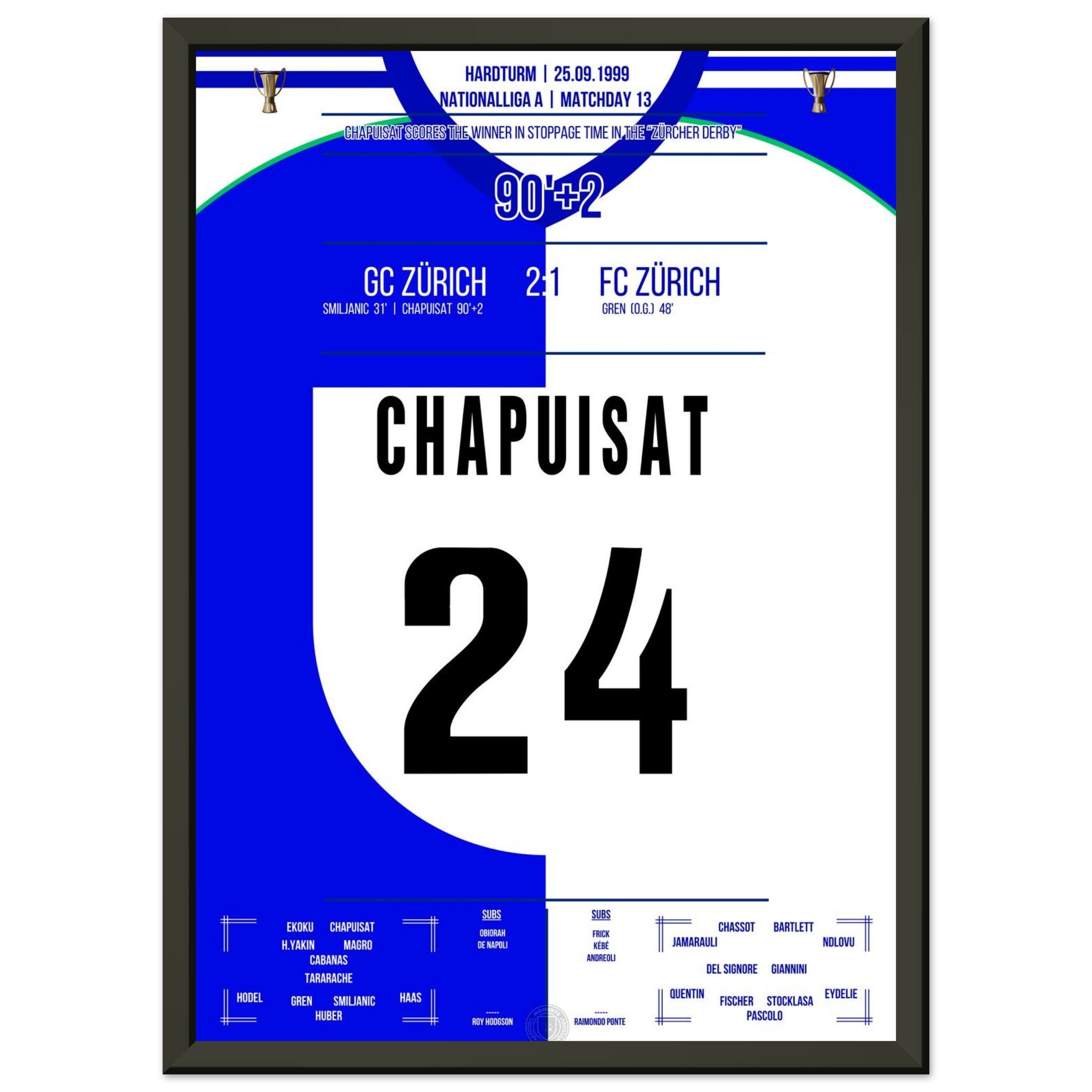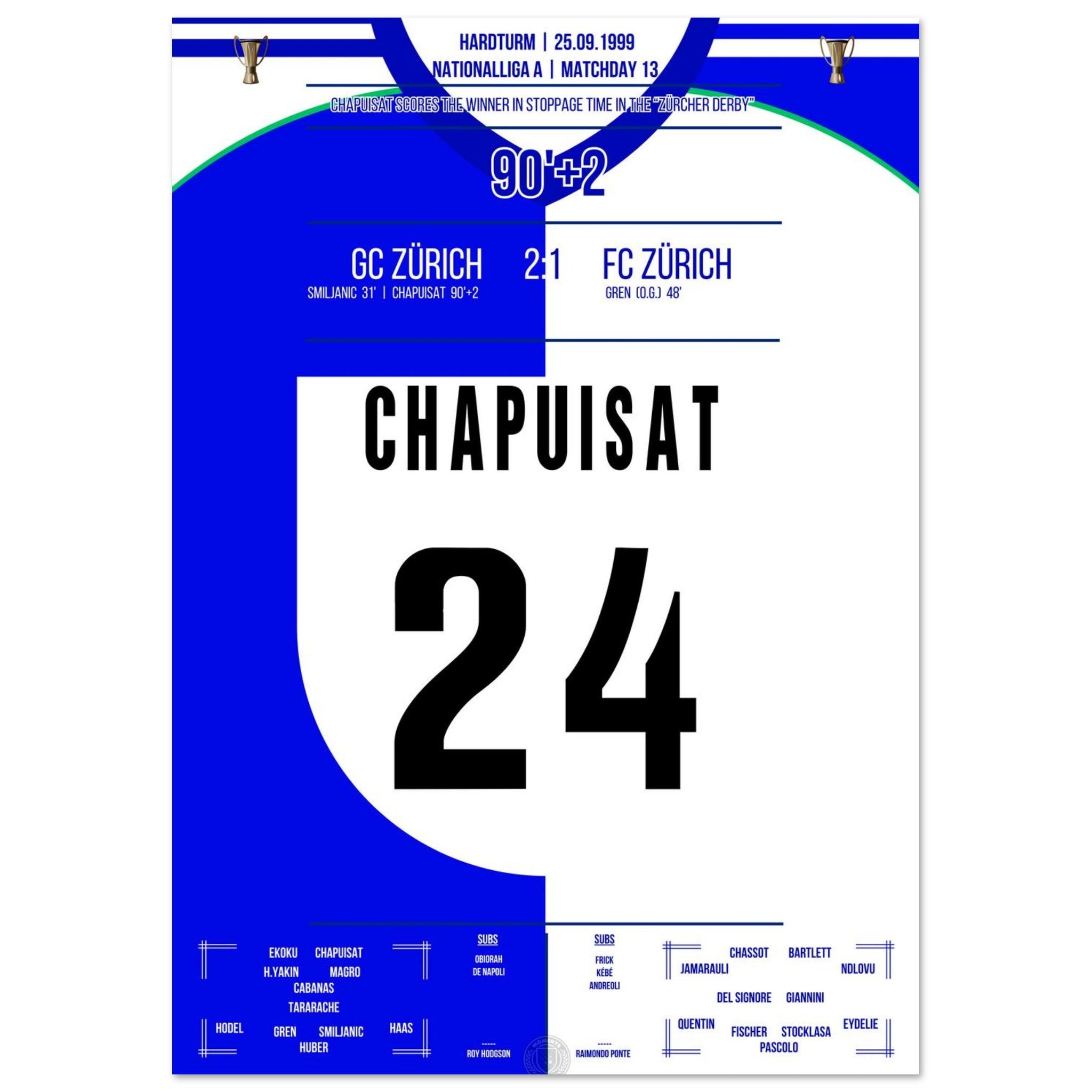 Chapuisat's later winning goal in the Zurich Derby in 1999