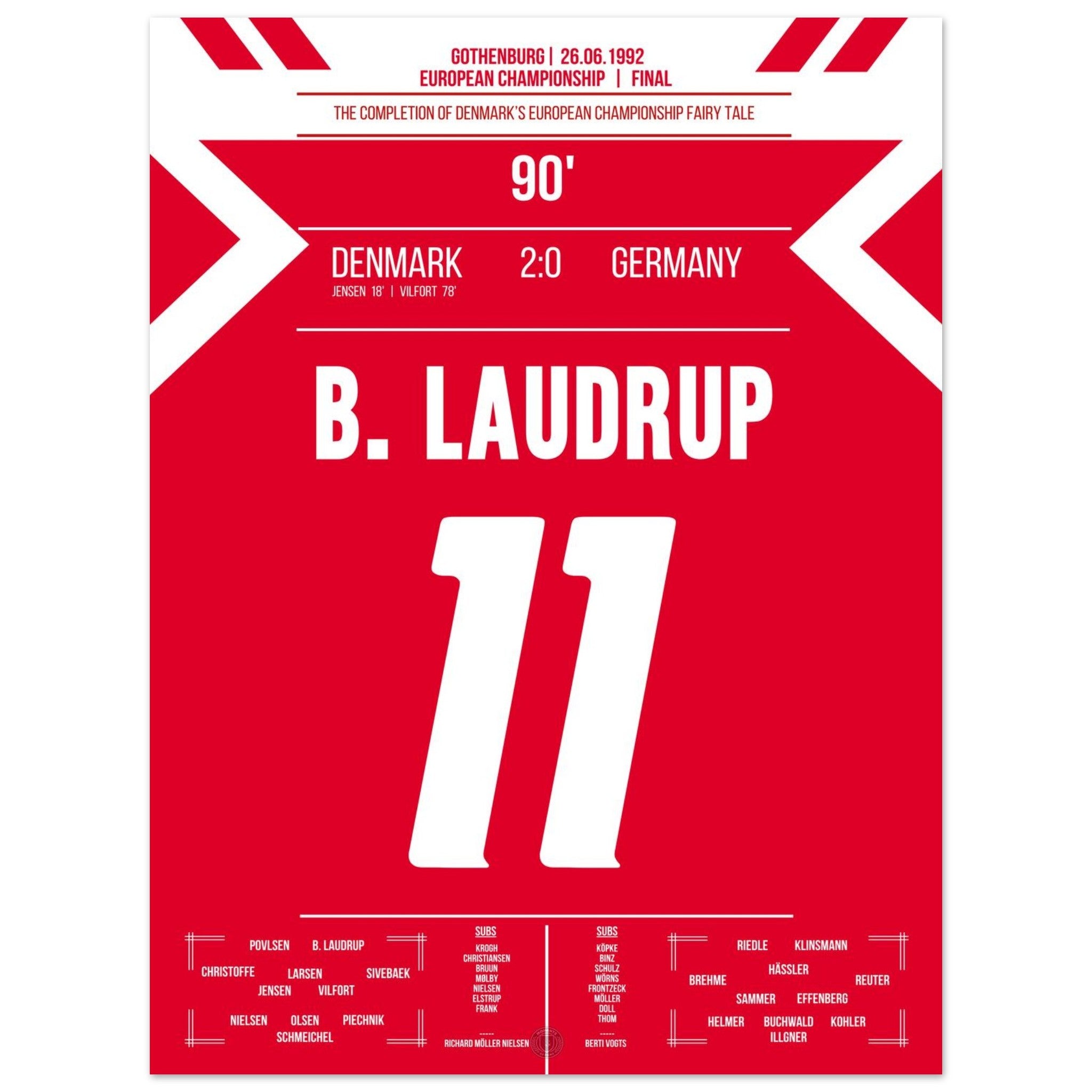 Denmark writes a football fairy tale in the final of the European Championship 1992.