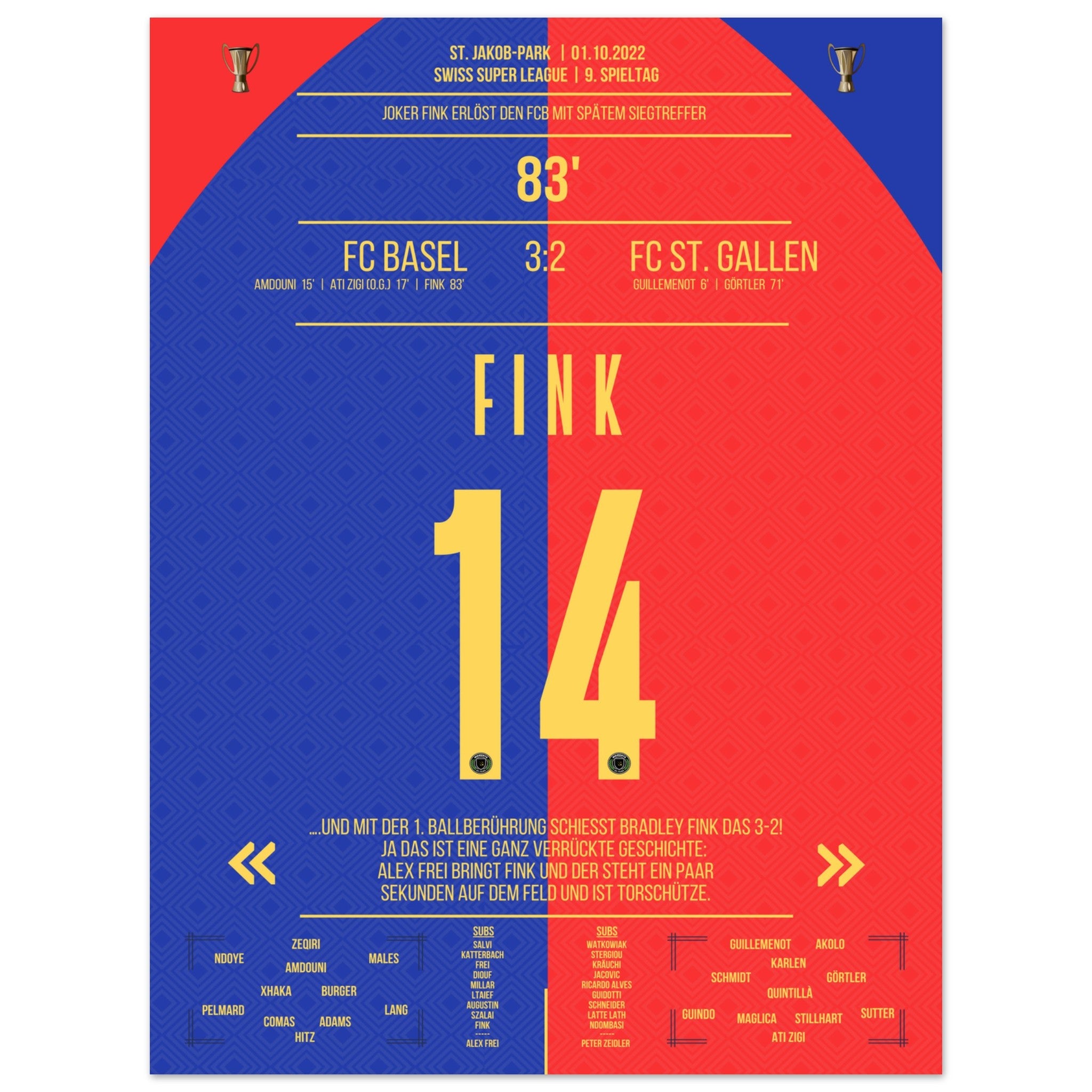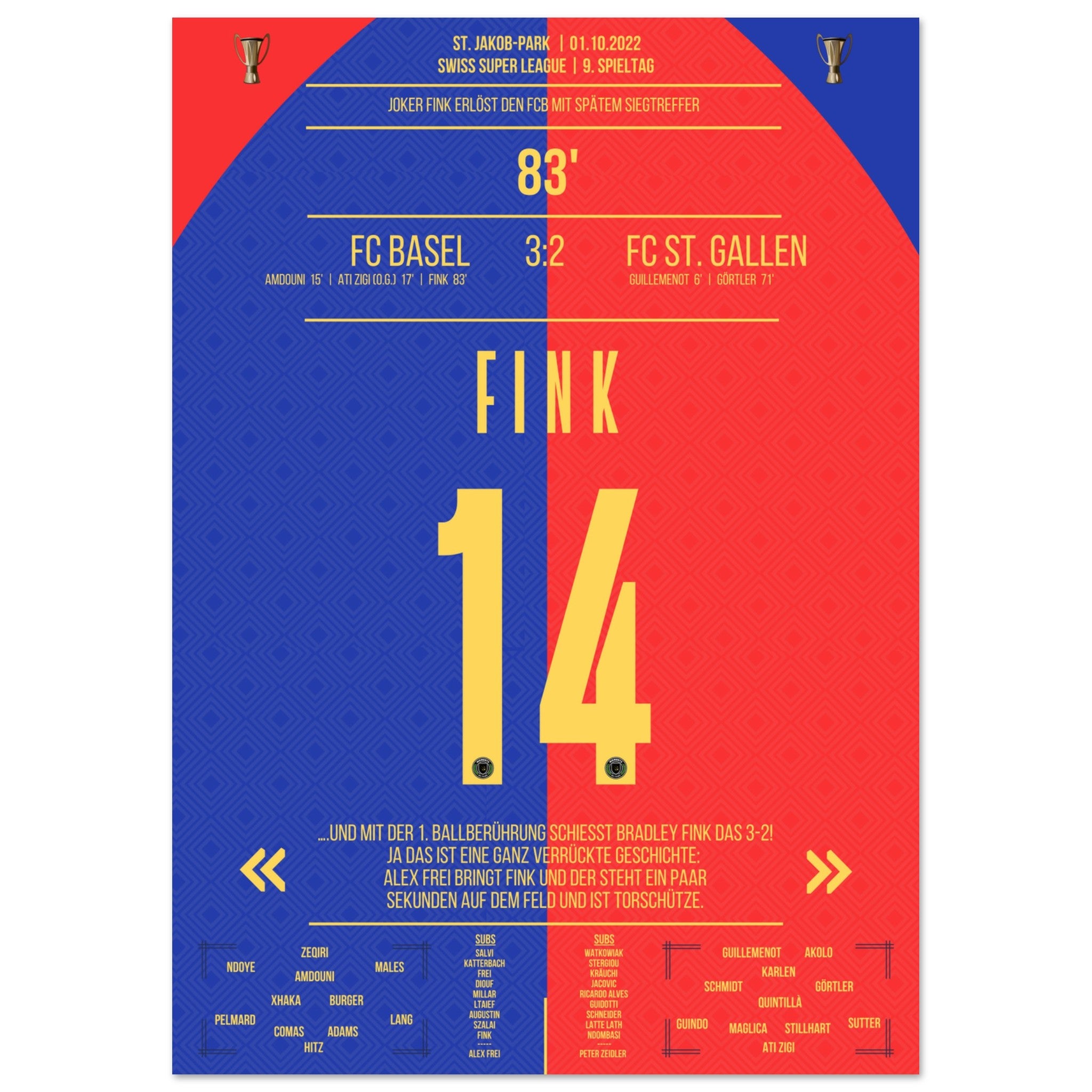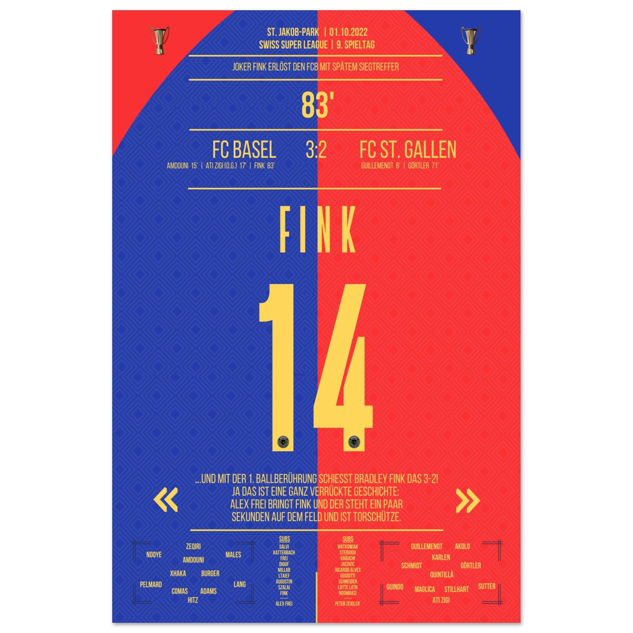 The substituted Fink scores the winning goal for Basel.