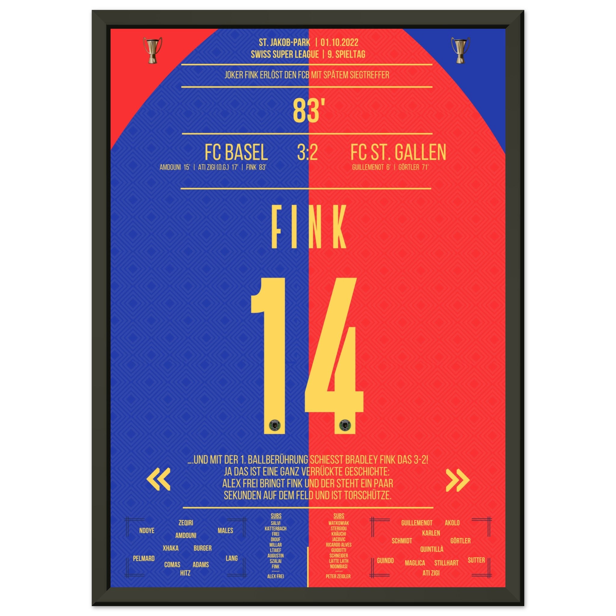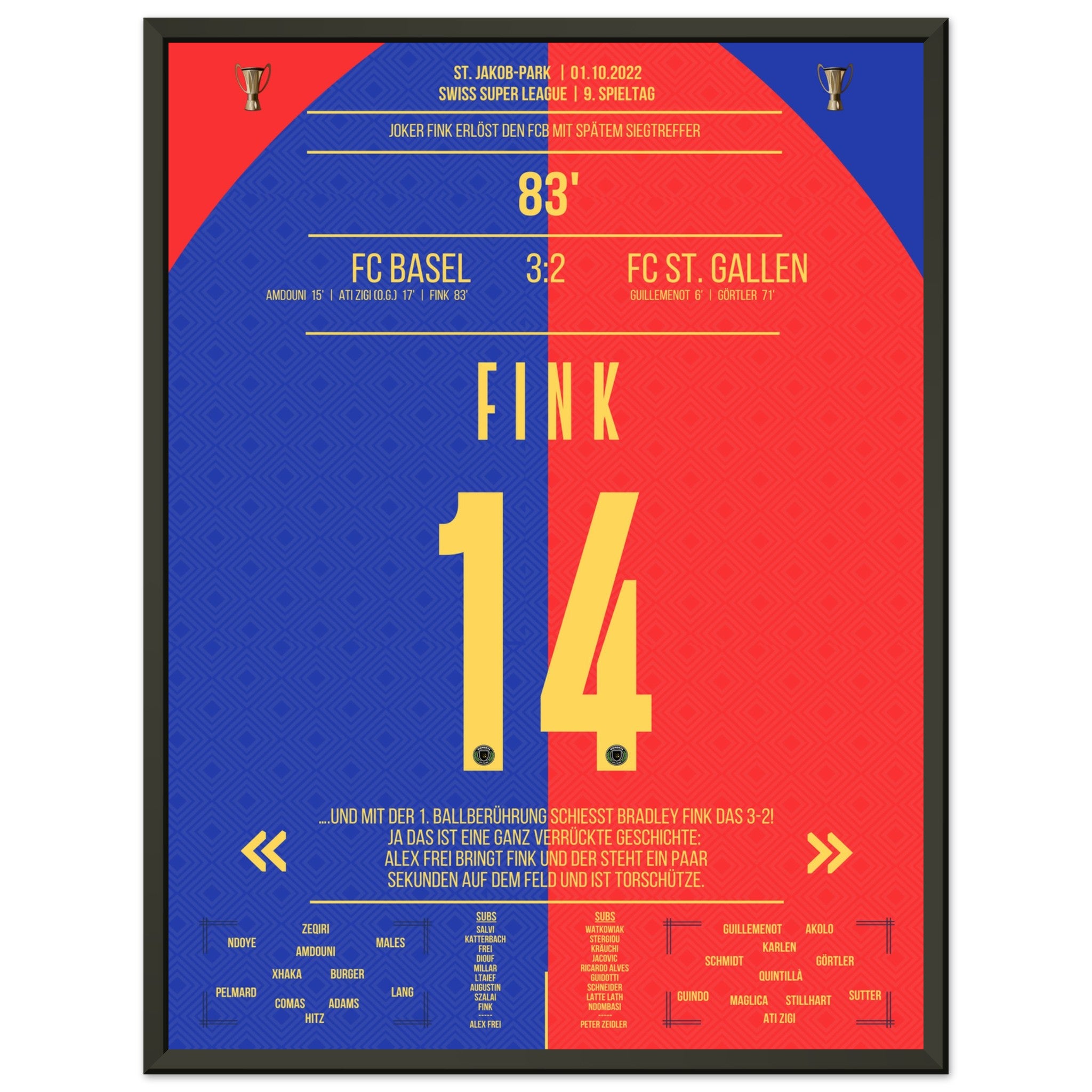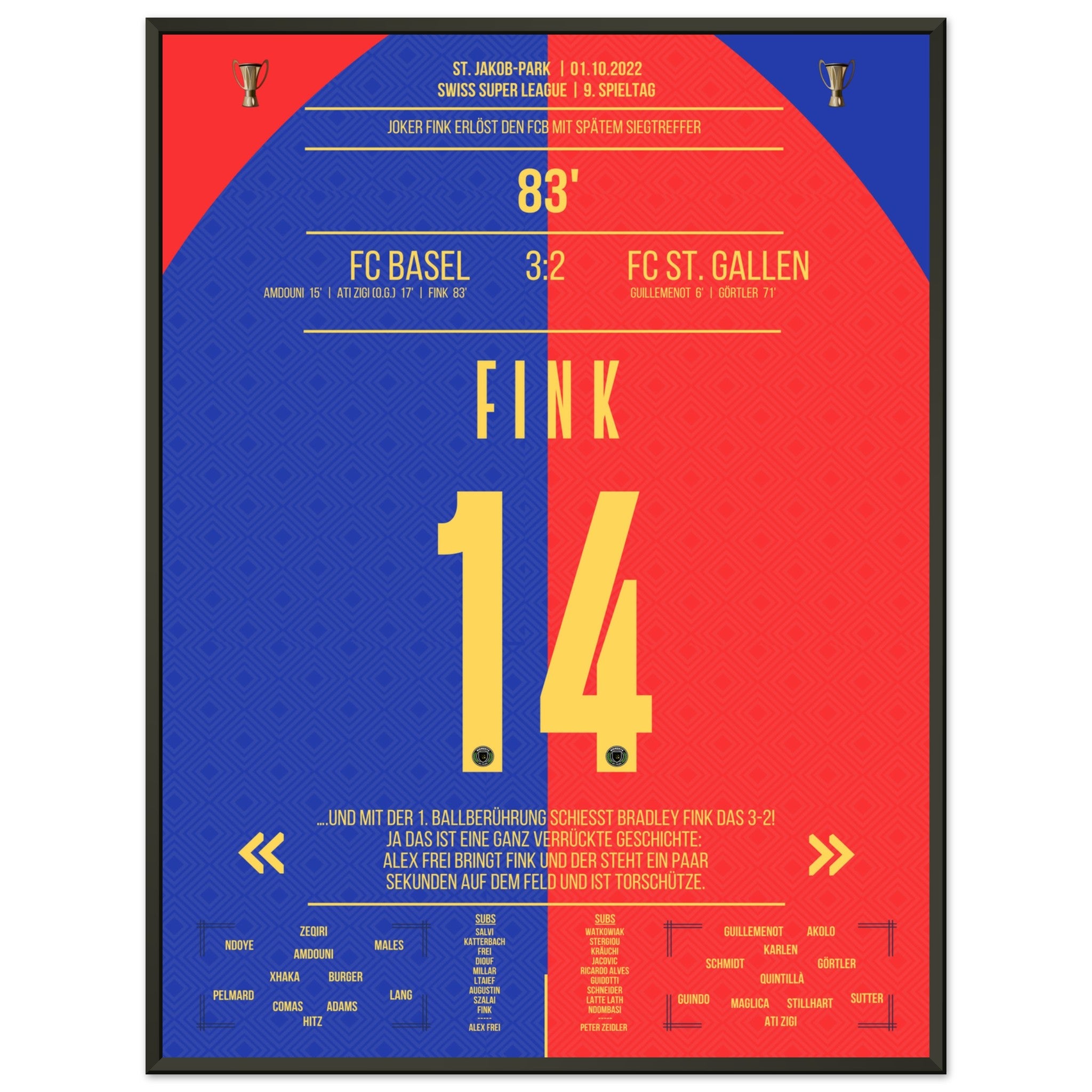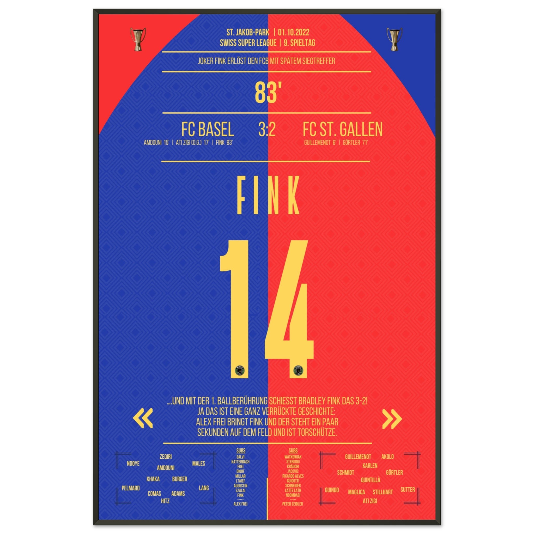 The substituted Fink scores the winning goal for Basel.