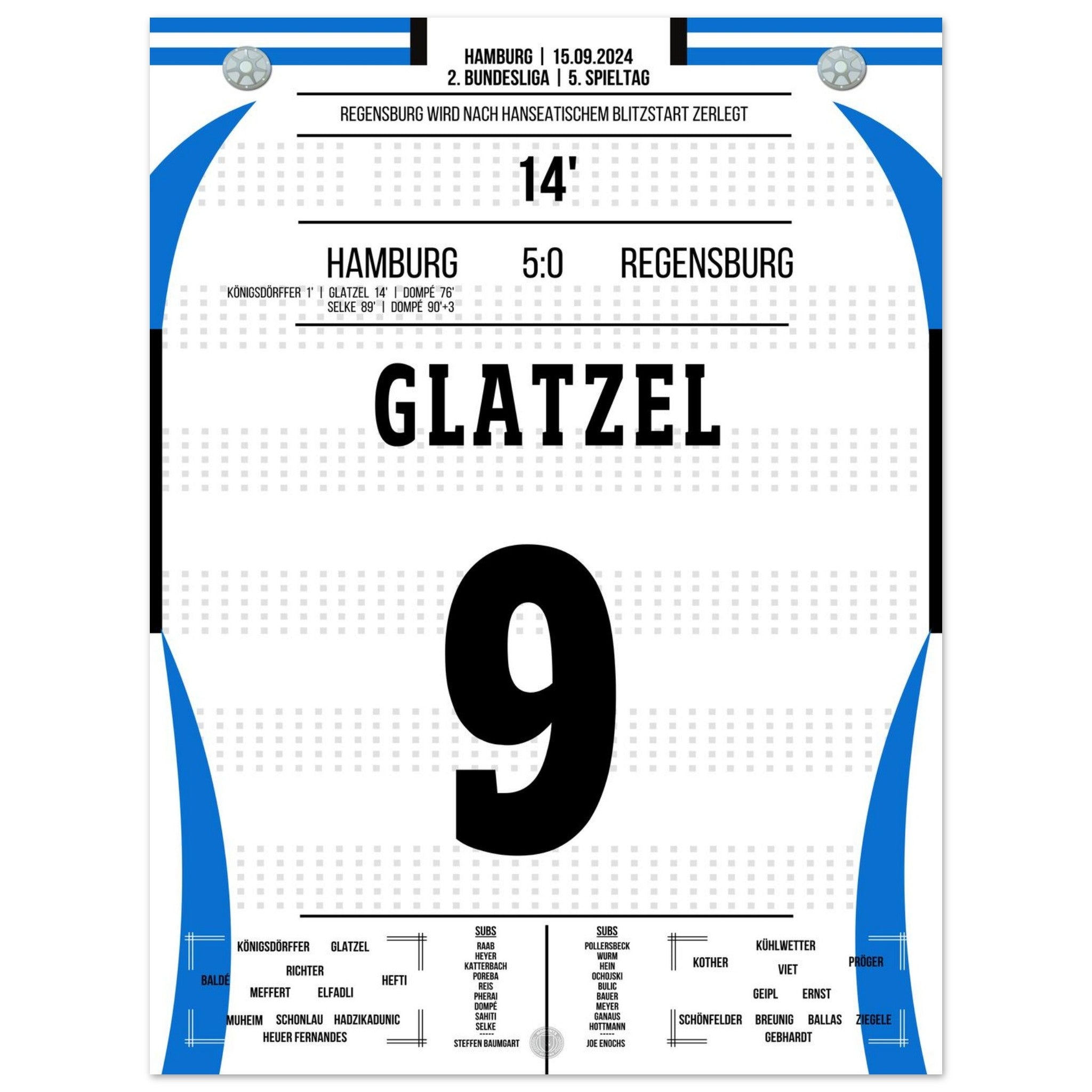Glatzel scores in Hamburg's crushing victory against Regensburg.
