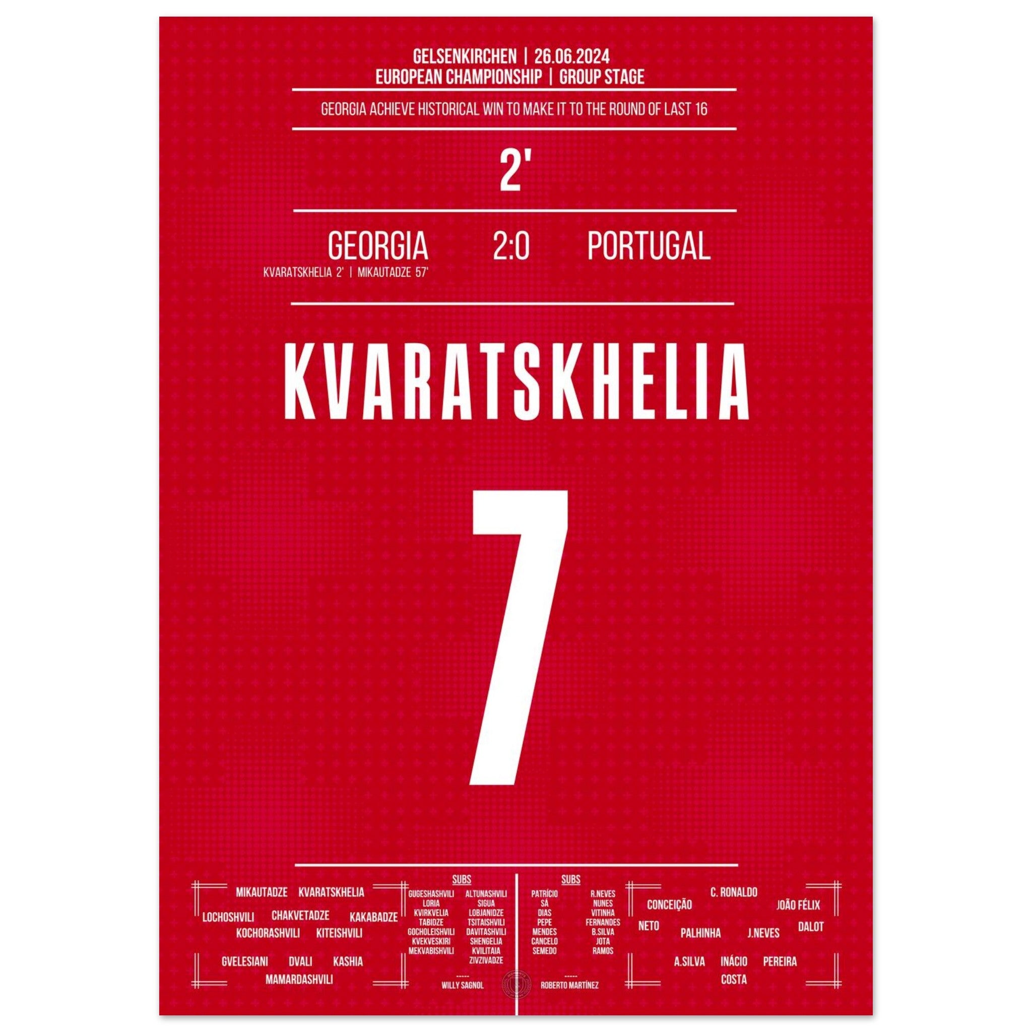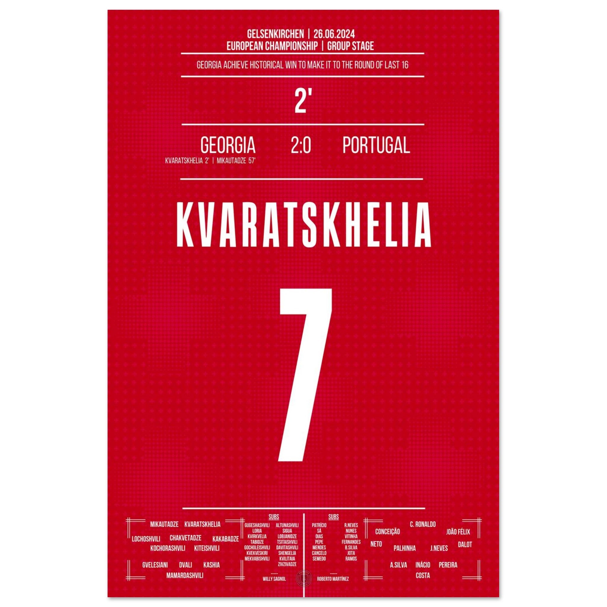 Kvaratskhelia's opening goal in Georgia's historic victory to reach the Round of 16.