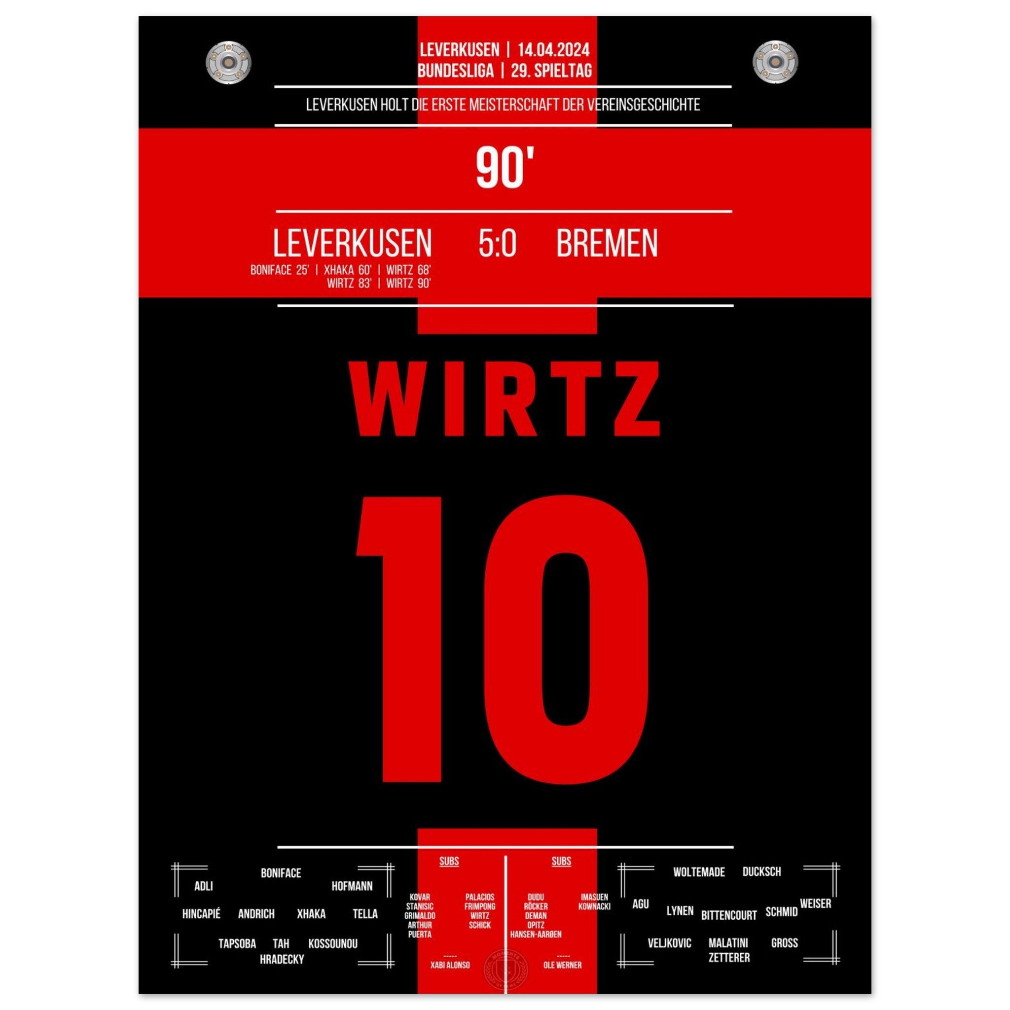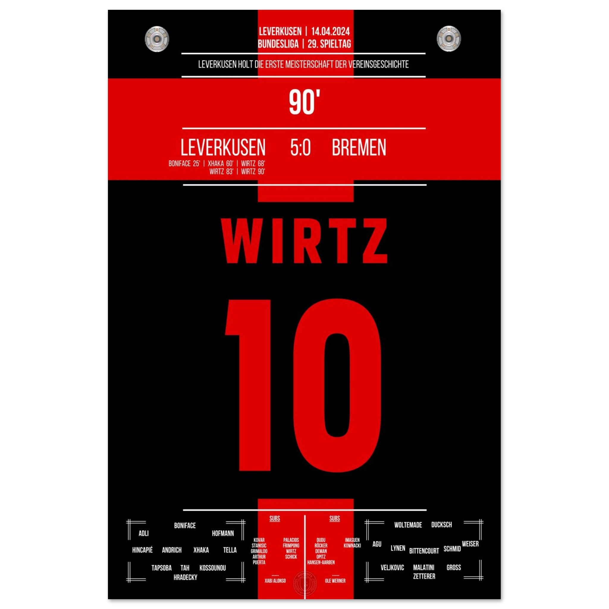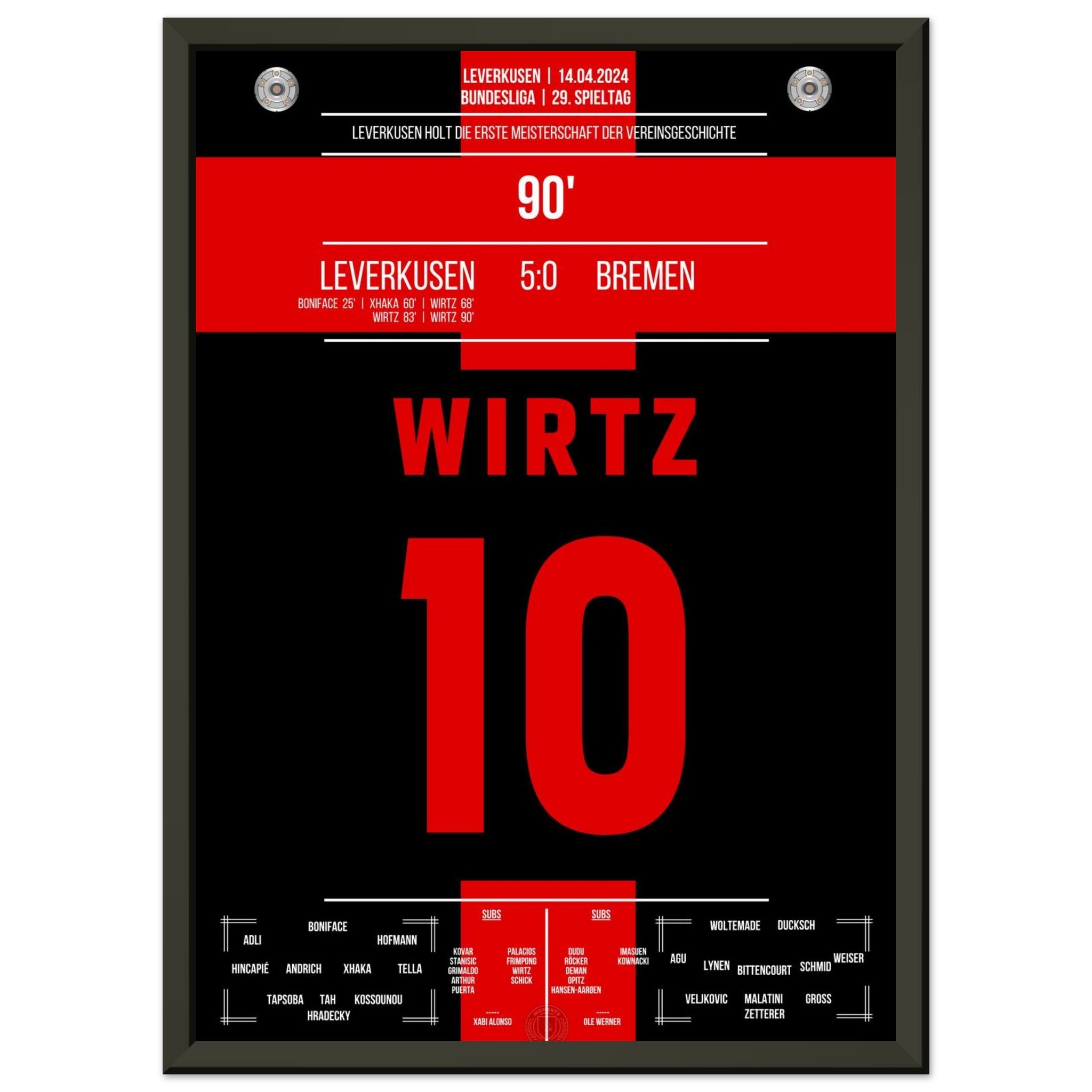 Leverkusen secures the first championship title in the club's history.