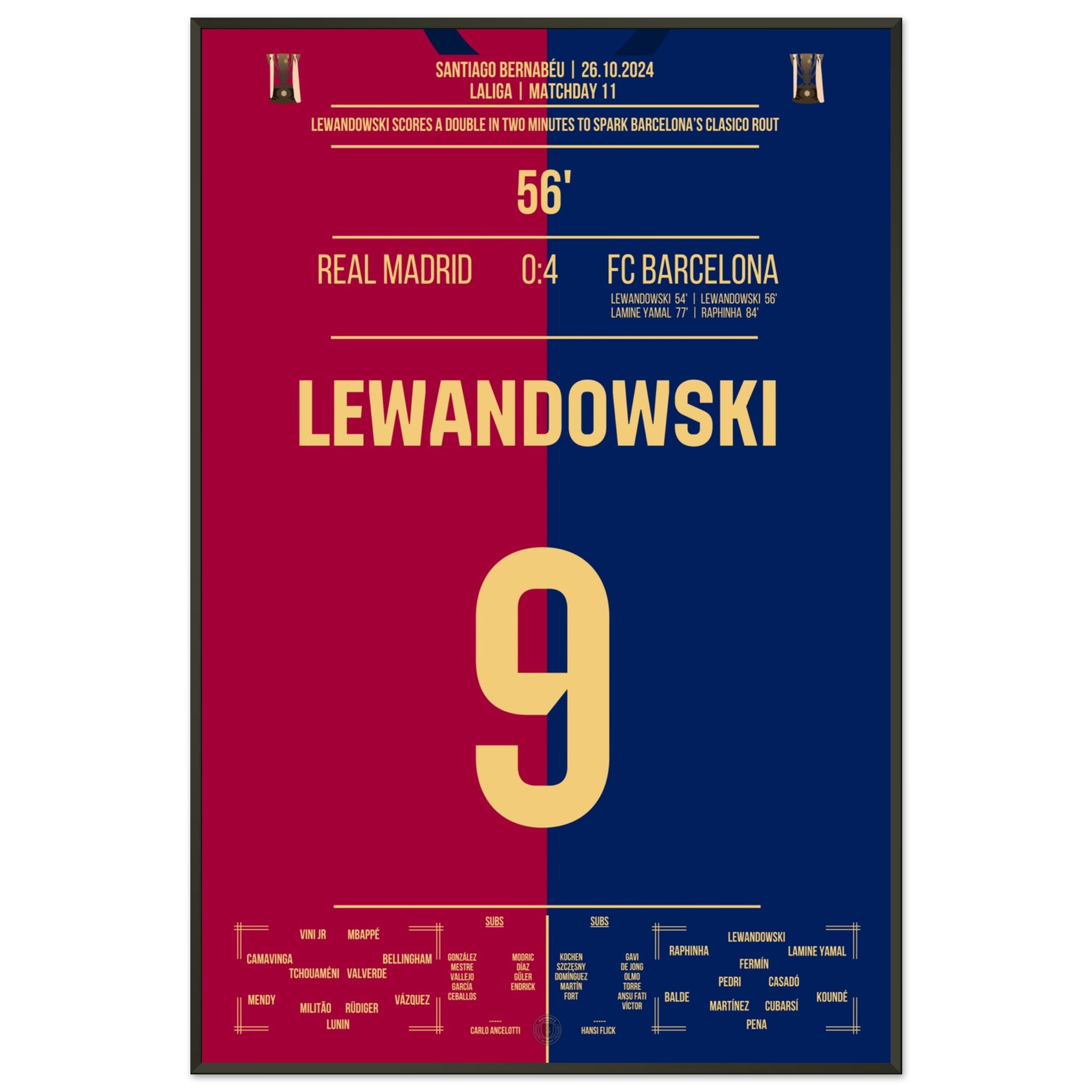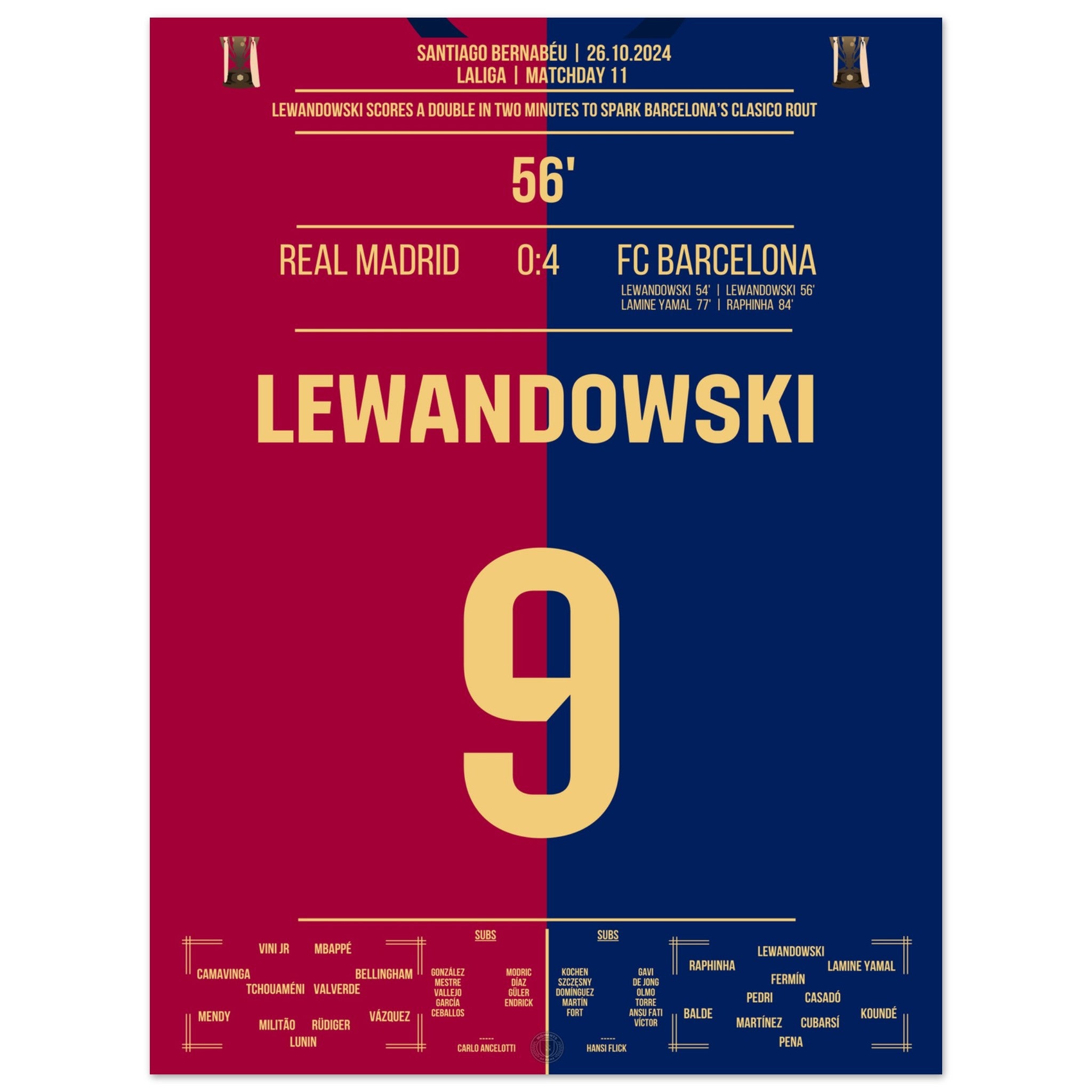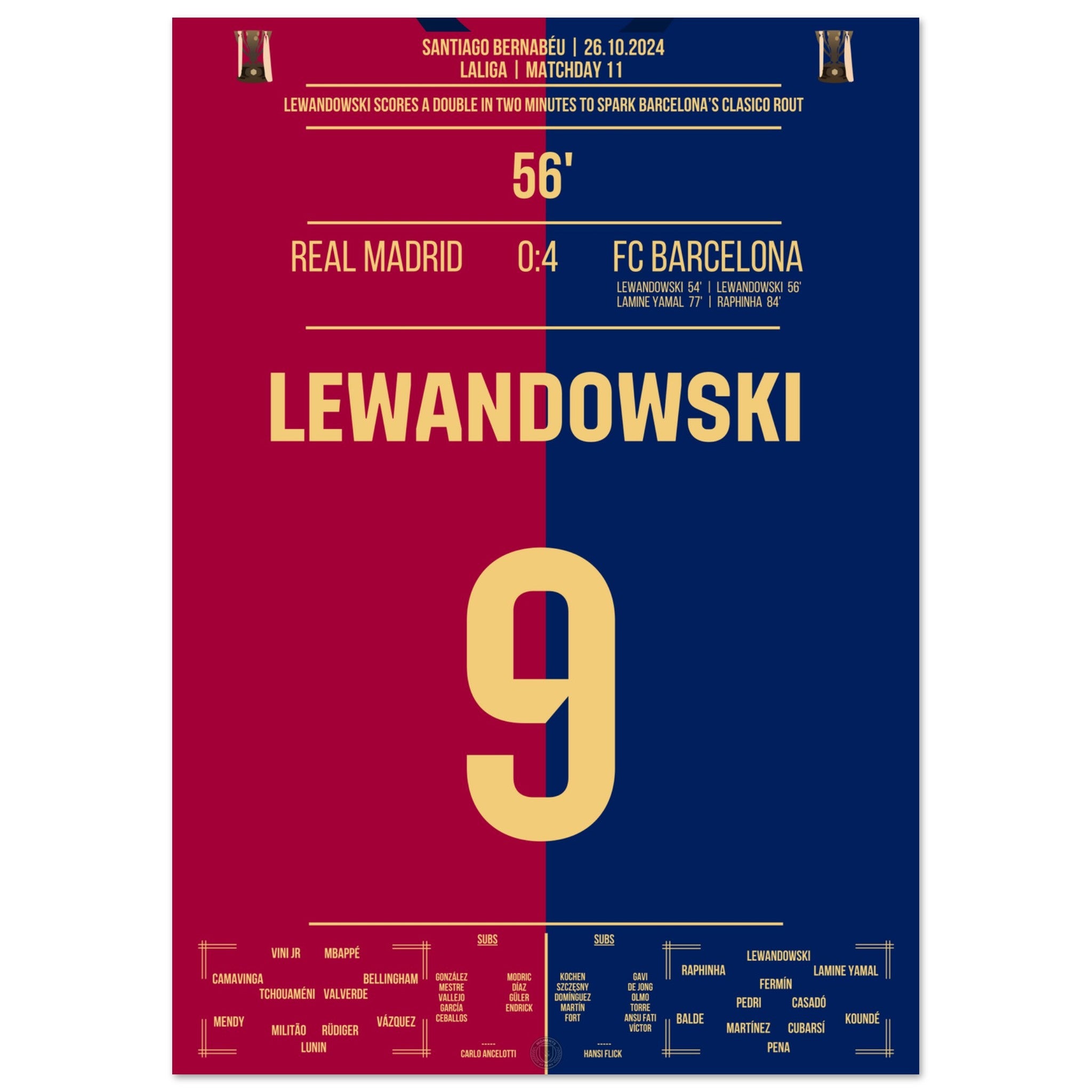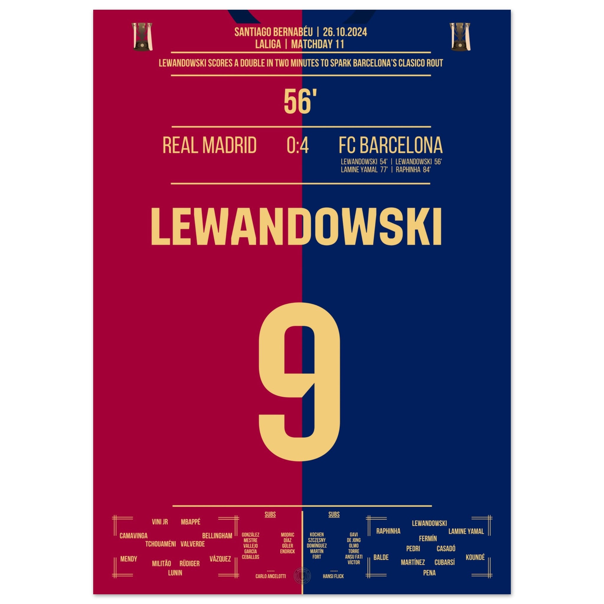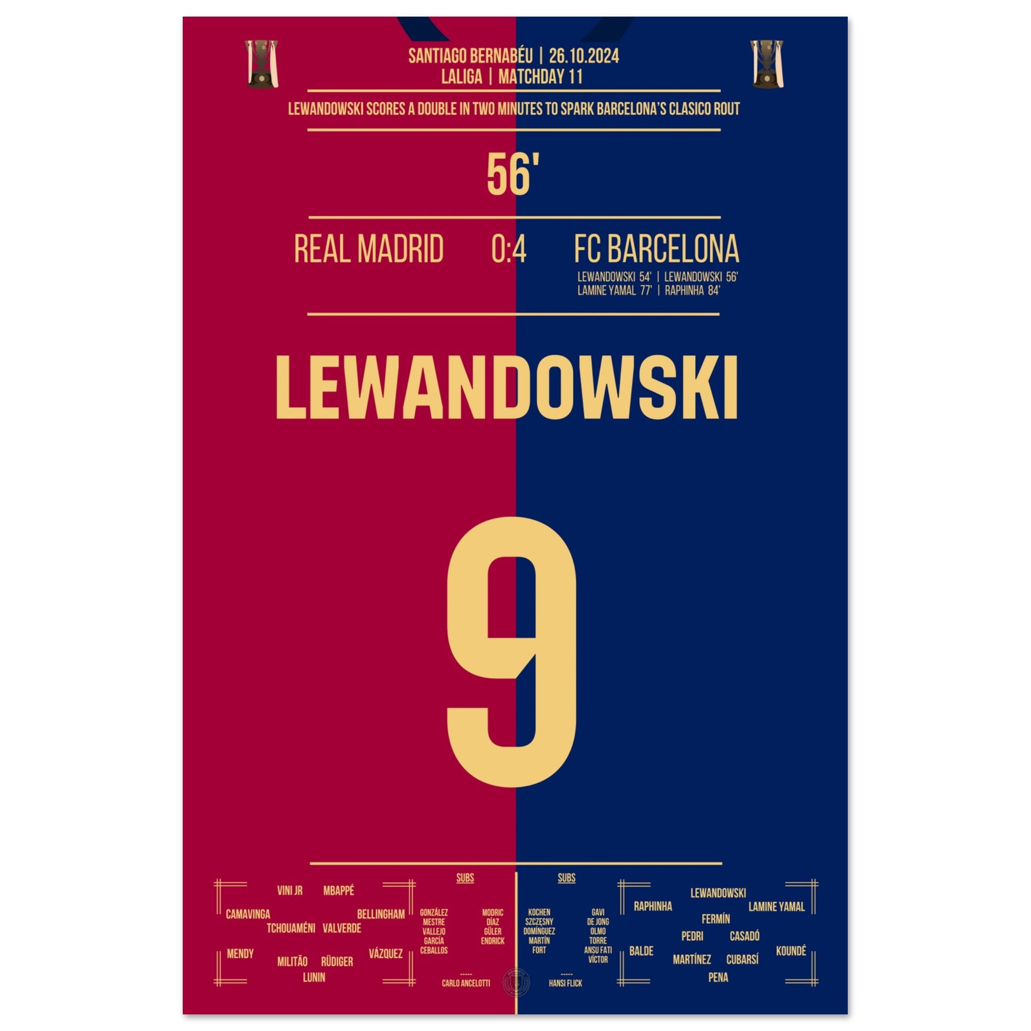 Lewandowski's double pack in 2 minutes in El Clasico 2024