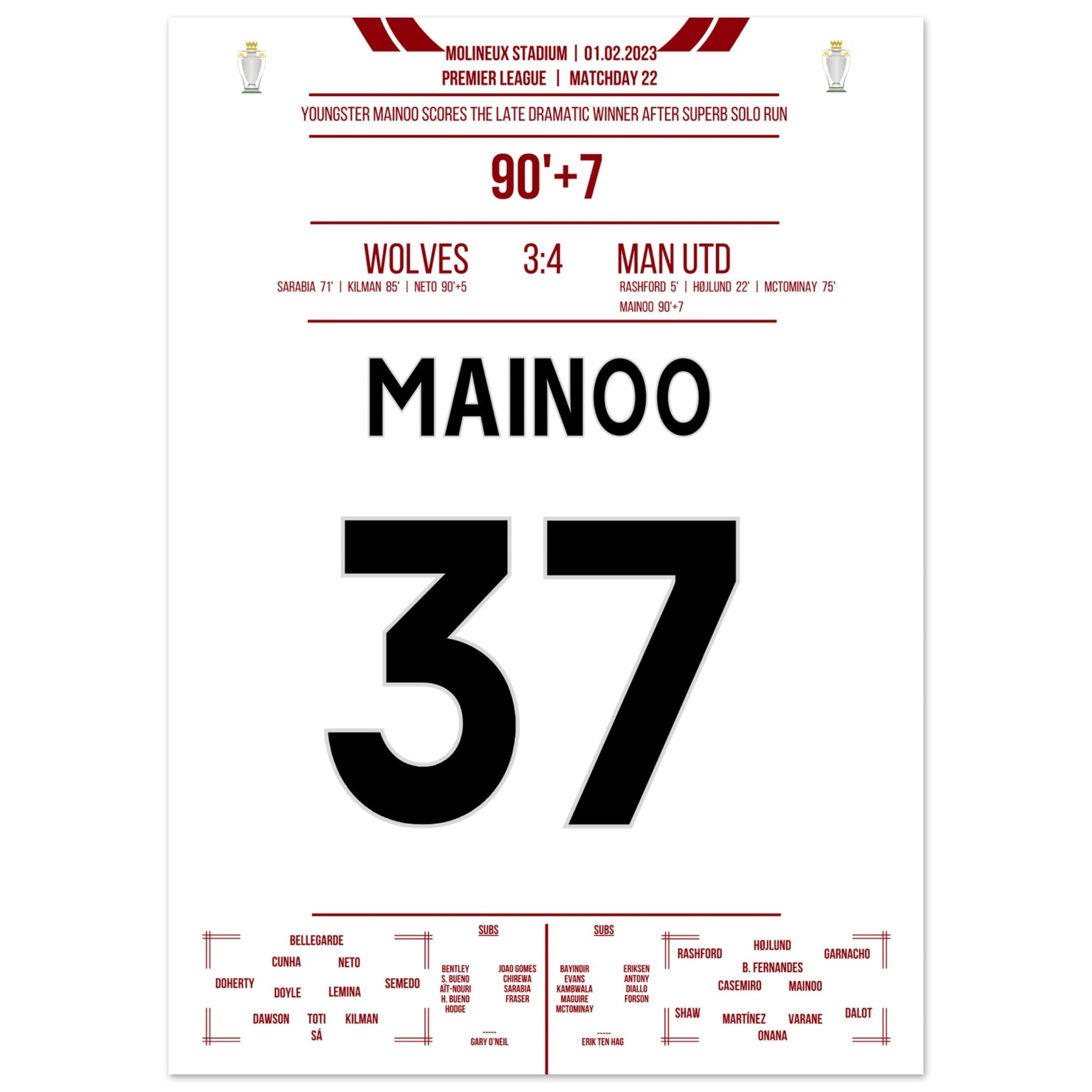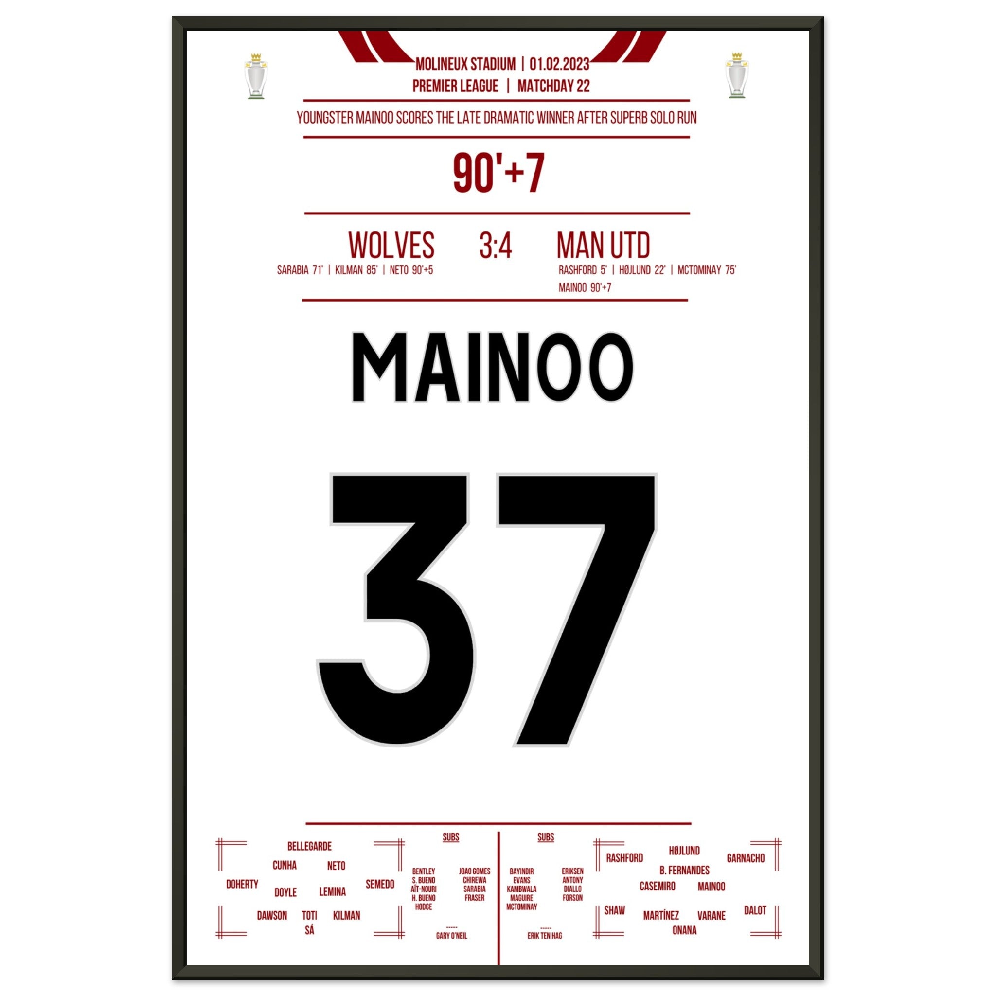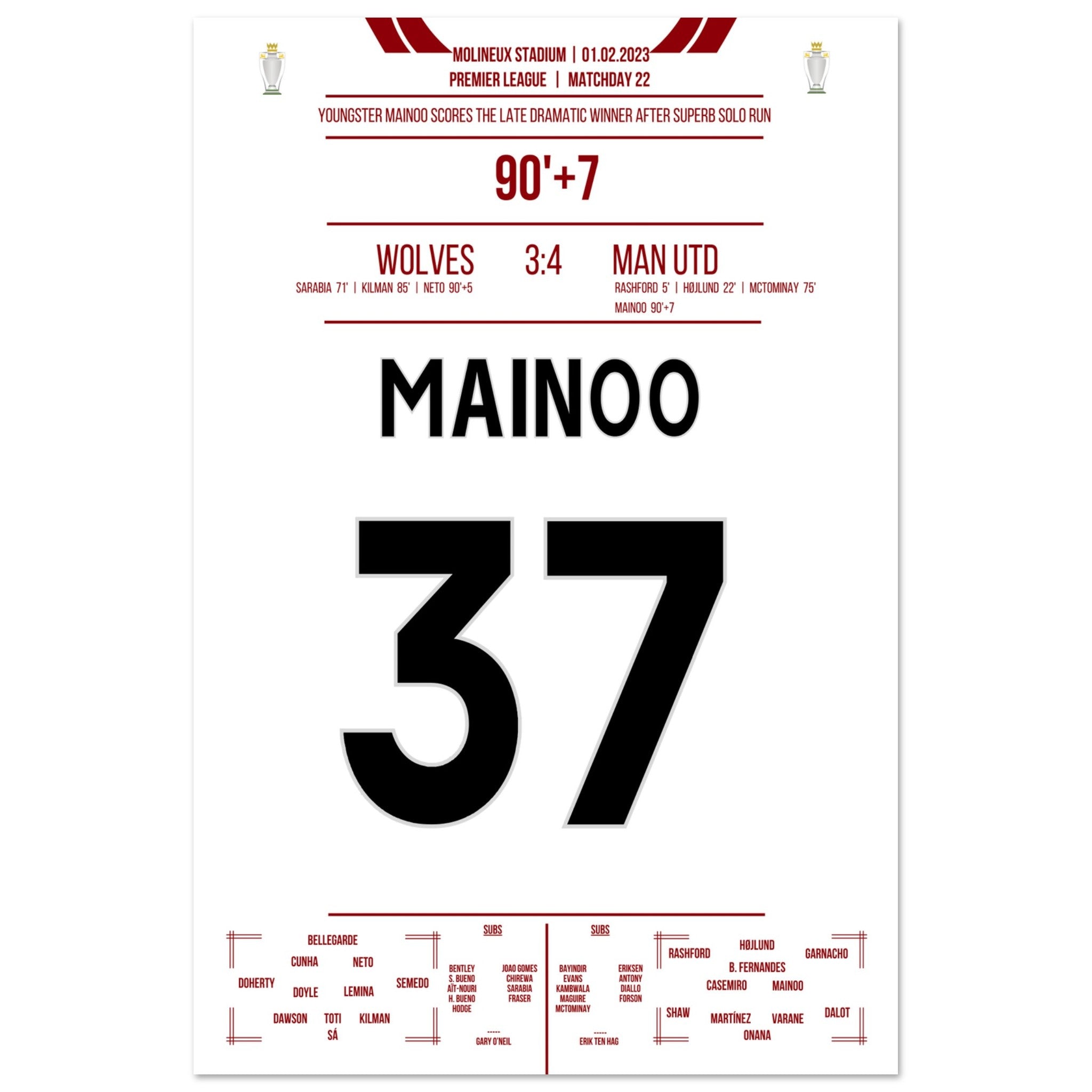 Mainoo's dramatic winning goal against the Wolves
