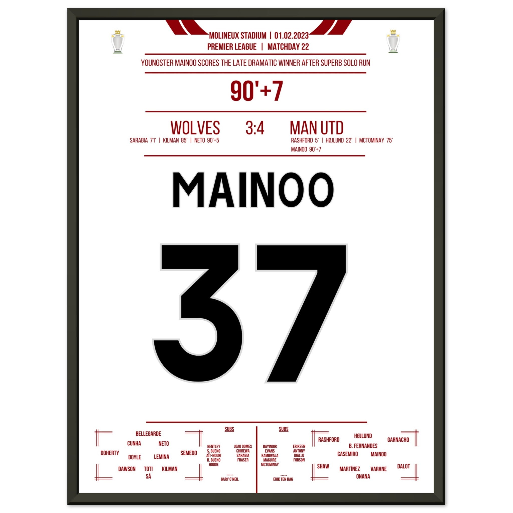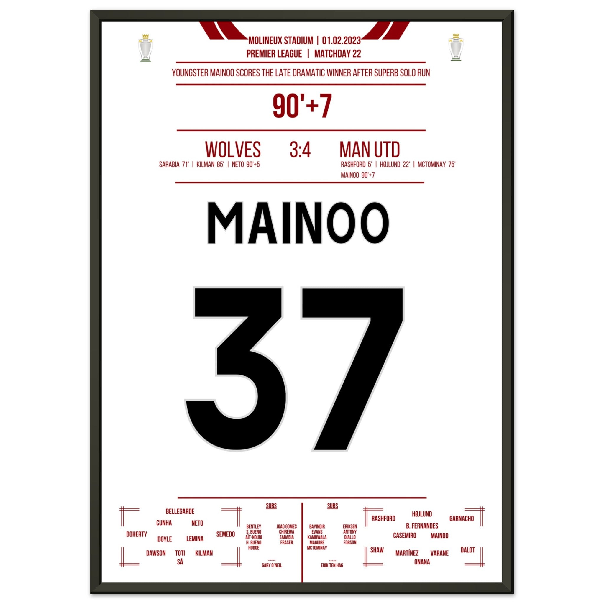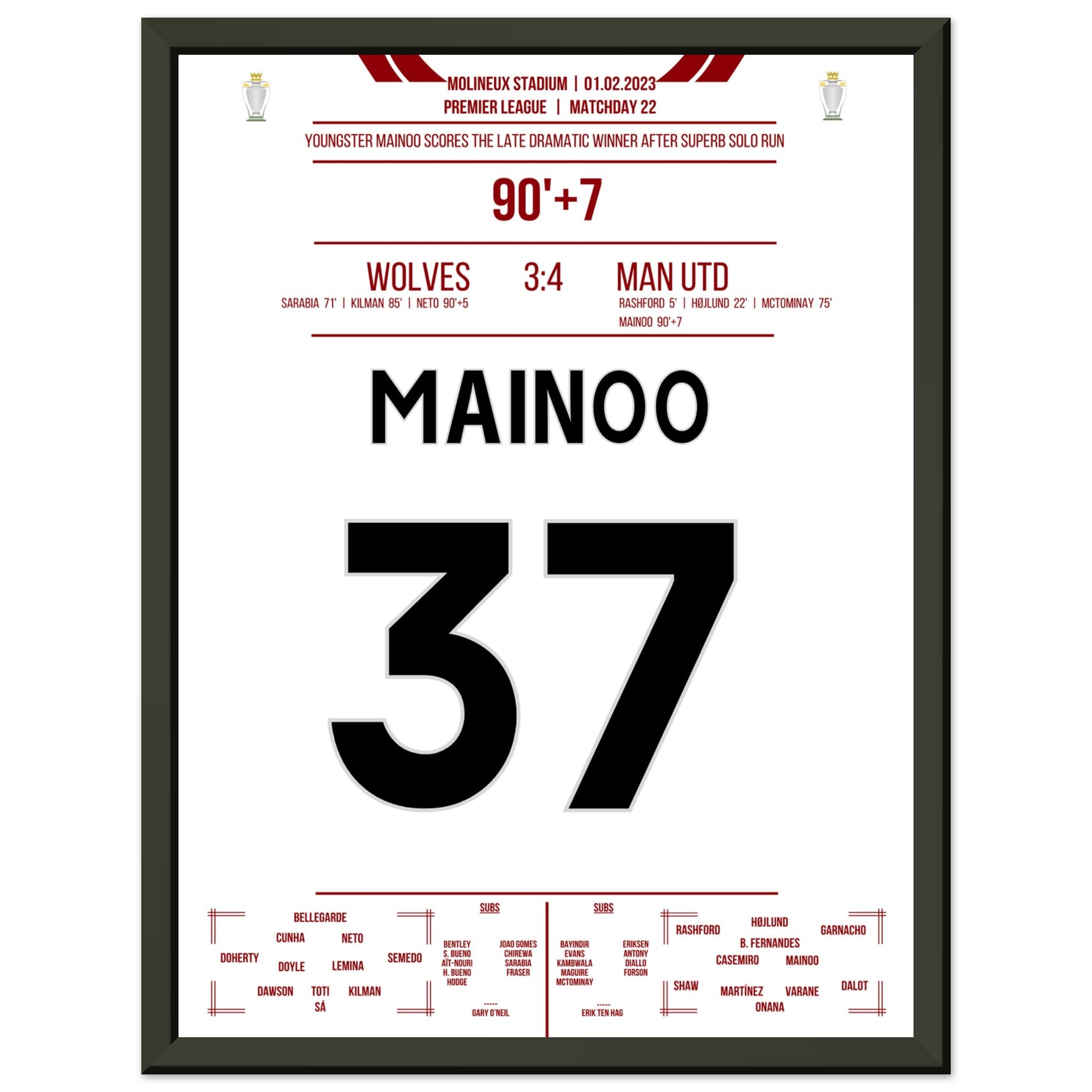 Mainoo's dramatic winning goal against the Wolves