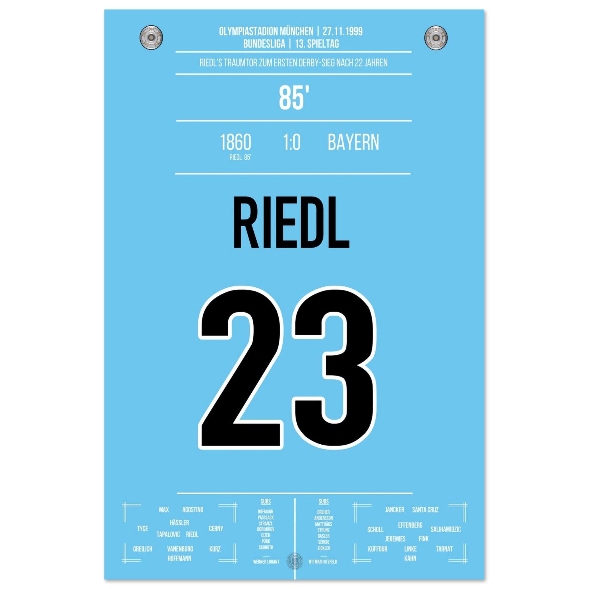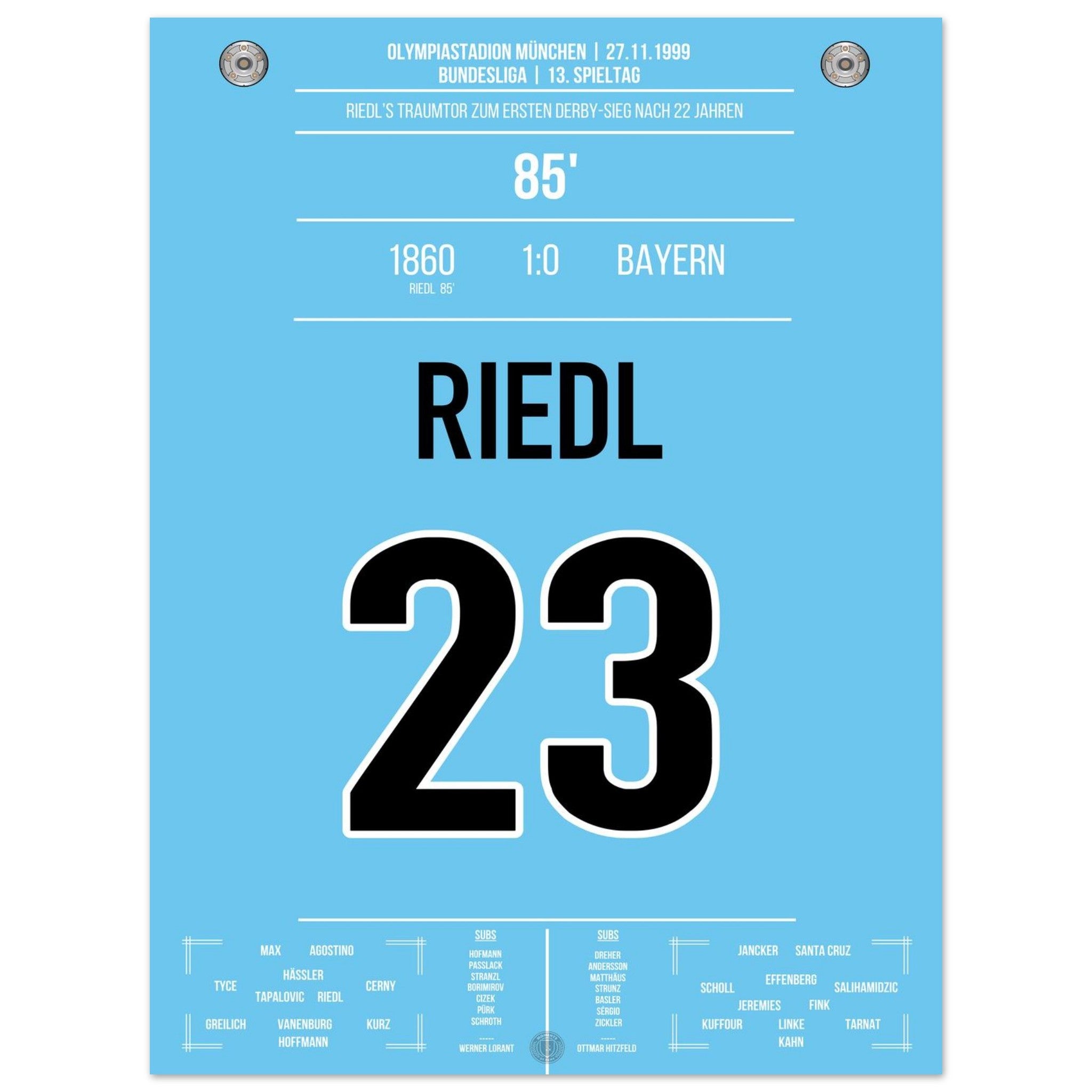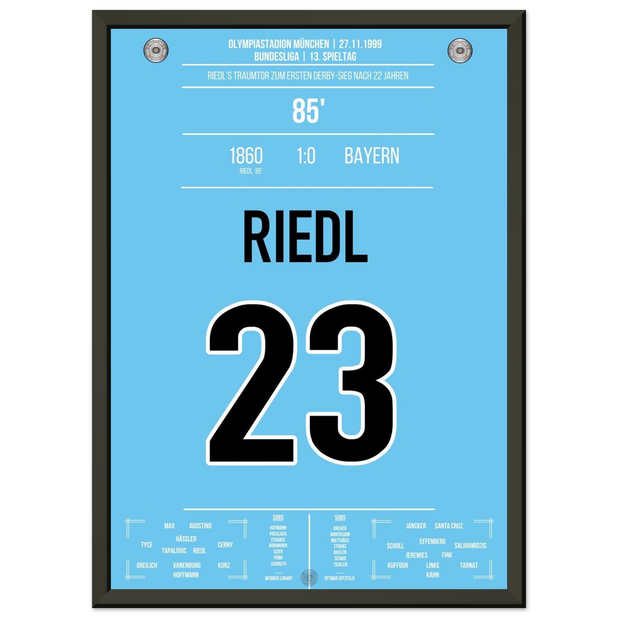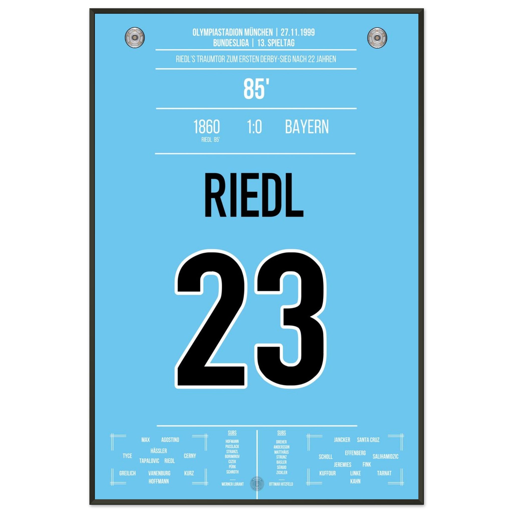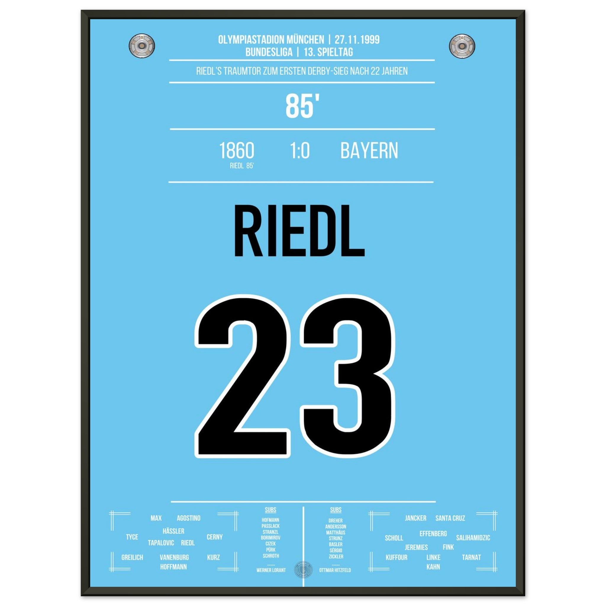 Riedl's winning goal for the Lions in the derby against <tc>Bayern</tc> 1999