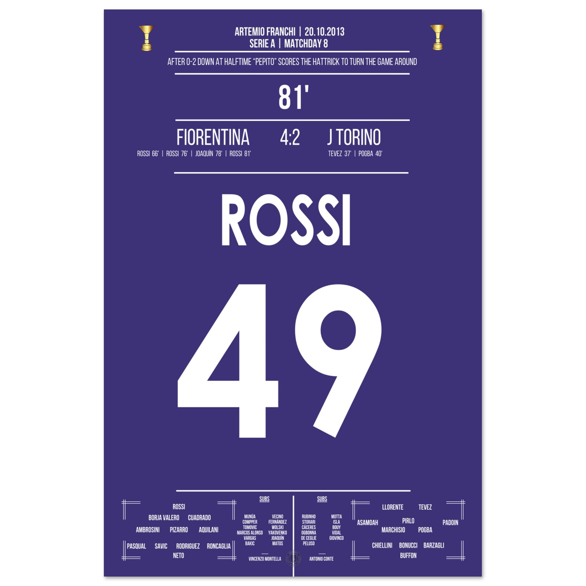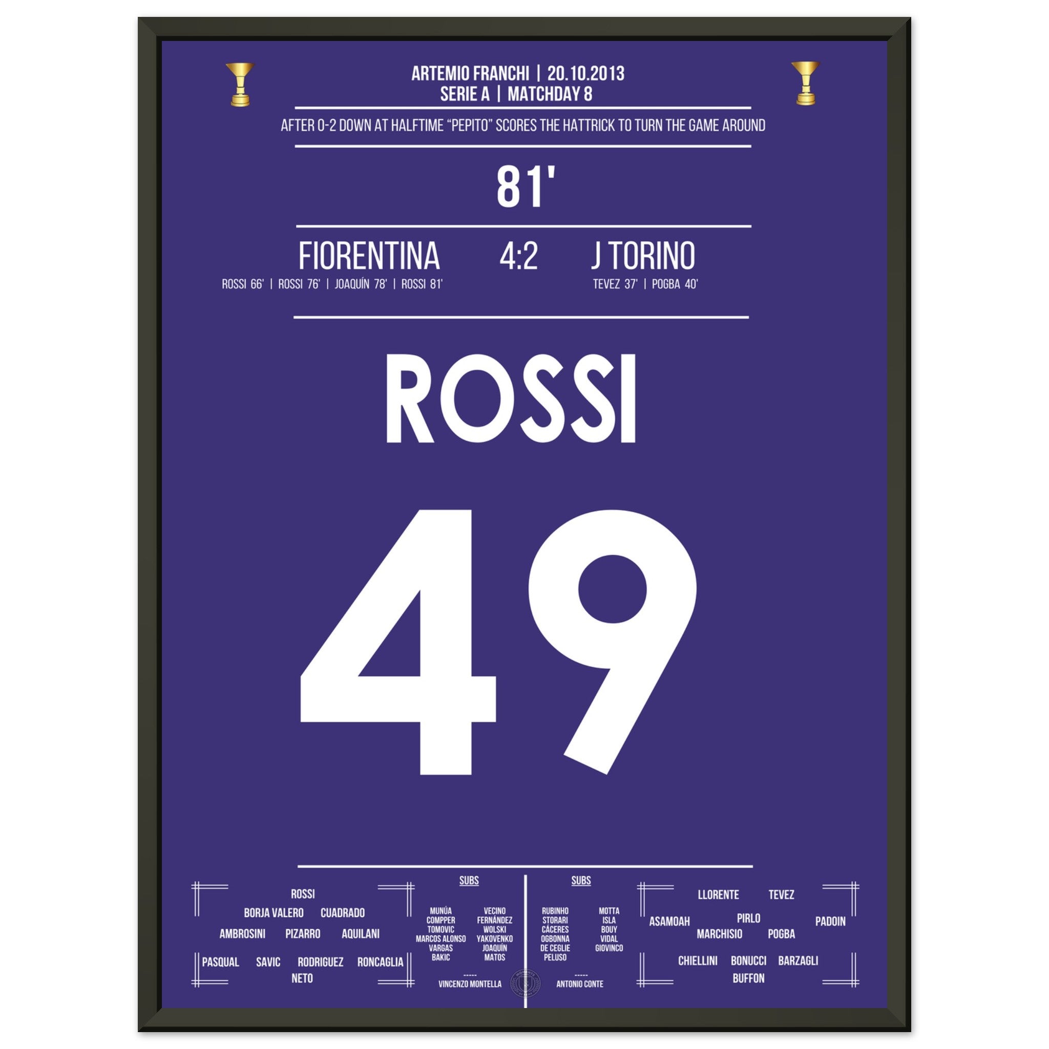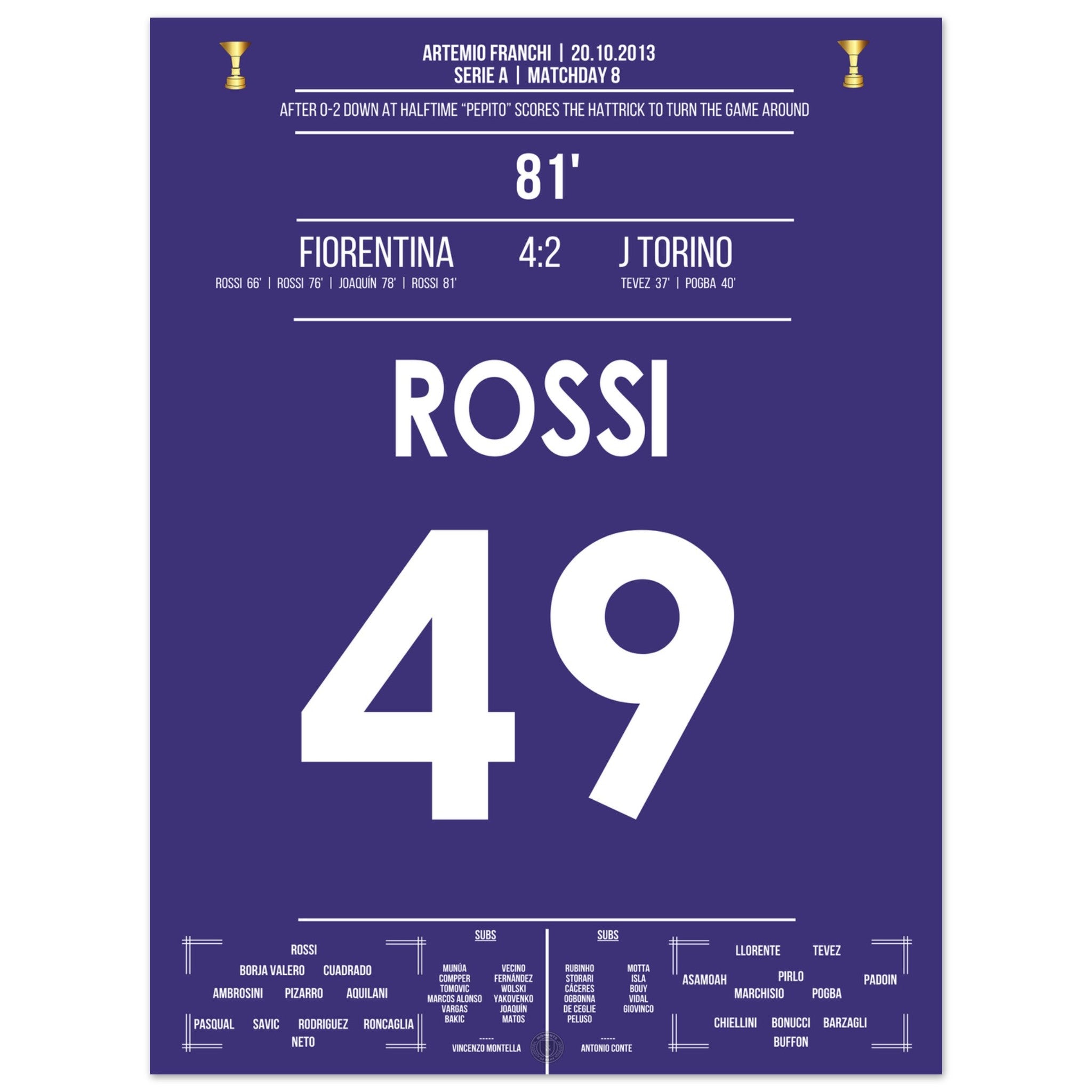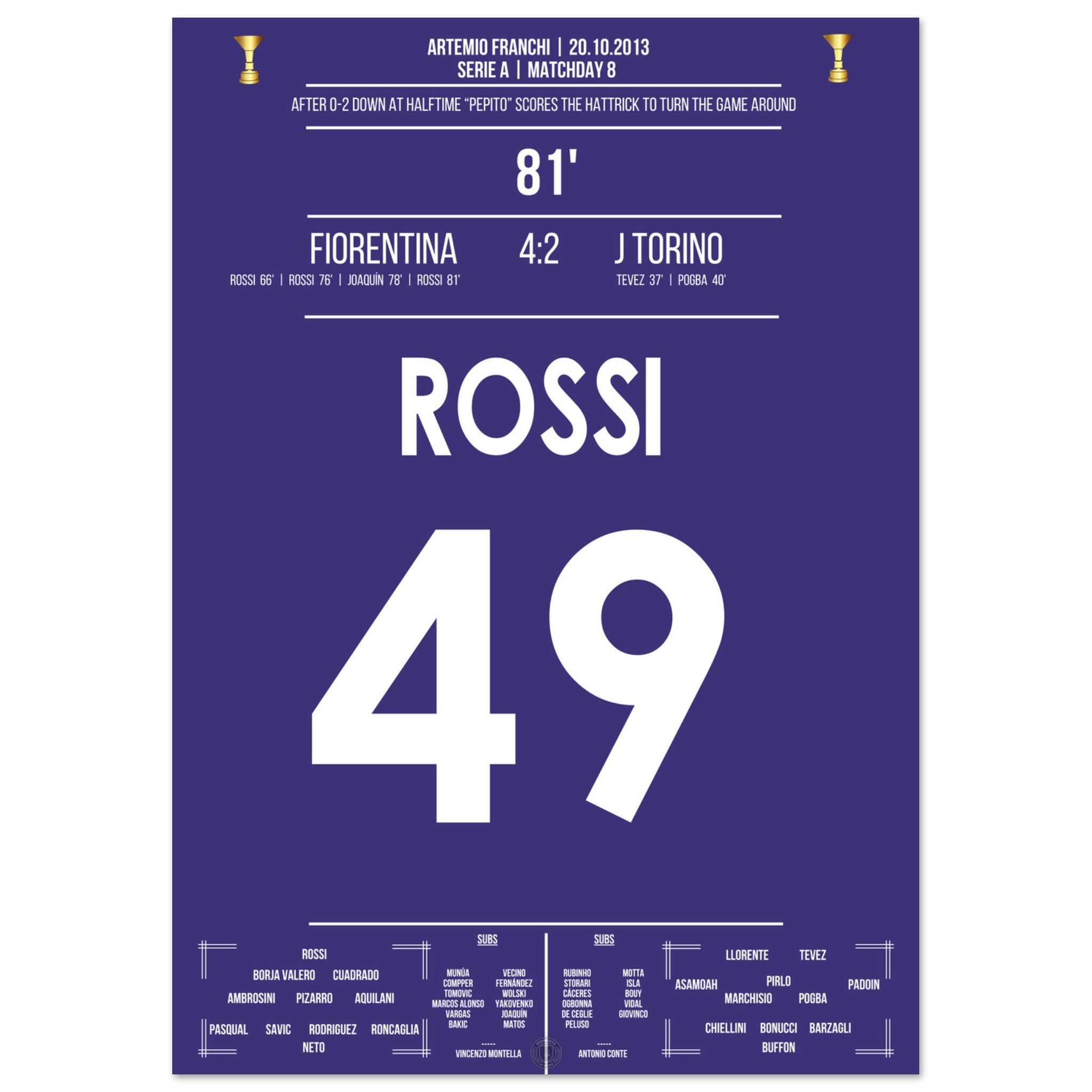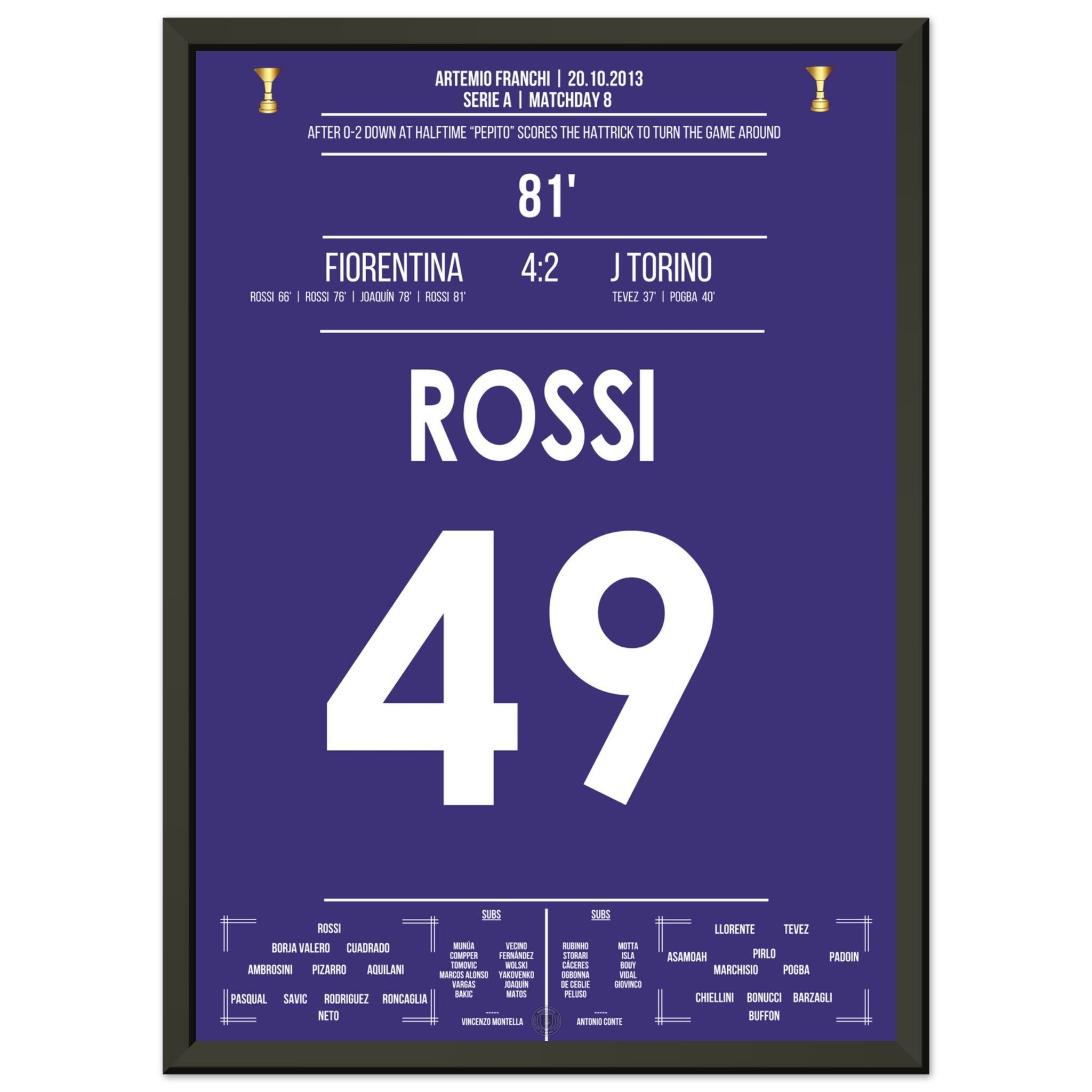 Rossi turns the game around with a hat-trick against Turin in 2013.