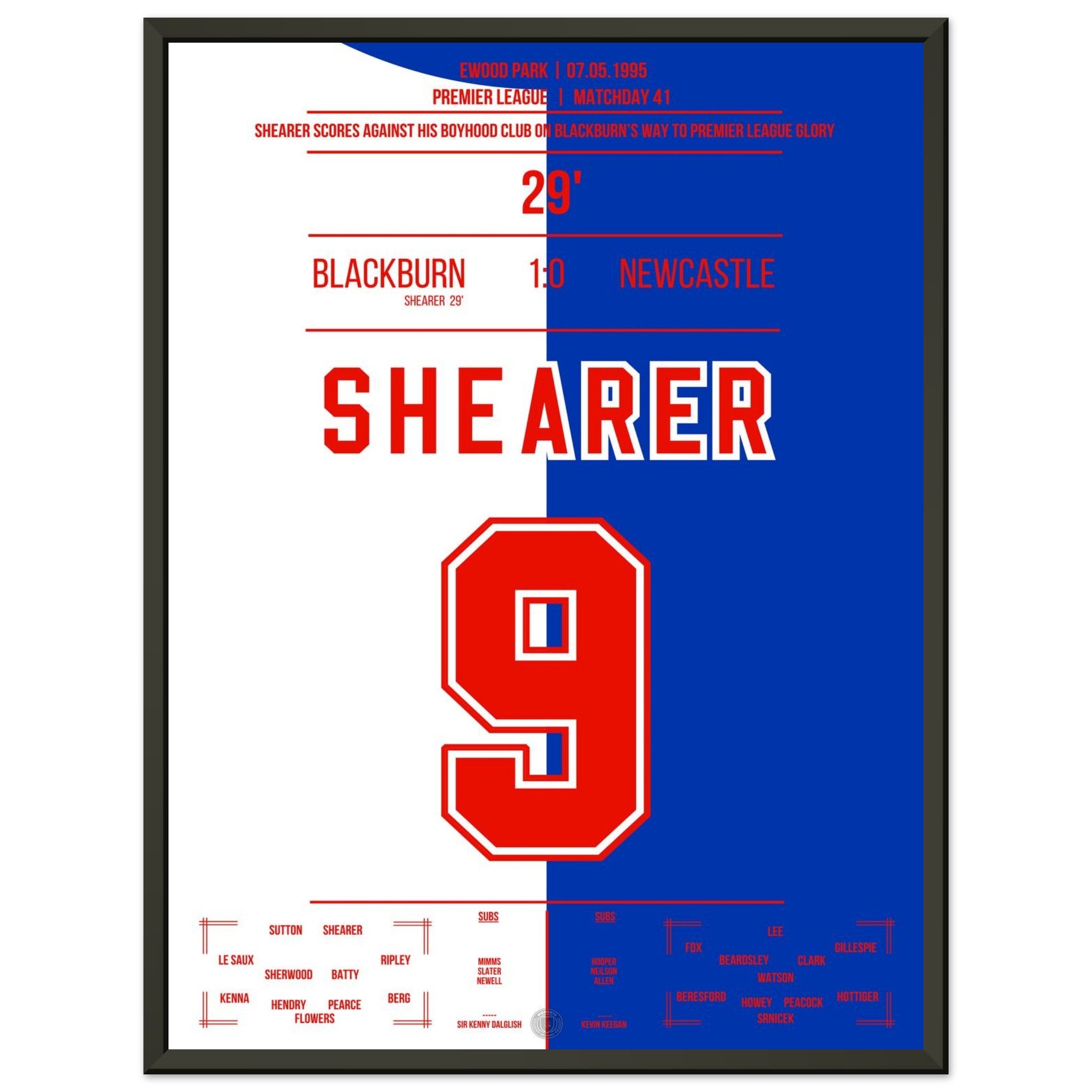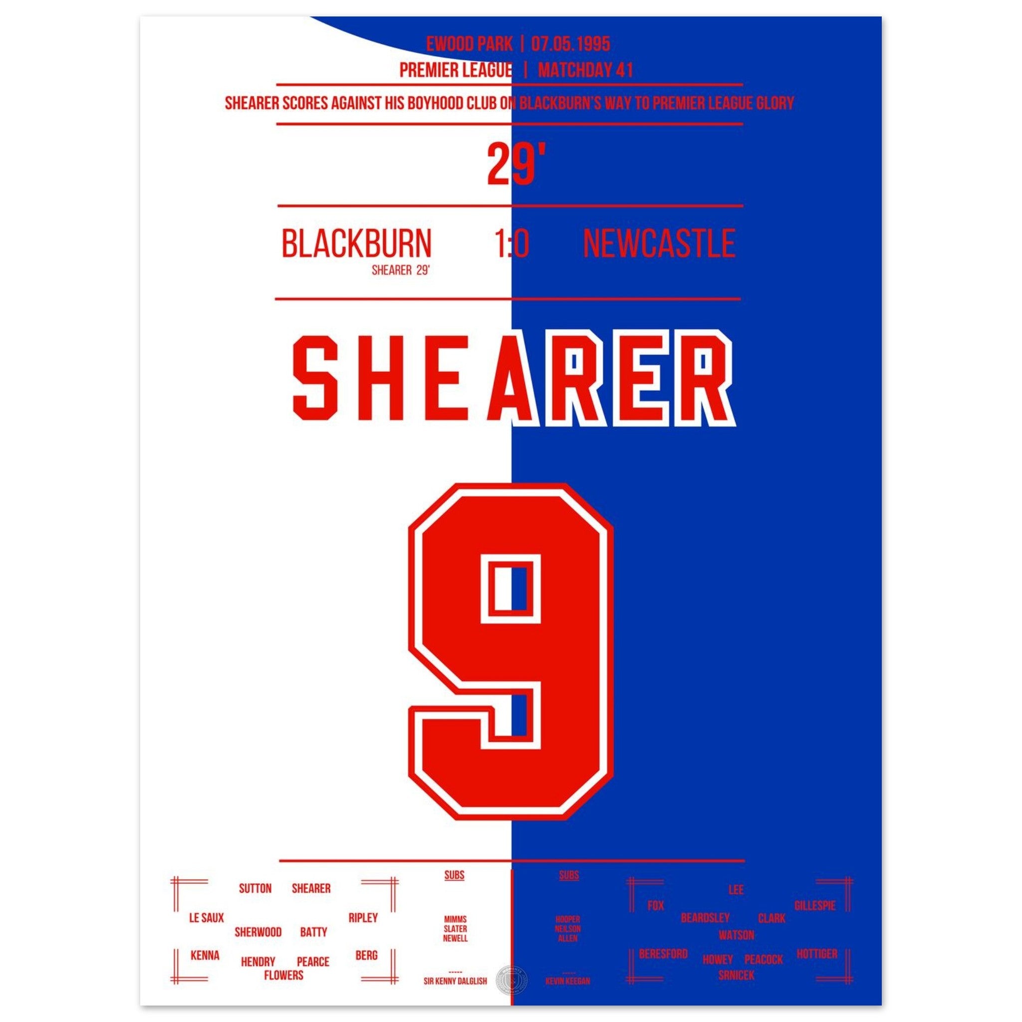 Shearer's winning goal against Newcastle leads Blackburn towards the PL title.