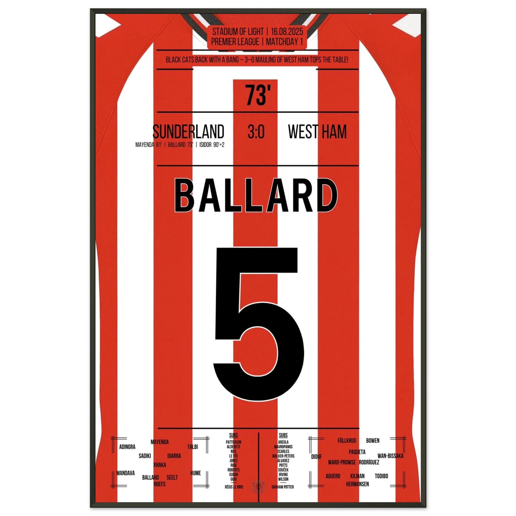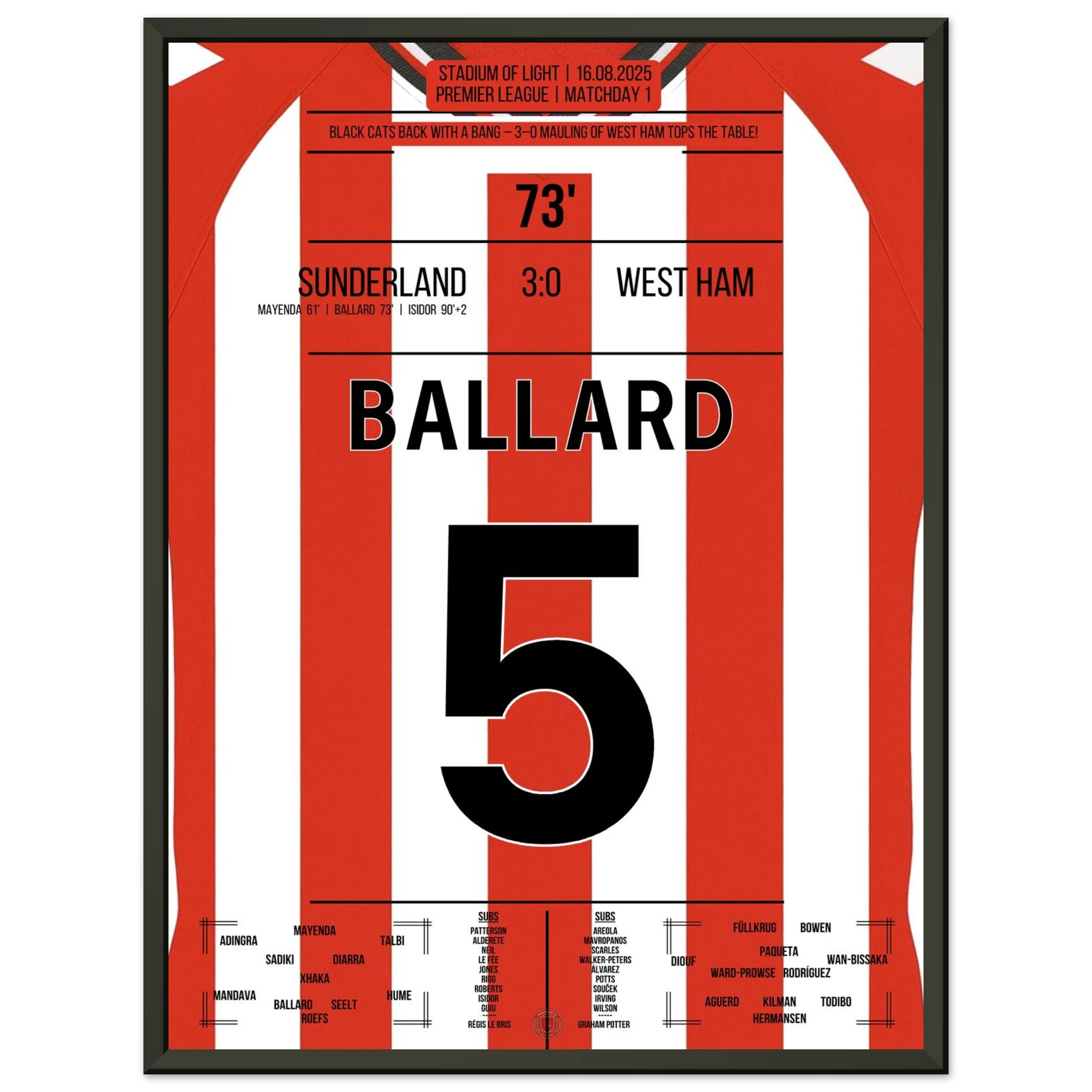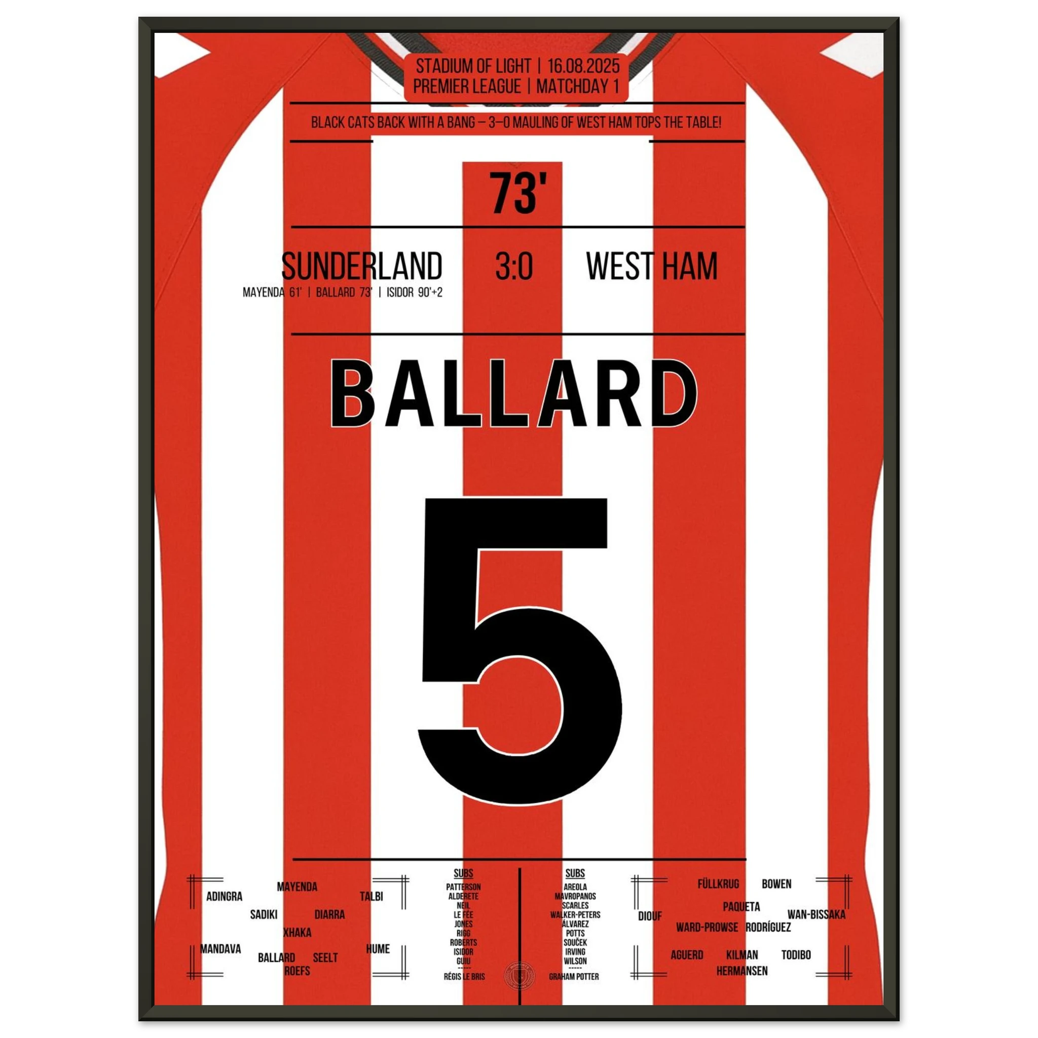 16. August 2025 Sunderland - West Ham: