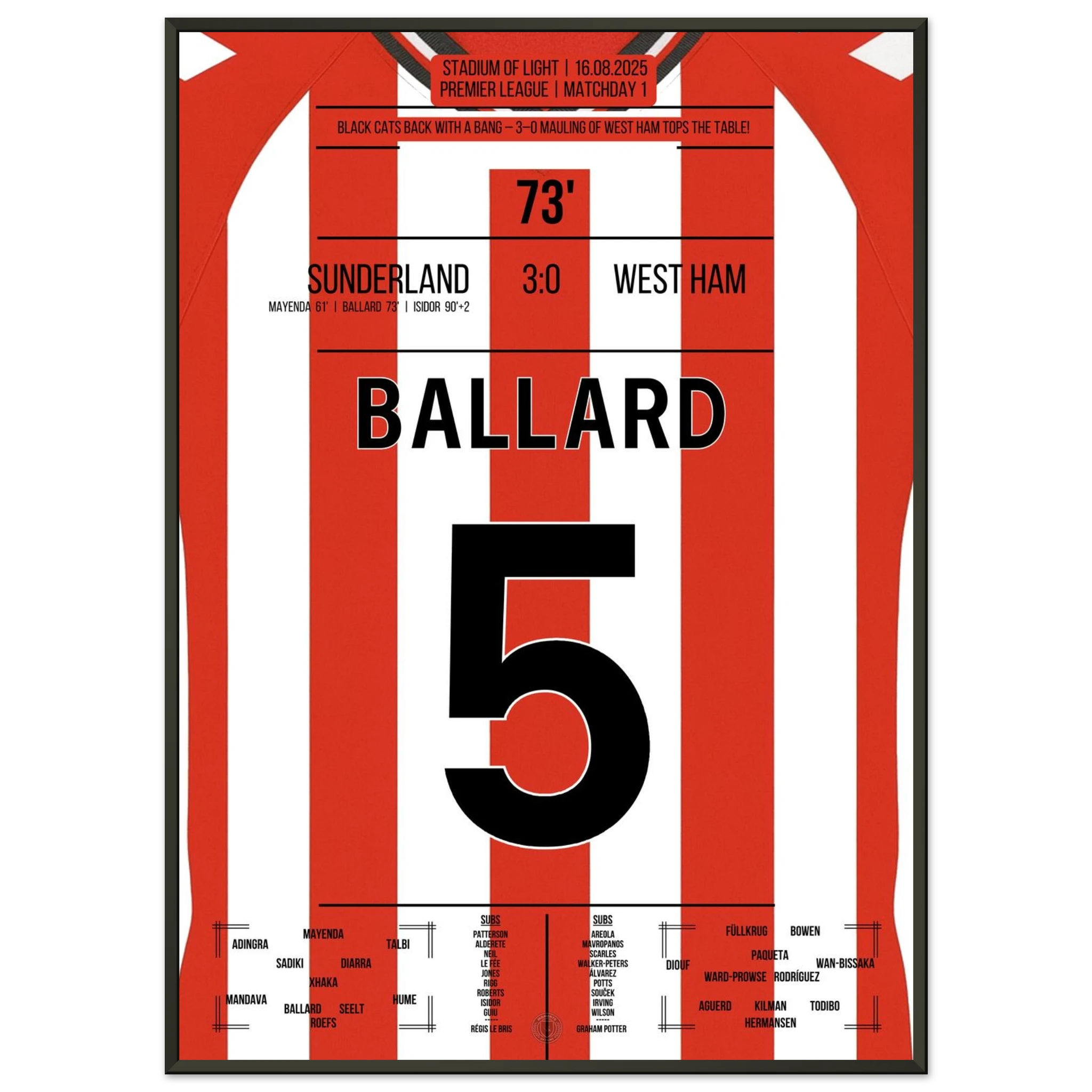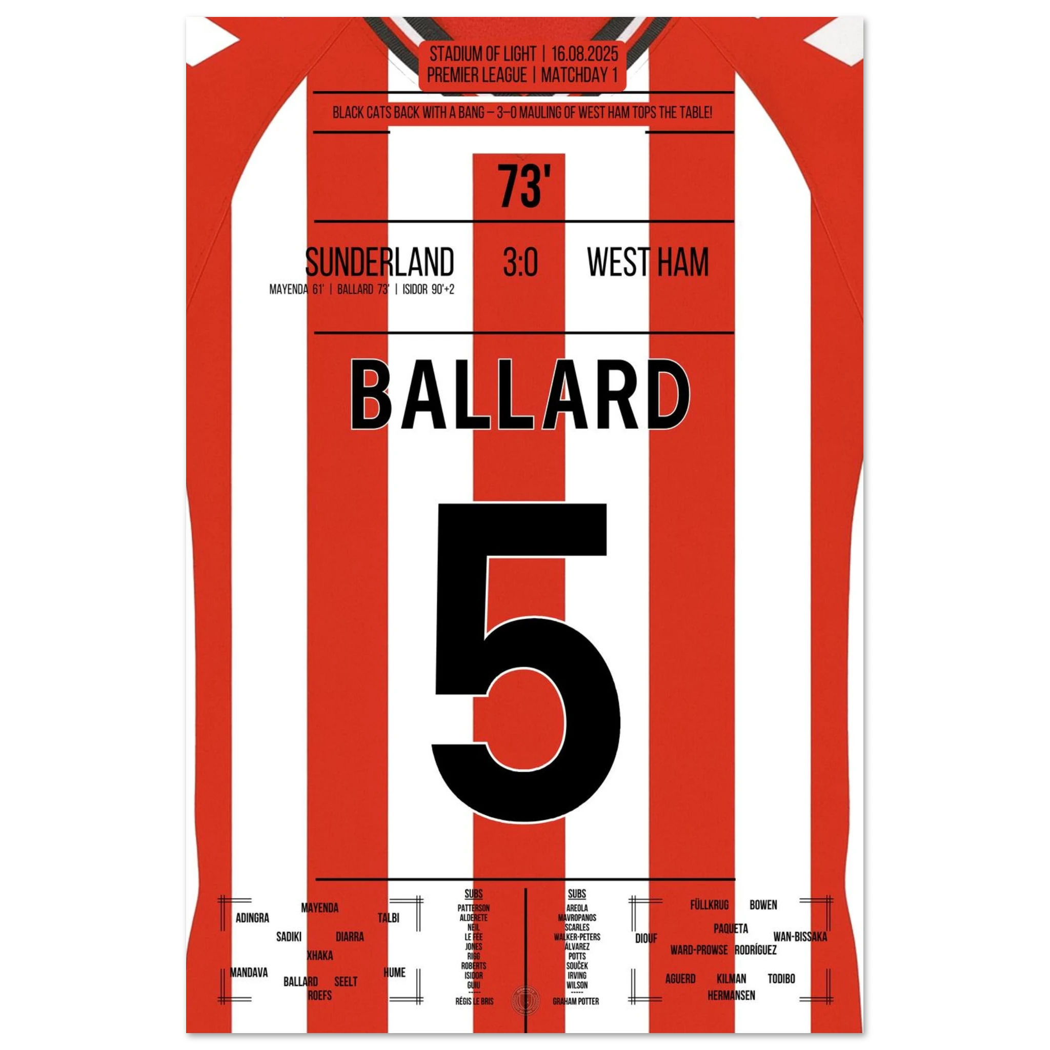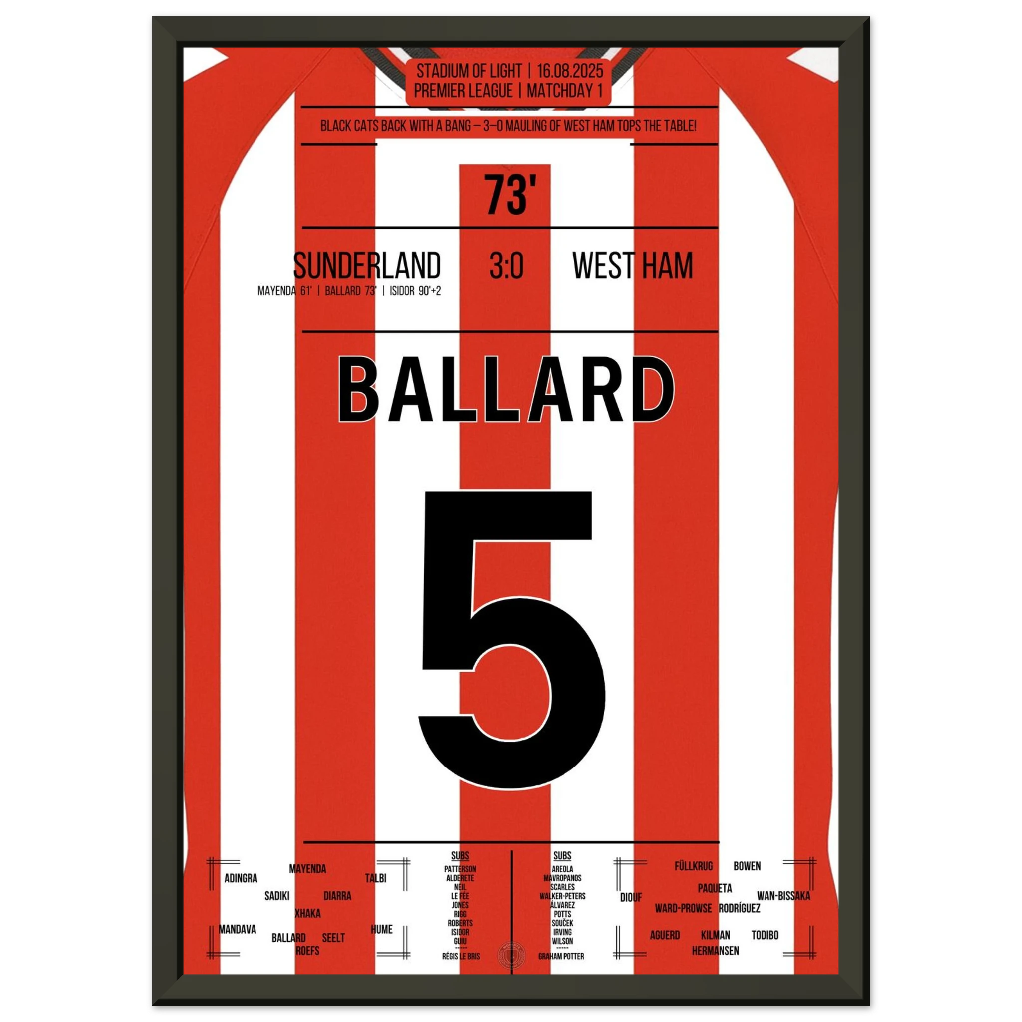 16. August 2025 Sunderland - West Ham: