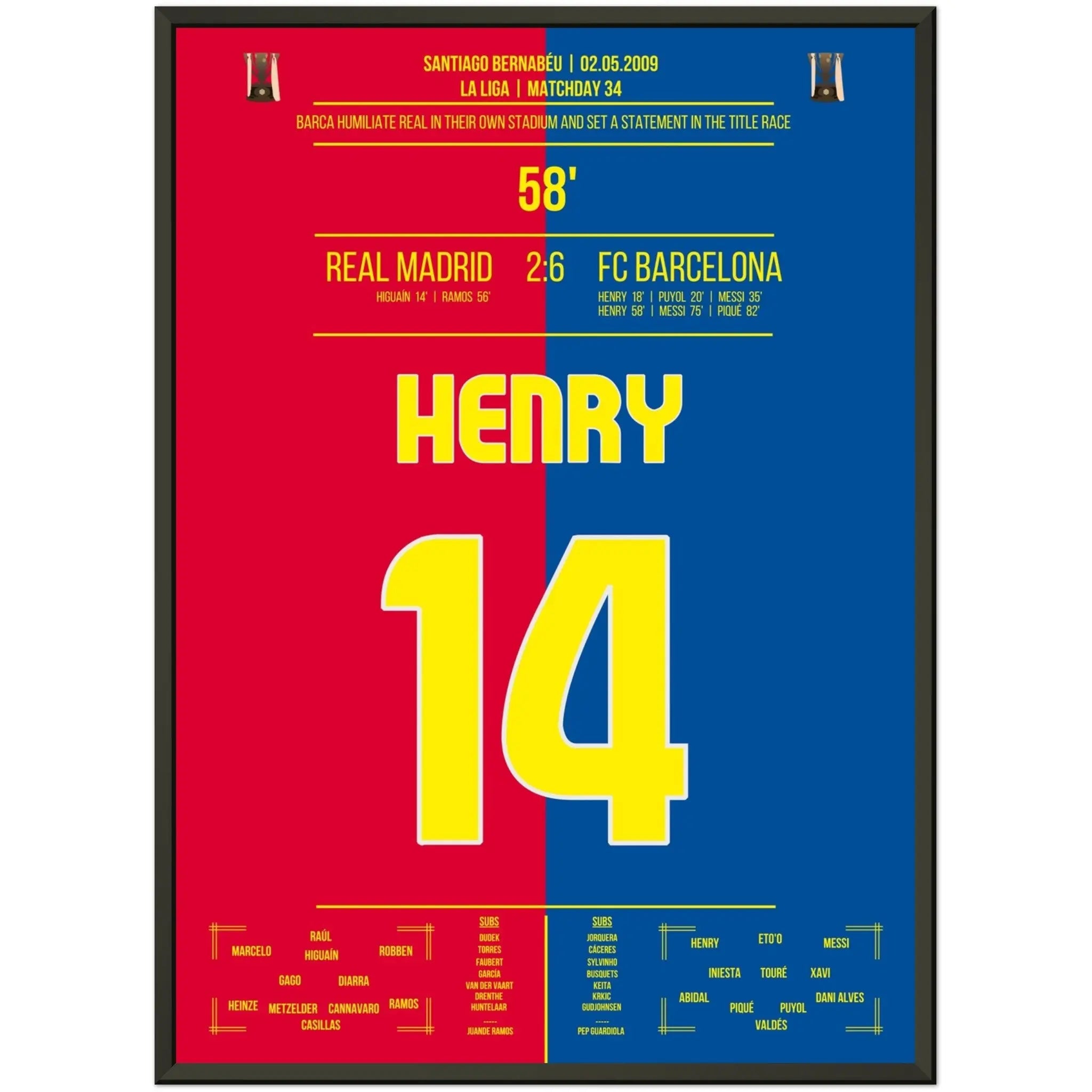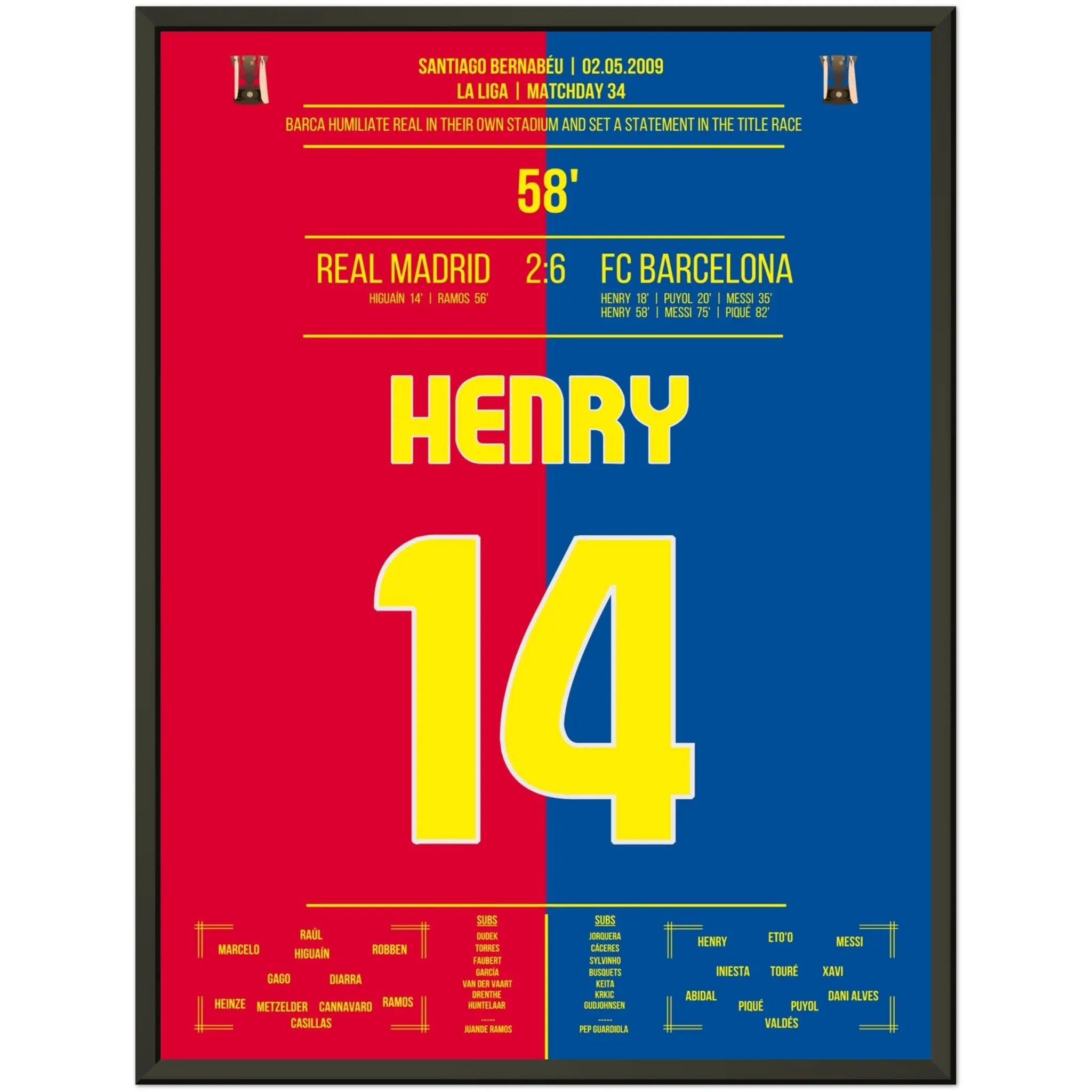 Vous pouvez être assuré que chaque affiche et chaque cadre sont expédiés dans un emballage solide pour garantir qu'ils arrivent en parfait état. C'est le complément parfait à la collection de tout fan de football ou le cadeau parfait pour le fan de football inconditionnel de votre cercle d'amis ou de votre famille.