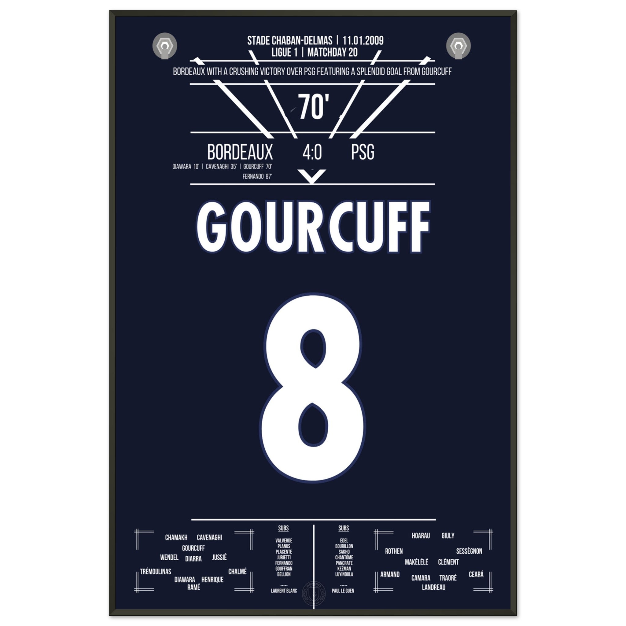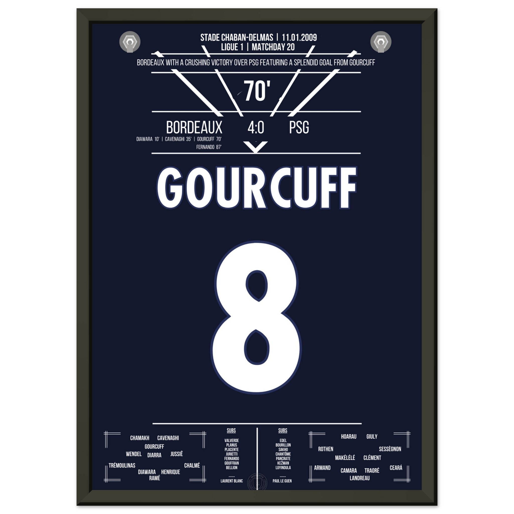 Vous pouvez être assuré que chaque affiche et chaque cadre sont expédiés dans un emballage solide pour garantir qu'ils arrivent en parfait état. C'est le complément parfait à la collection de tout fan de football ou le cadeau parfait pour le fan de football inconditionnel de votre cercle d'amis ou de votre famille.