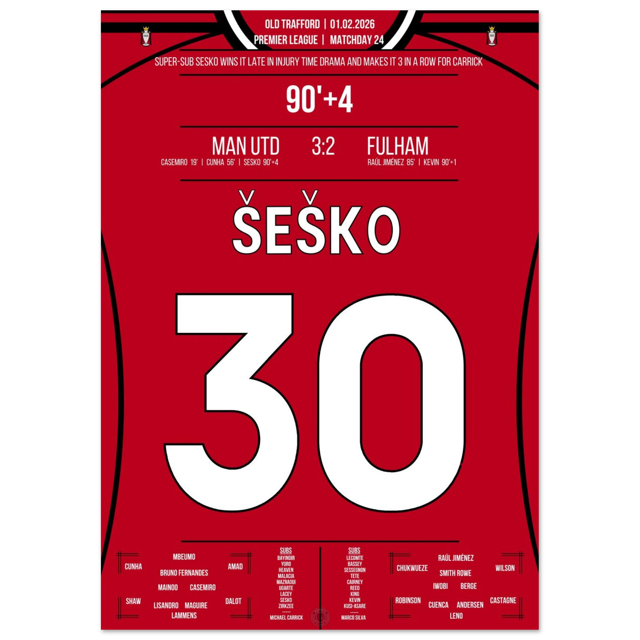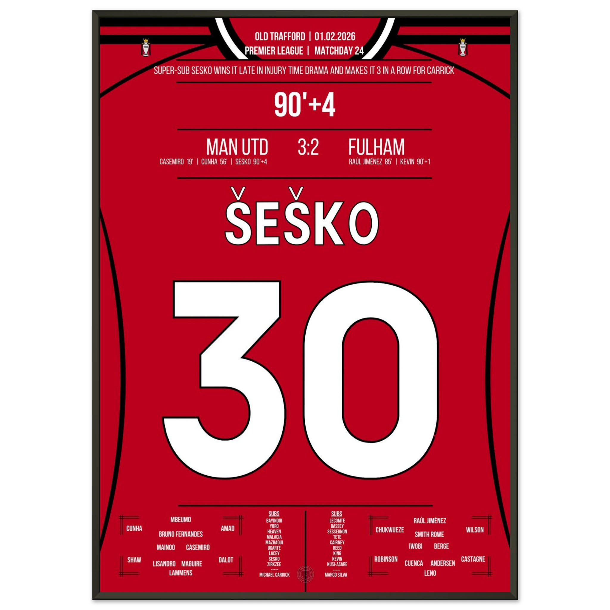 Dieses Poster hält den Moment fest, als Šeško zum Helden wurde und United in letzter Sekunde den Sieg schenkte – Drama, Herzschlag, Geschichte.