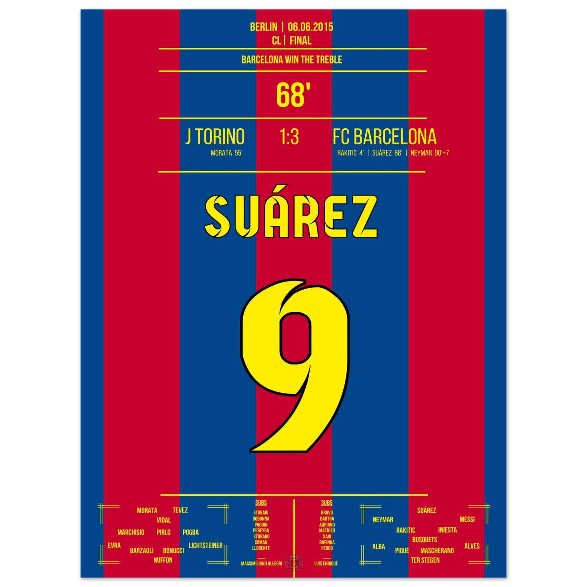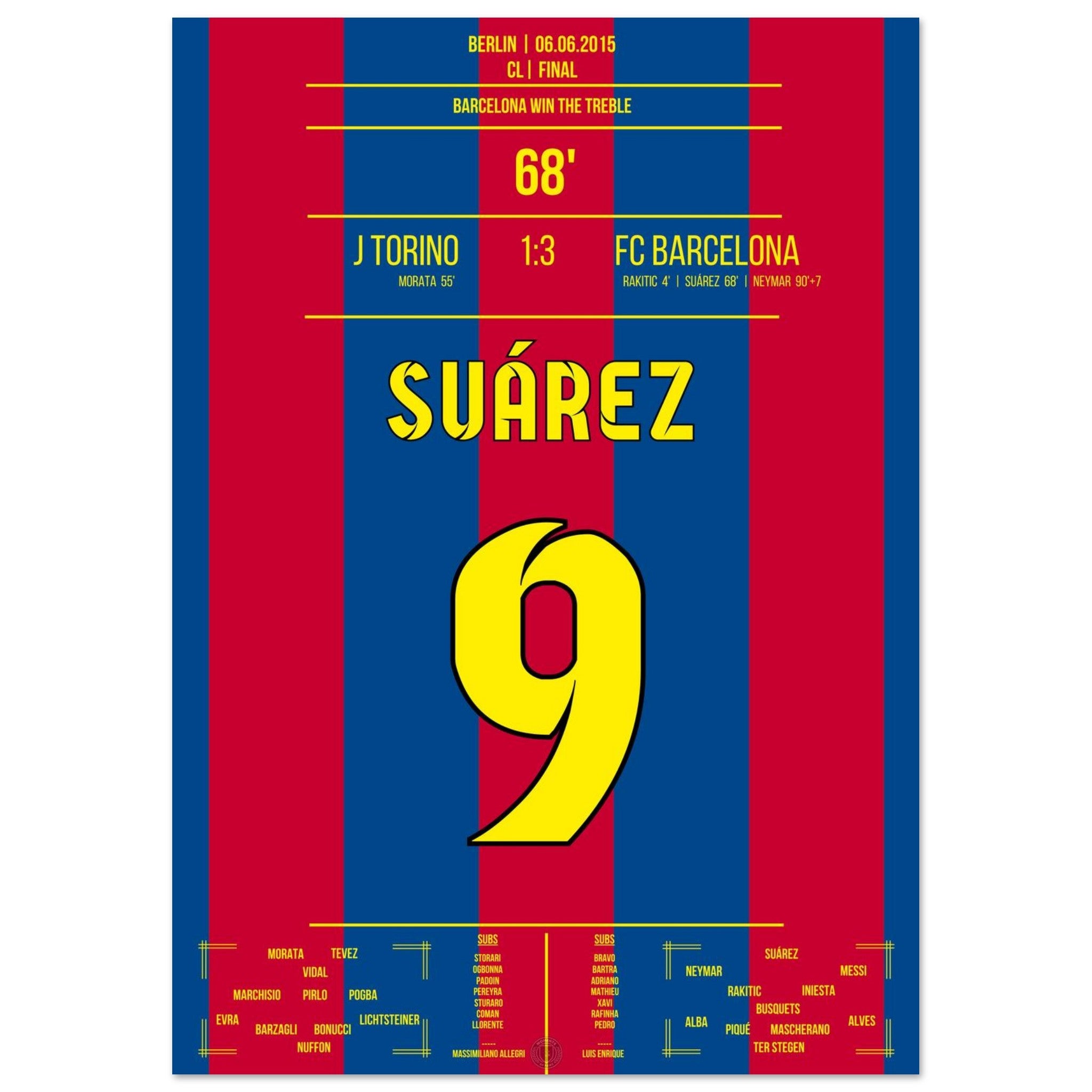 Suarez marque en finale 2015 et le Barça remporte le triplé.