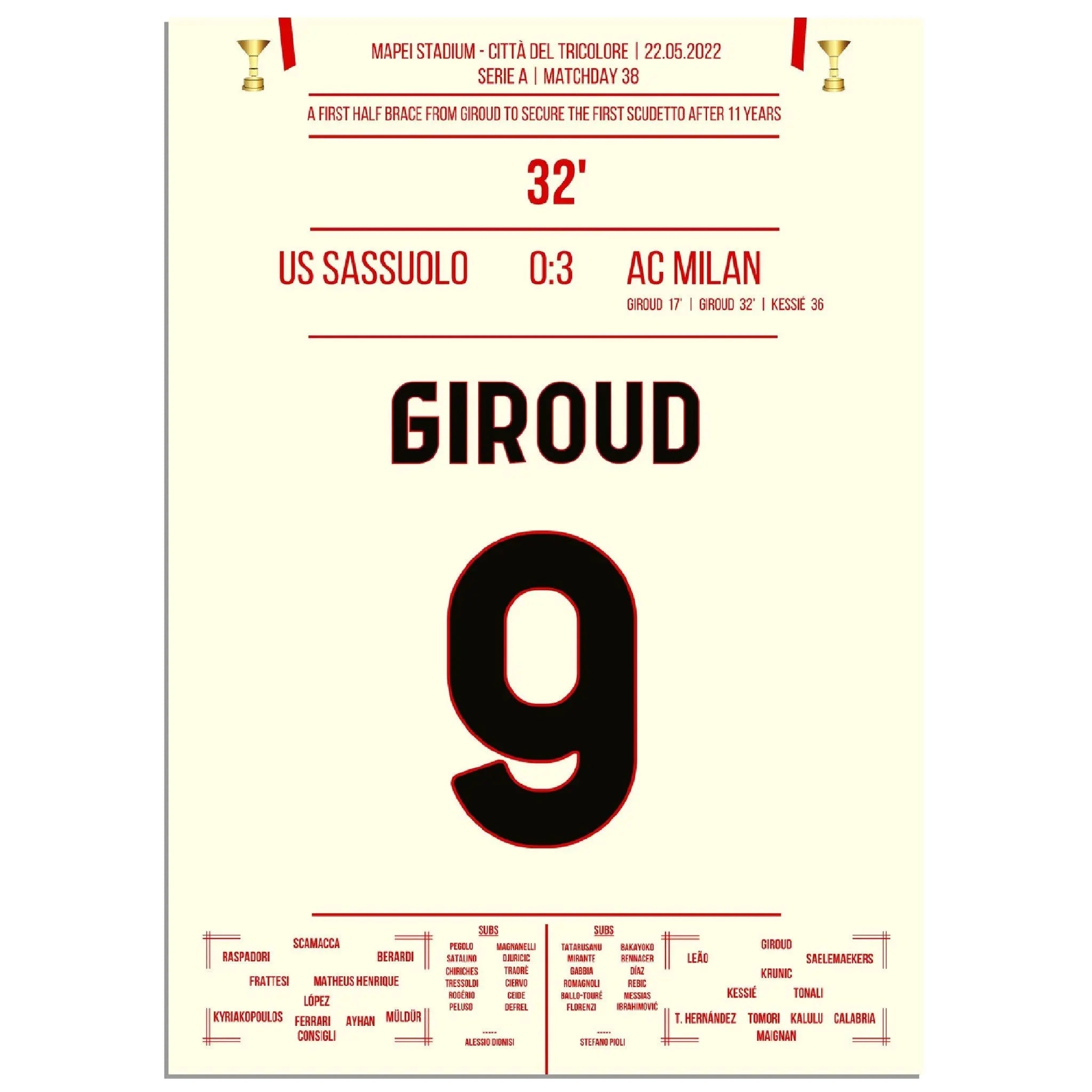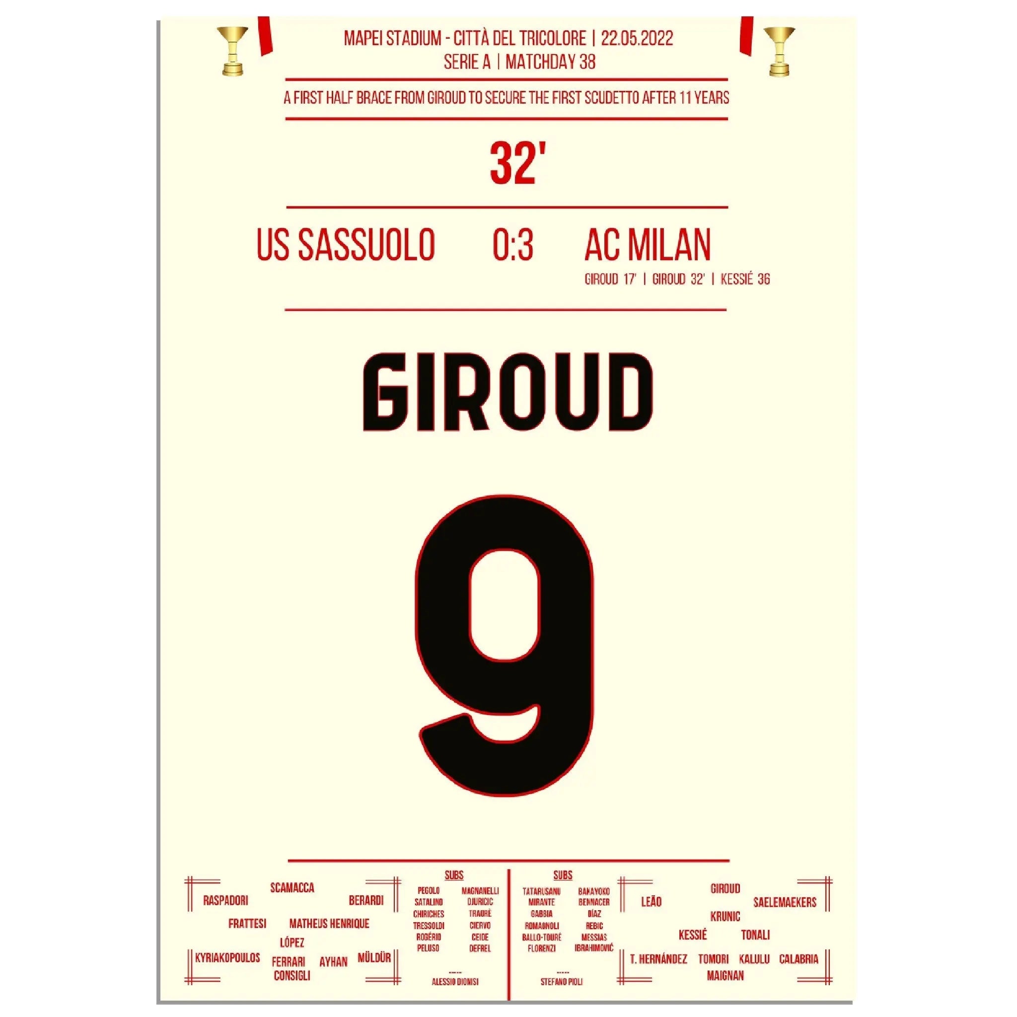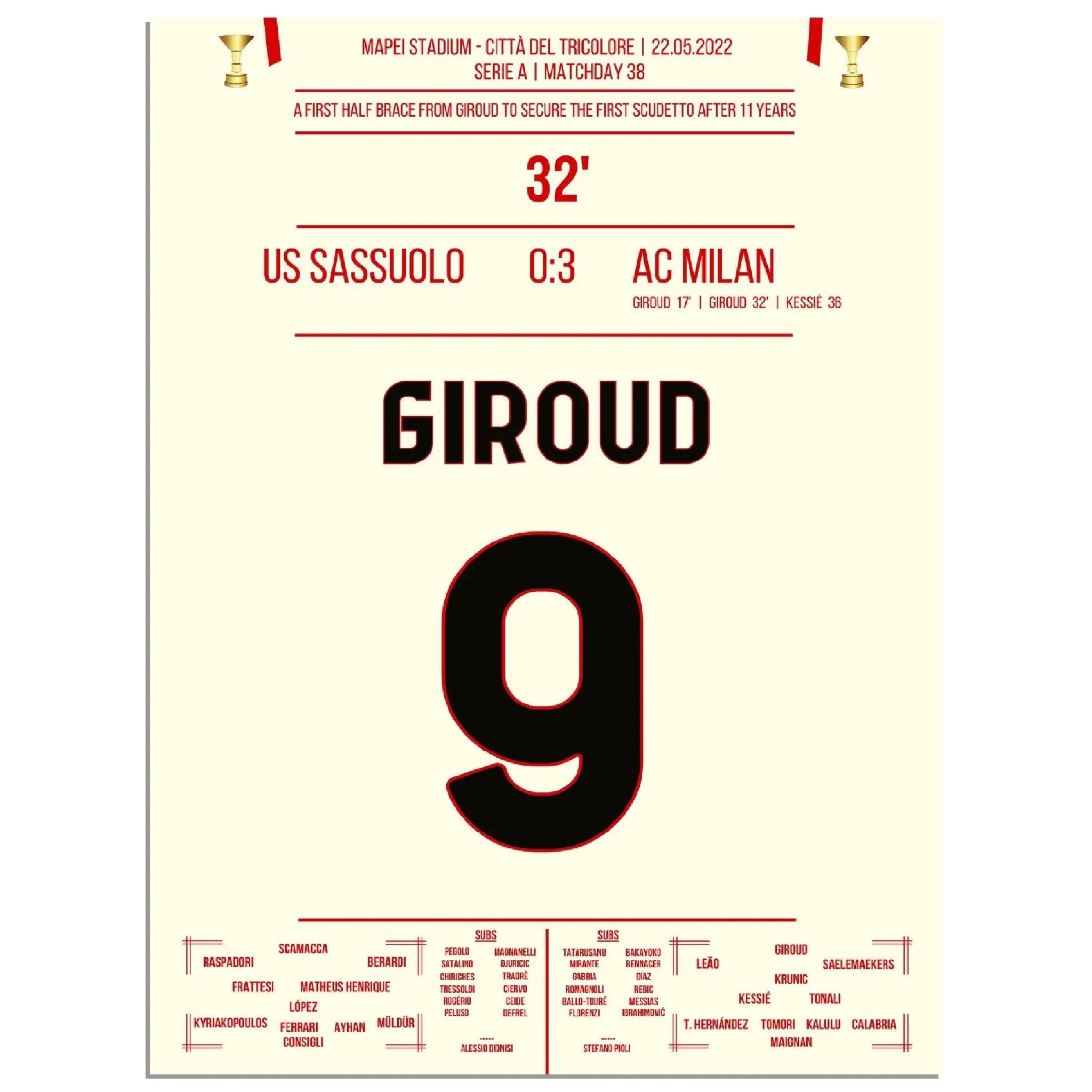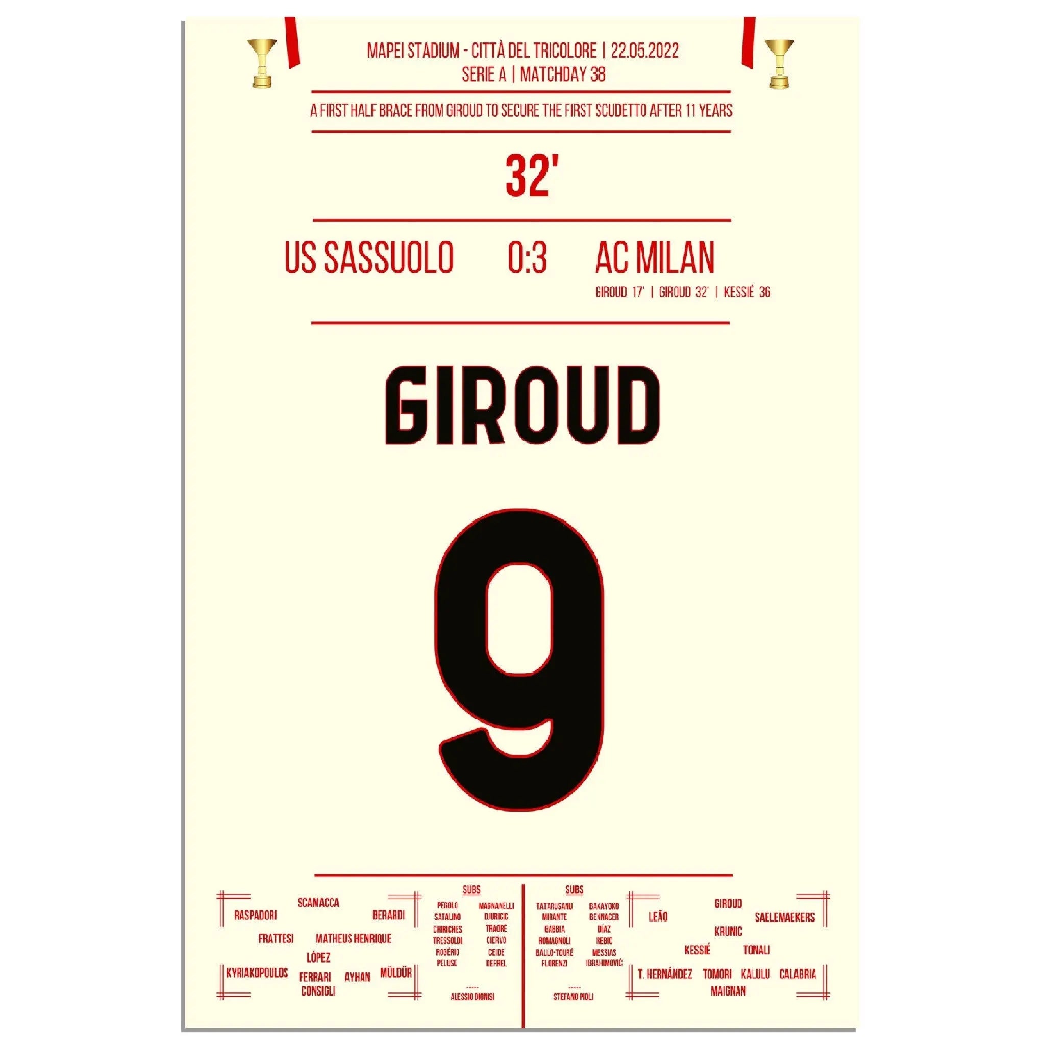 Giroud double contre Sassuolo - Milan remporte le premier Scudetto après 11 ans