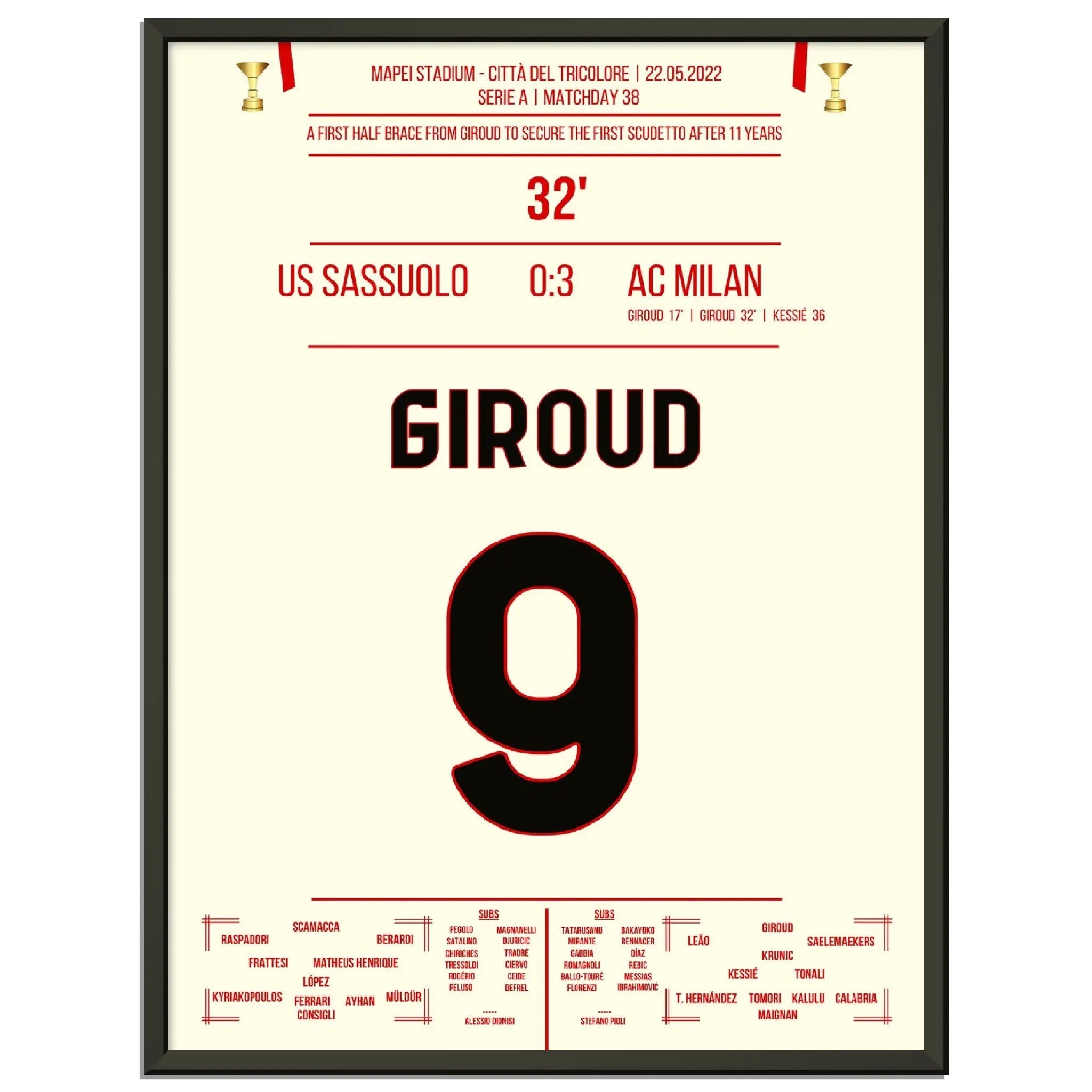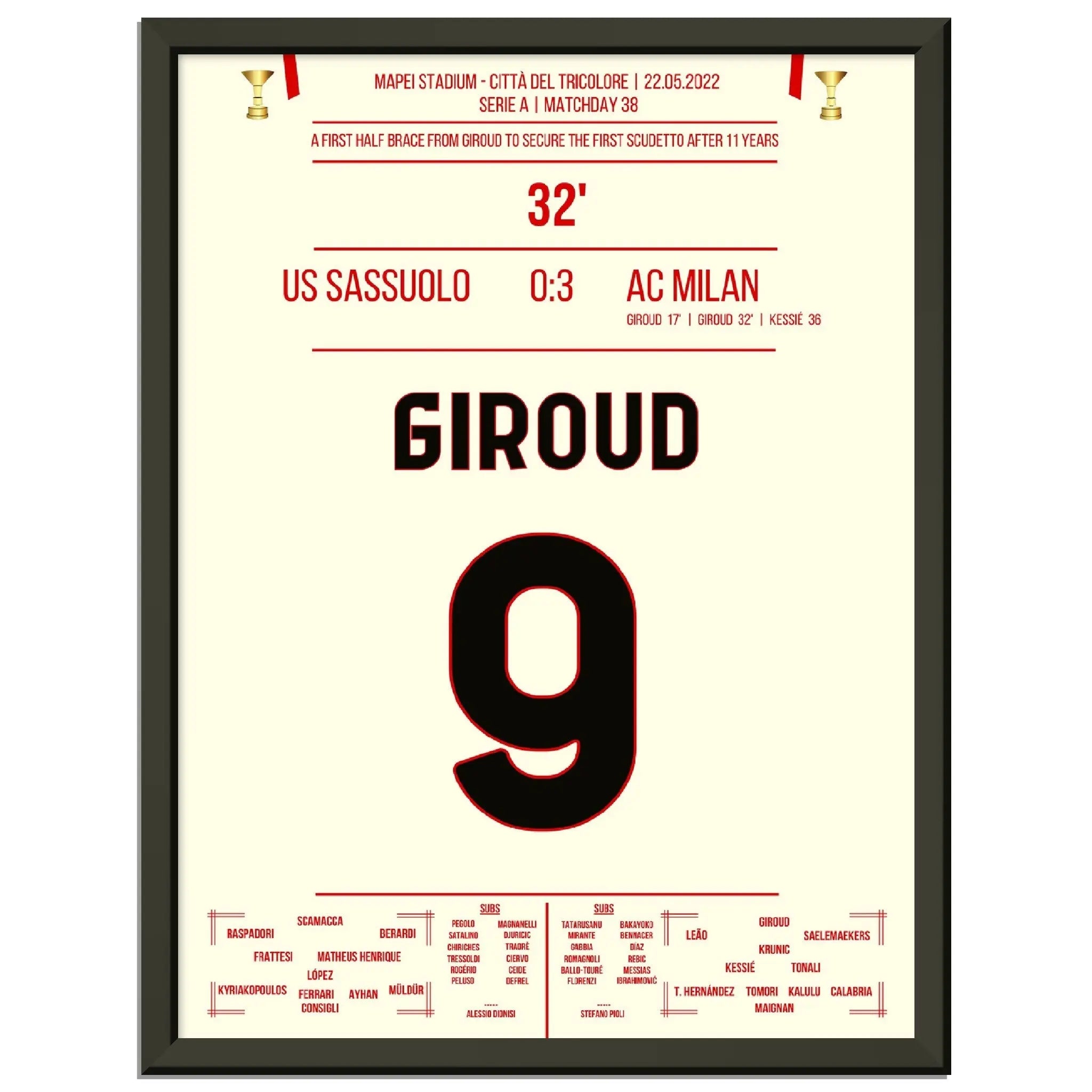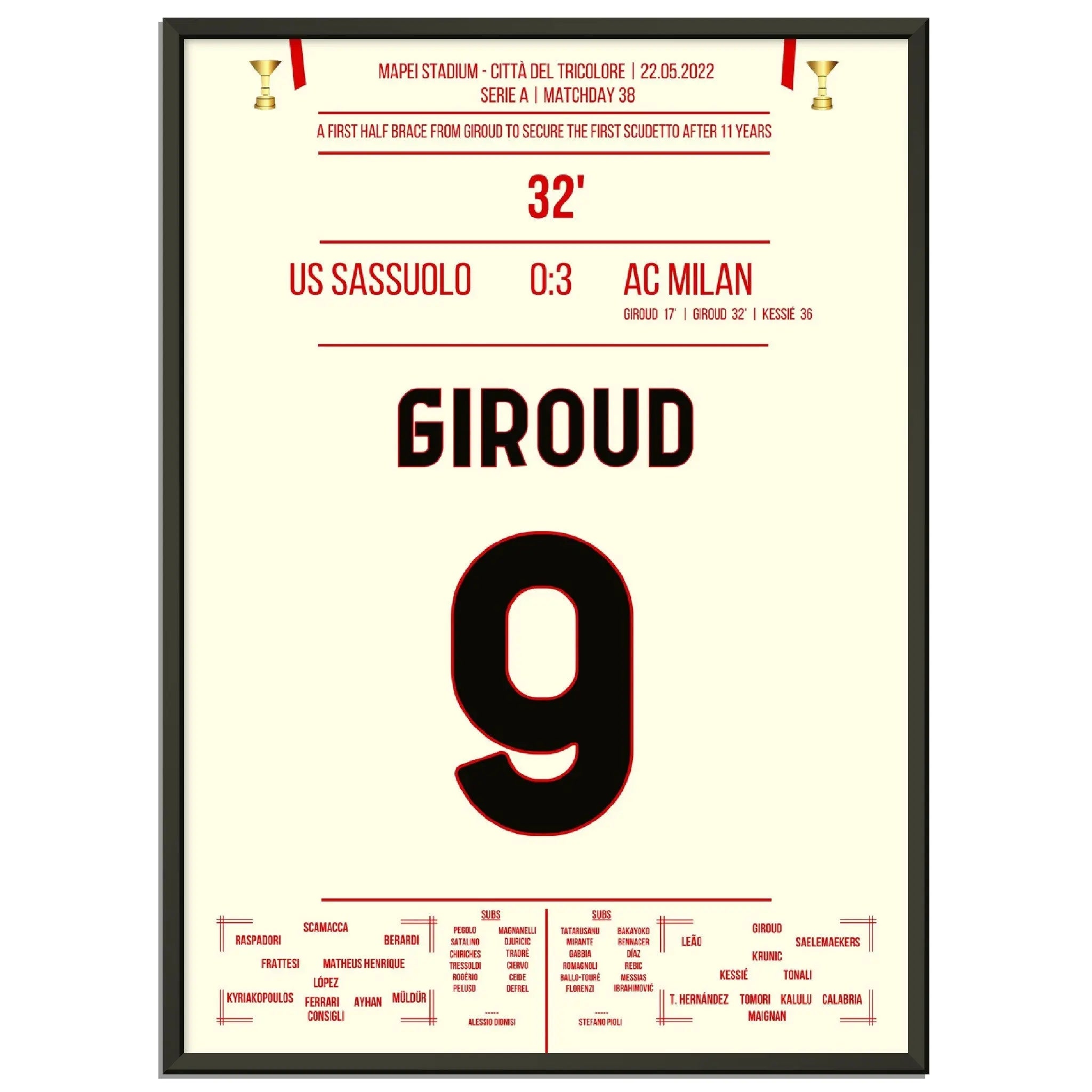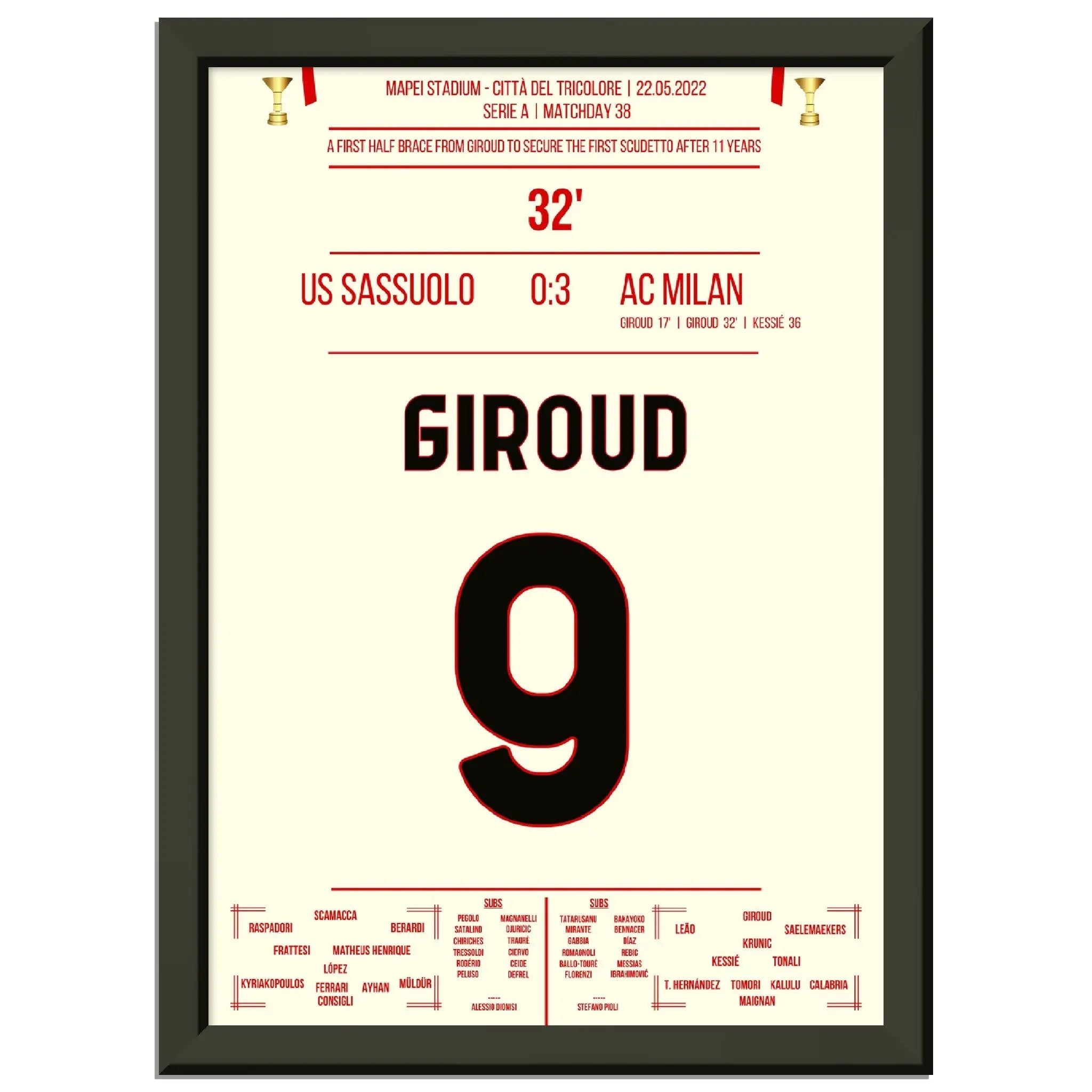 Giroud double contre Sassuolo - Milan remporte le premier Scudetto après 11 ans
