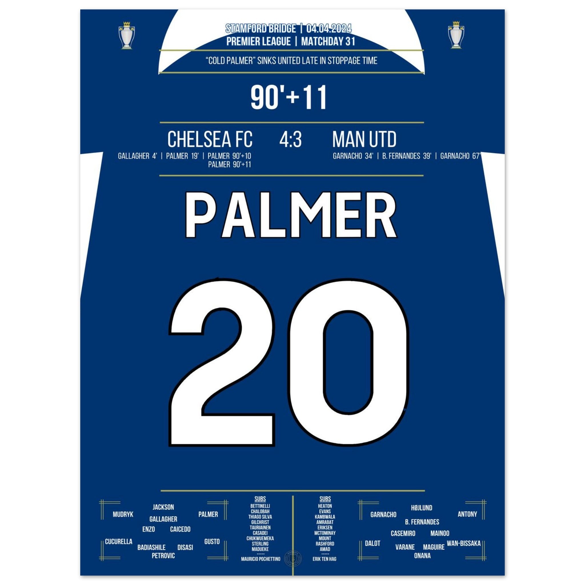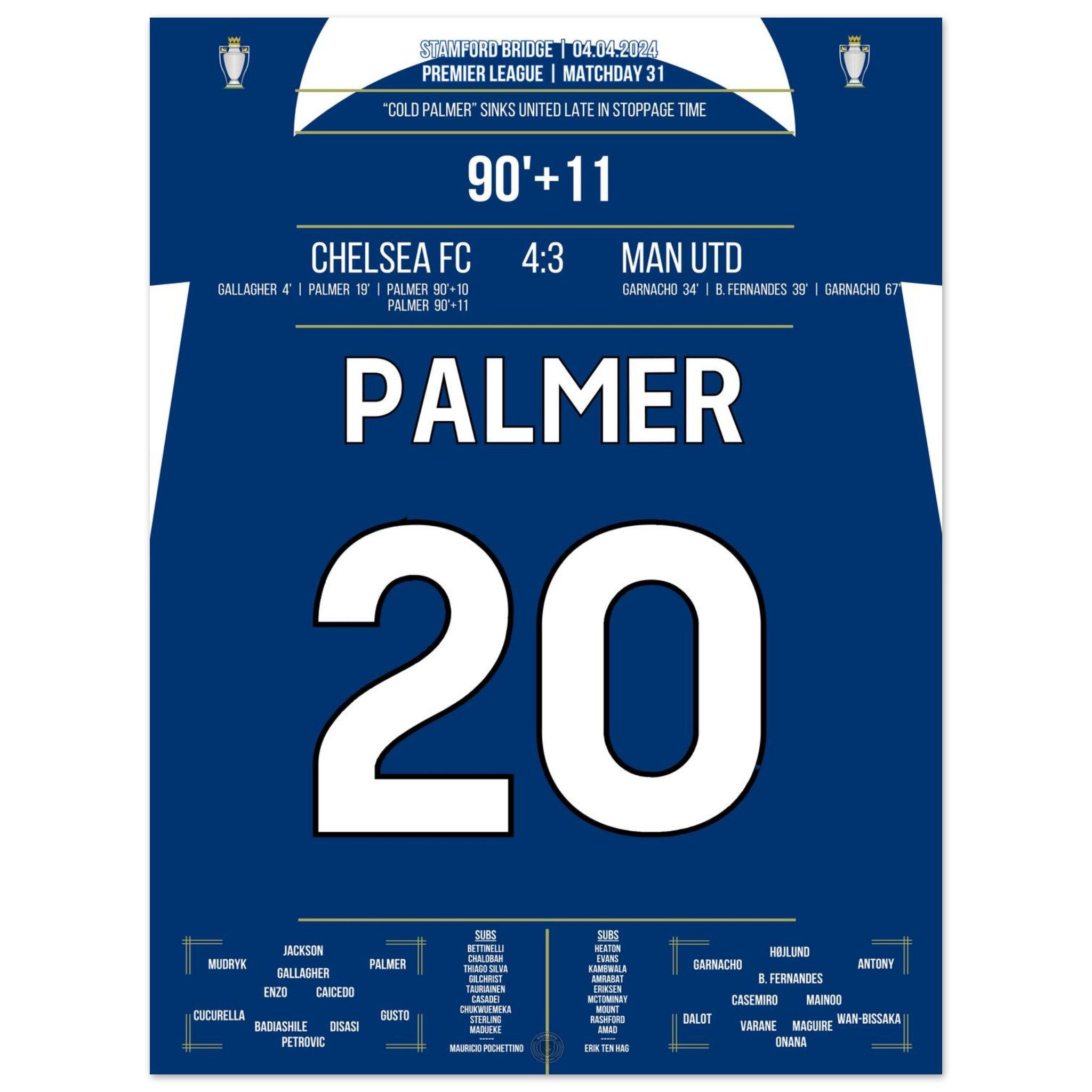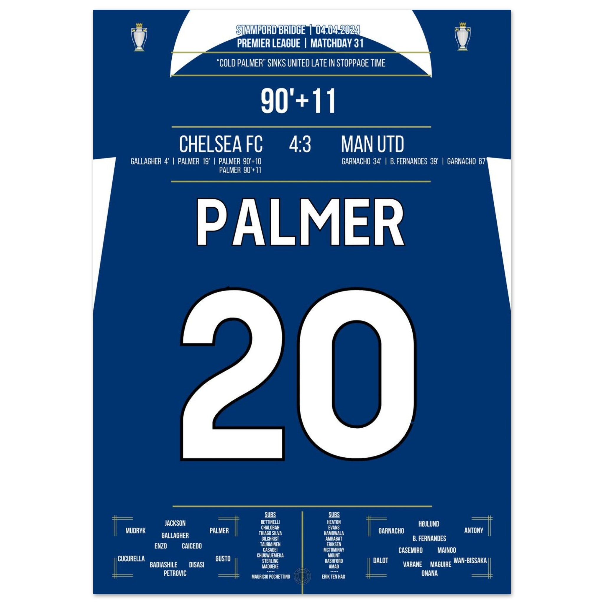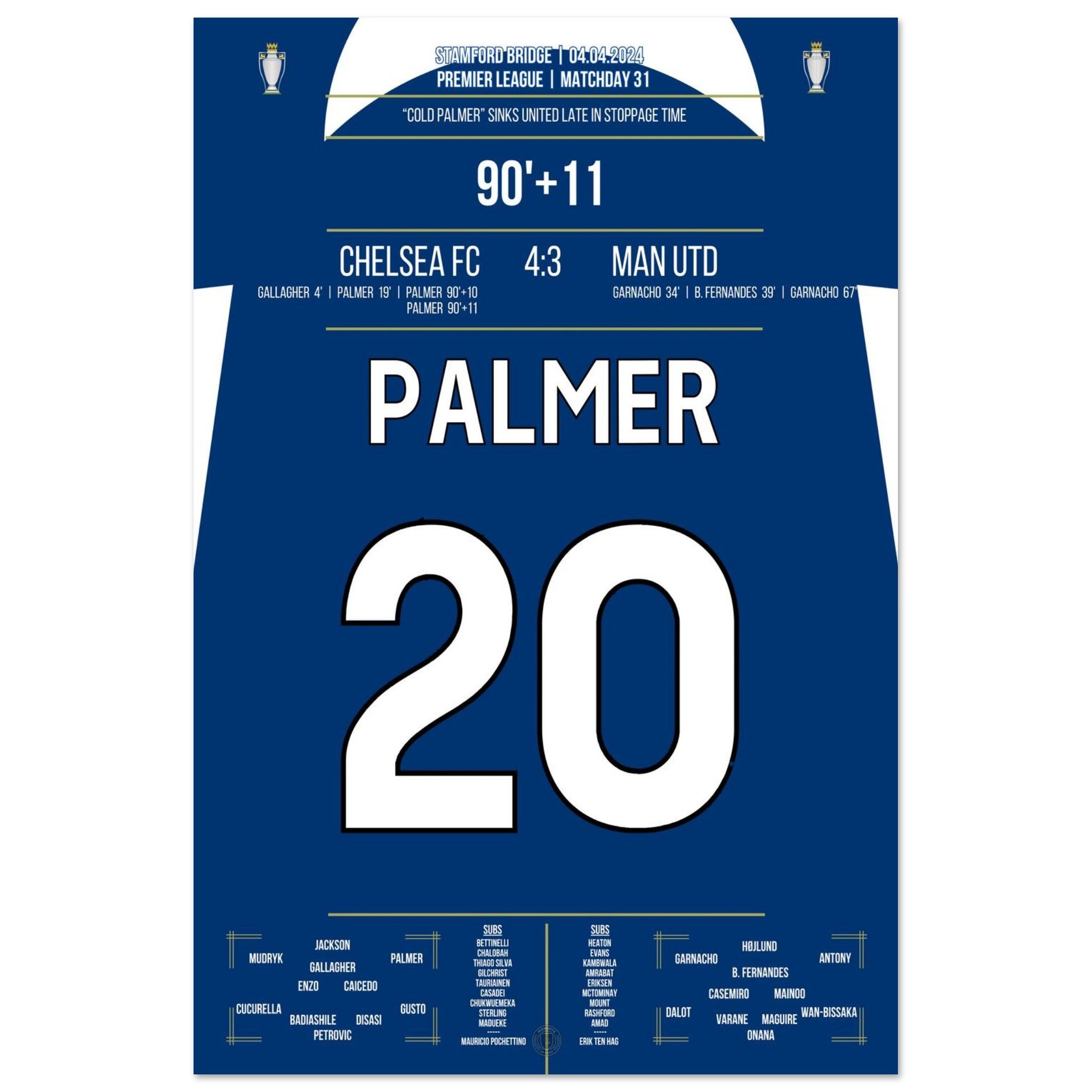 Voici notre impression premium de ce moment de football inoubliable pour une expérience de fan ultime. Imprimée sur du papier de qualité supérieure semi-brillant et épais, cette œuvre d'art brille par ses couleurs rehaussées et son éclat subtil qui fait ressortir chaque détail.