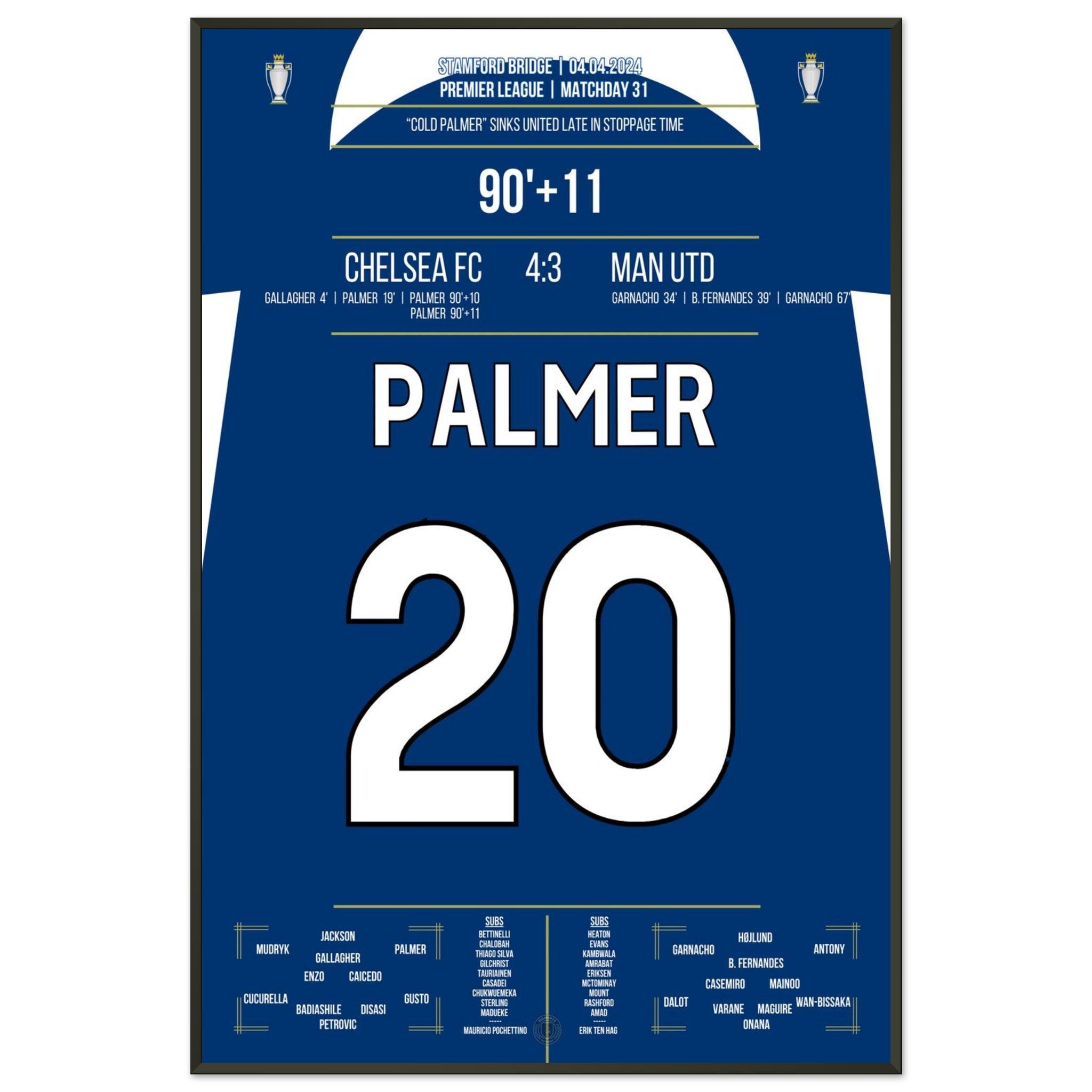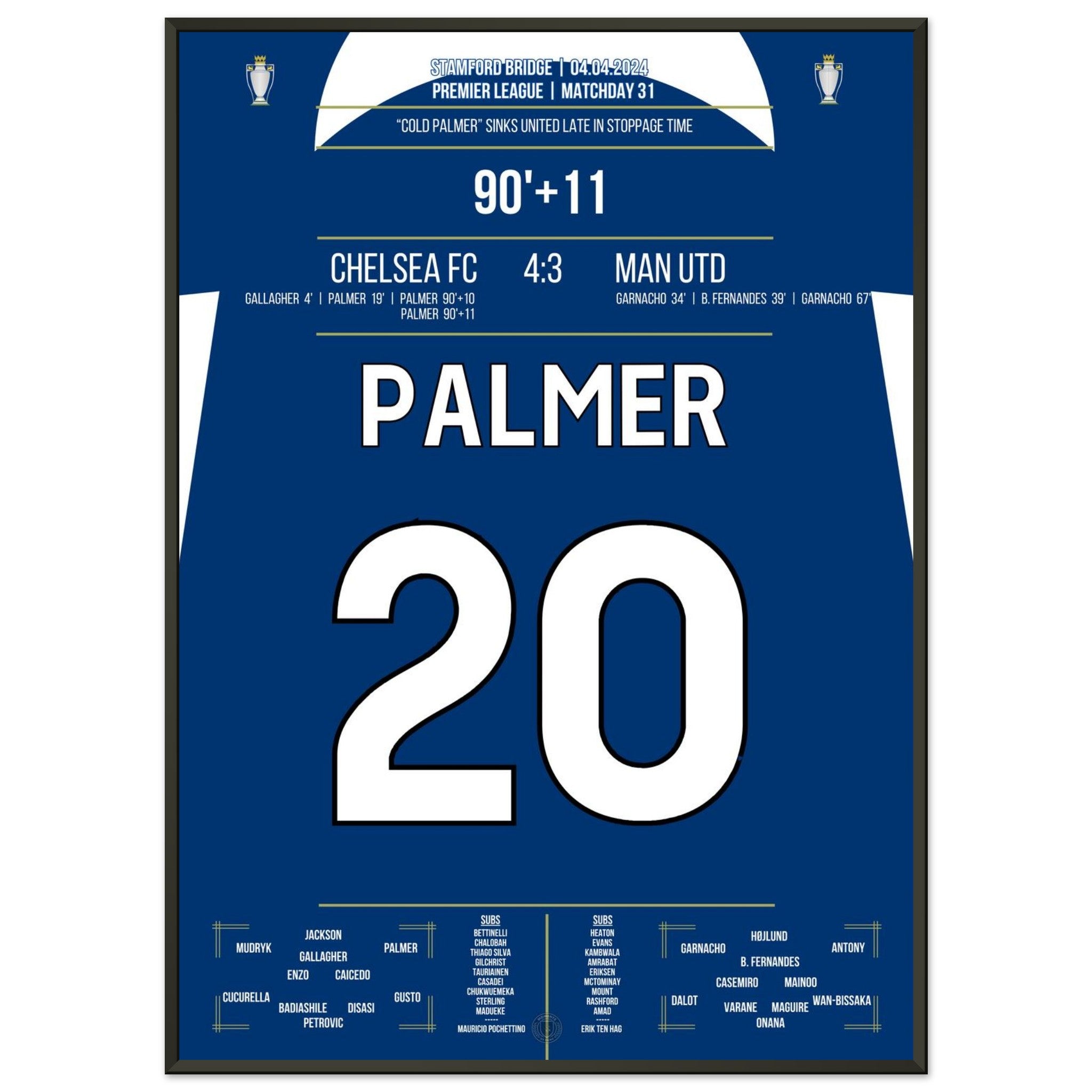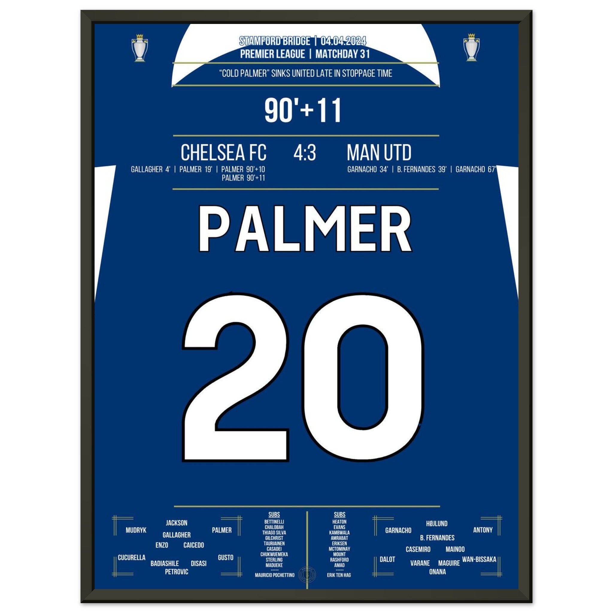 Vous pouvez être assuré que chaque affiche et chaque cadre sont expédiés dans un emballage solide pour garantir qu'ils arrivent en parfait état. C'est le complément parfait à la collection de tout fan de football ou le cadeau parfait pour le fan de football inconditionnel de votre cercle d'amis ou de votre famille.