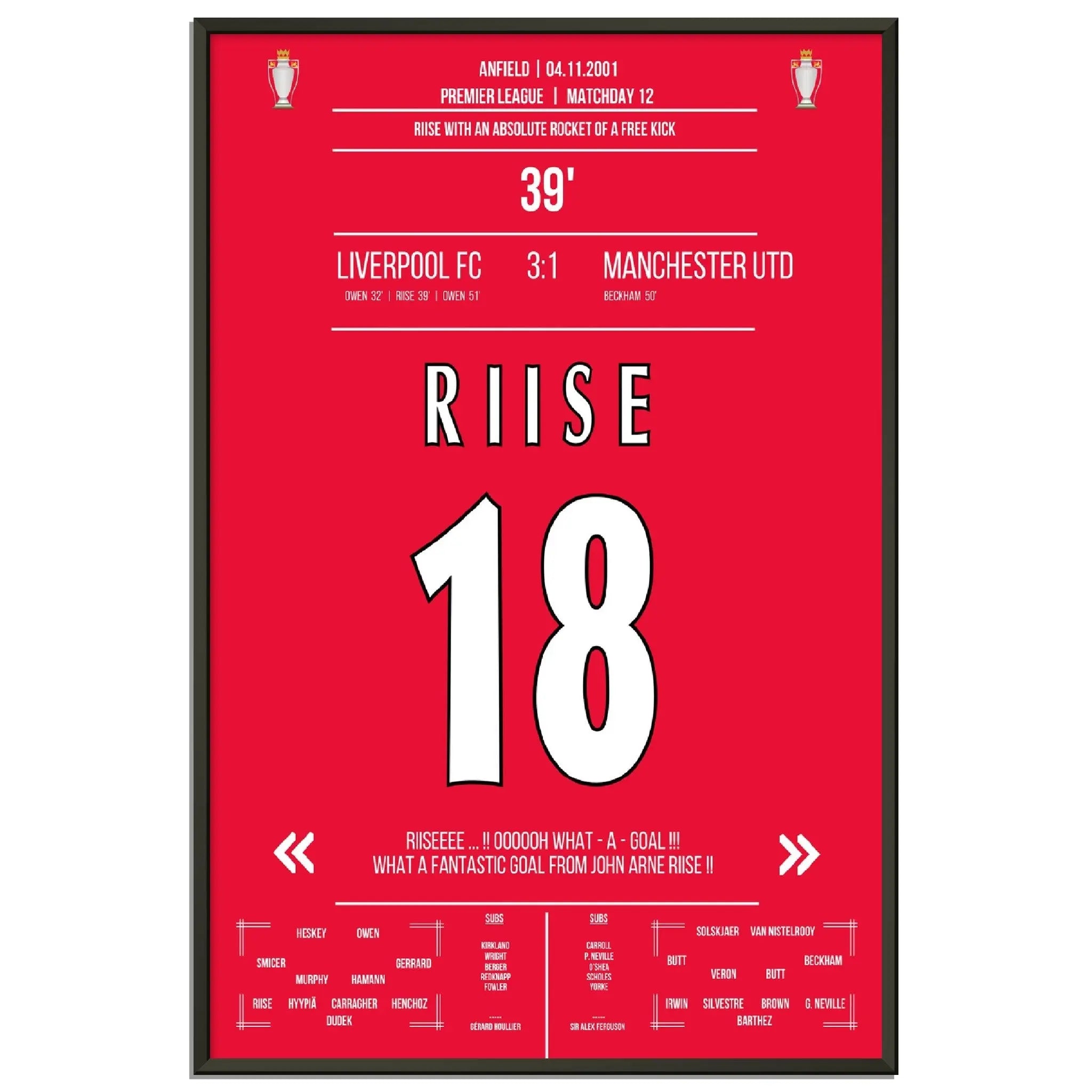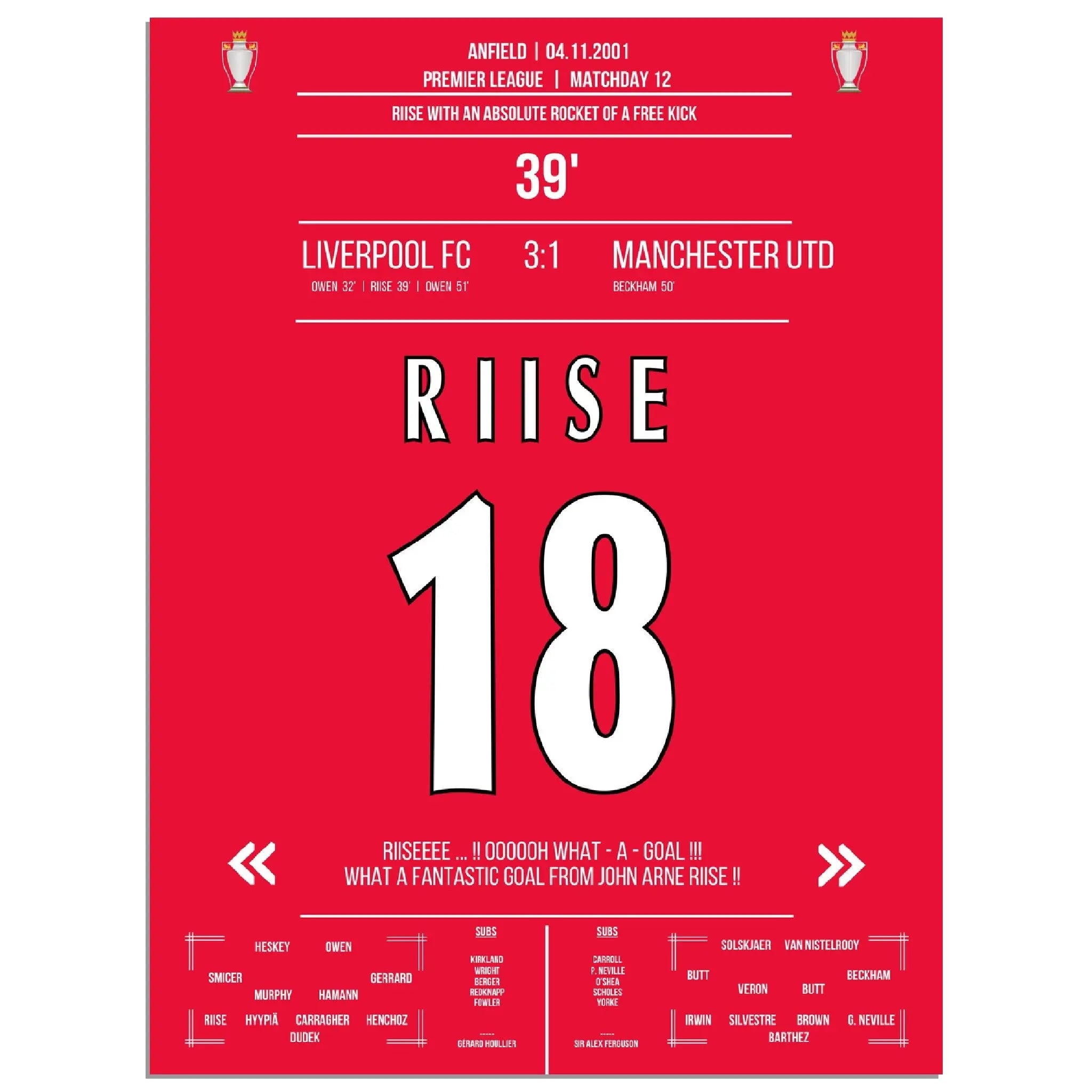 Riise sort le grand jeu lors de la victoire à domicile de Liverpool contre ManU en 2001.