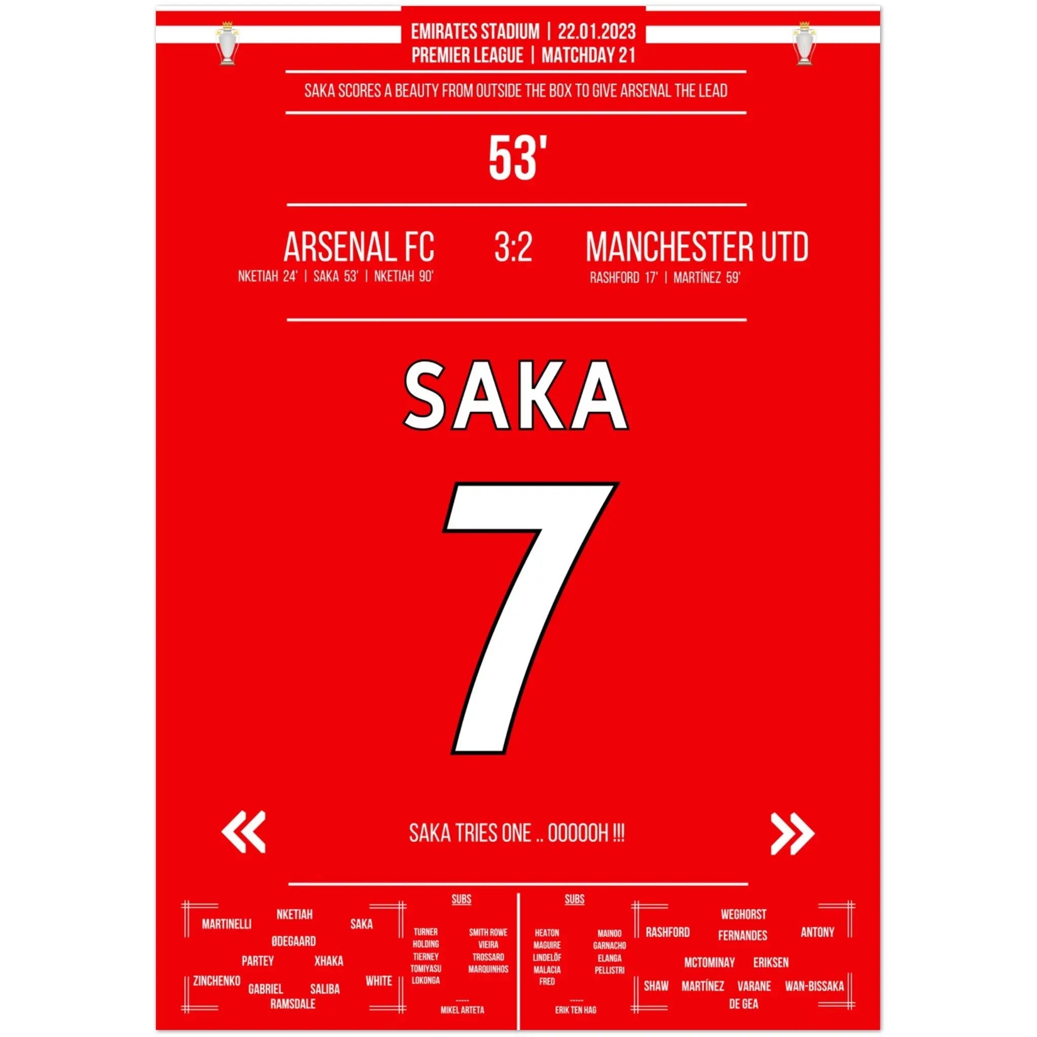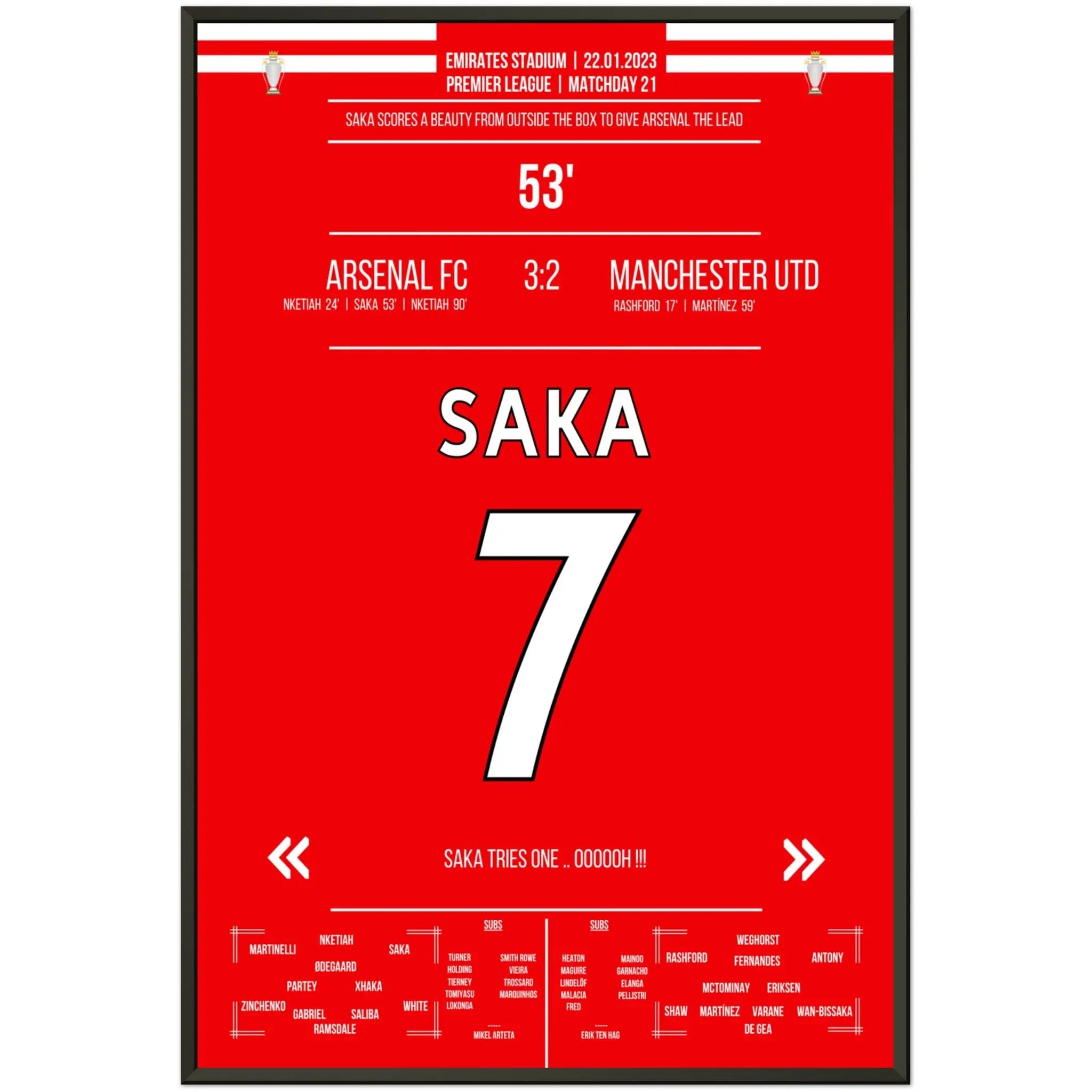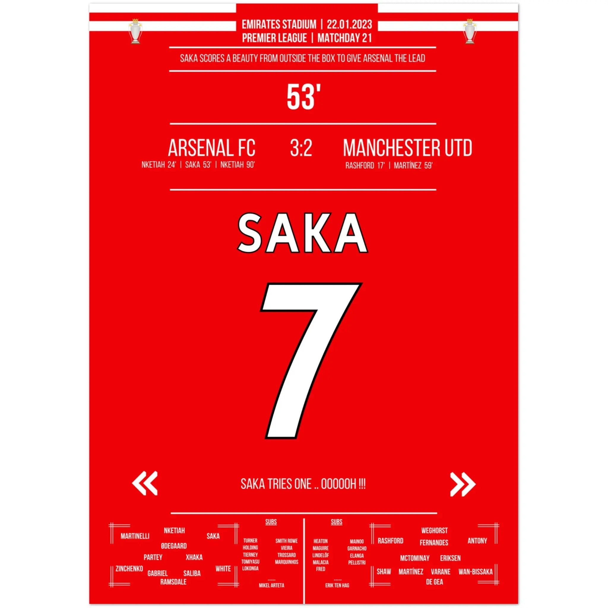 Le but de rêve de Saka de loin contre ManU