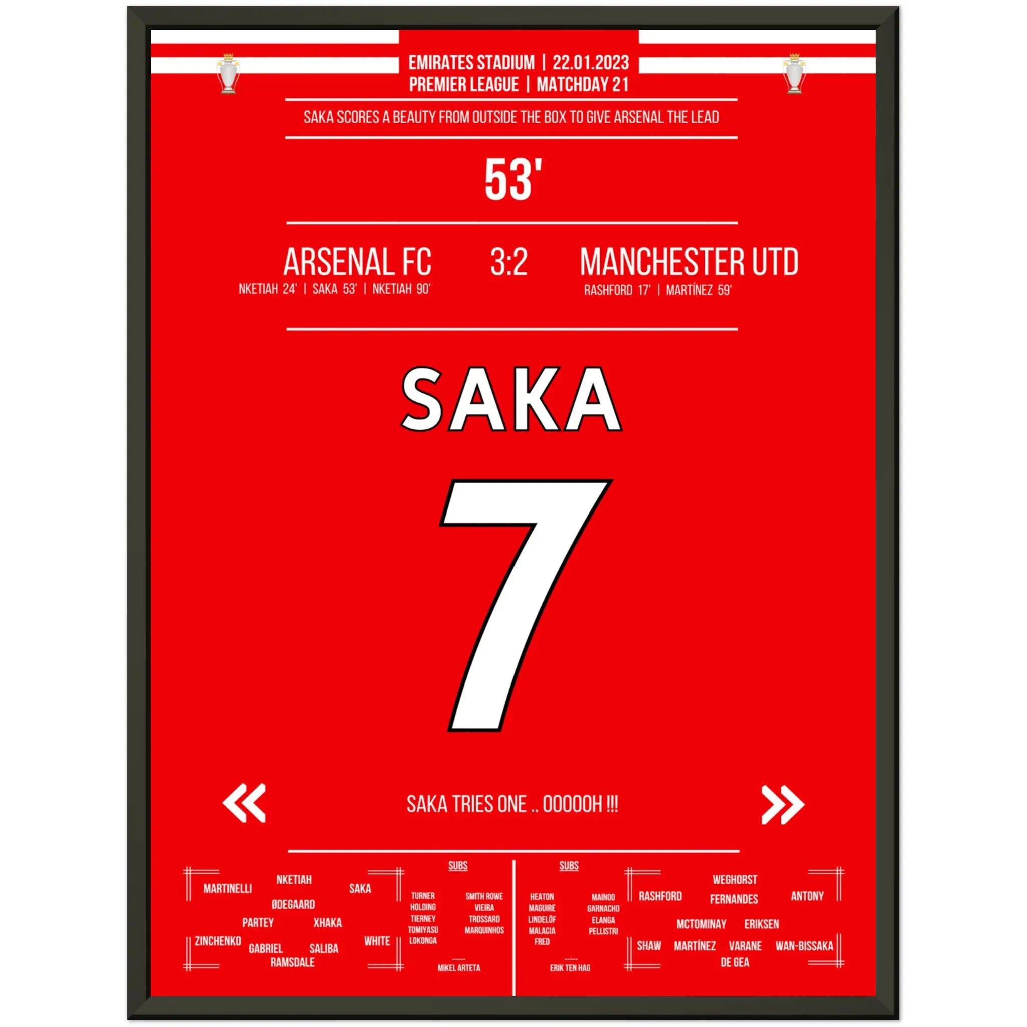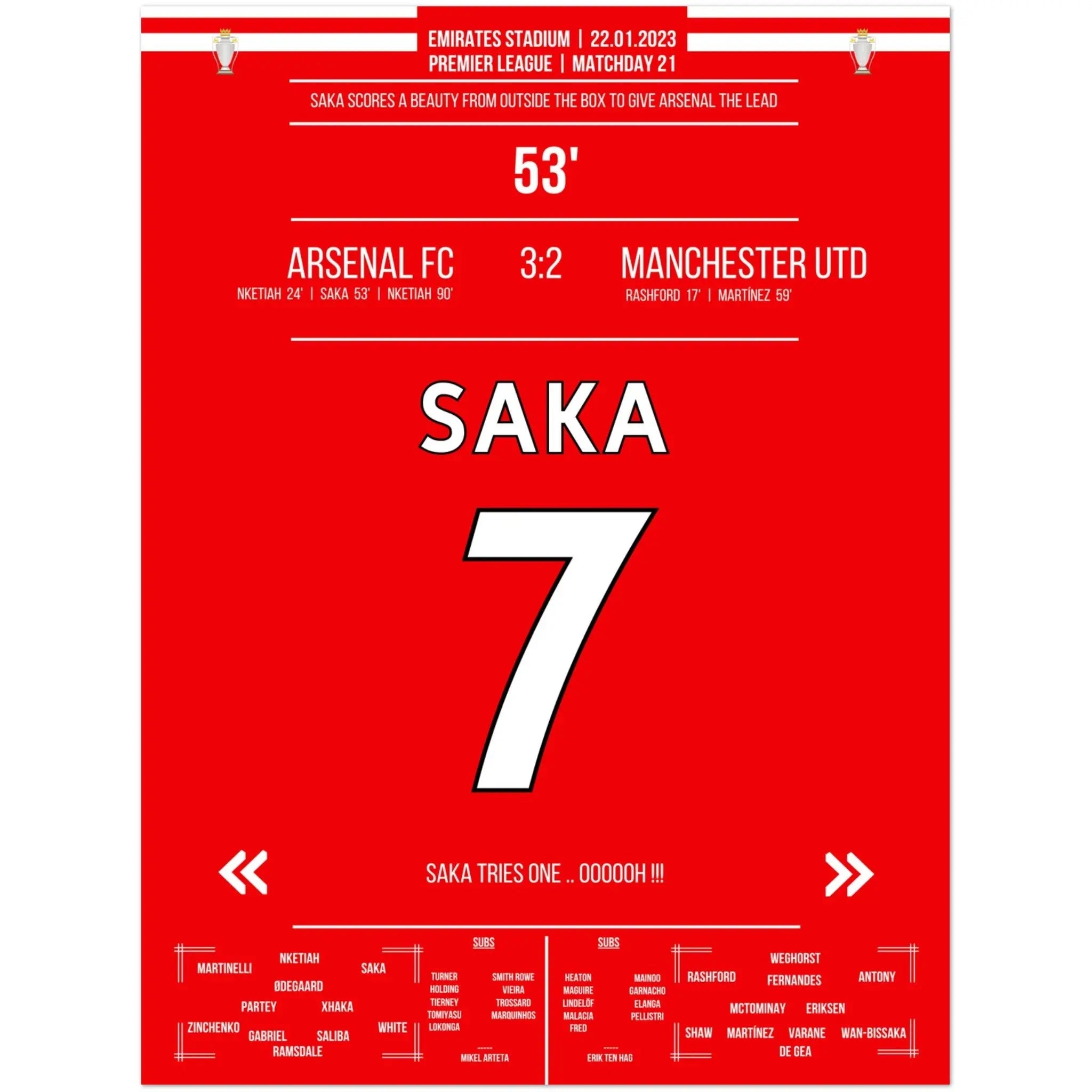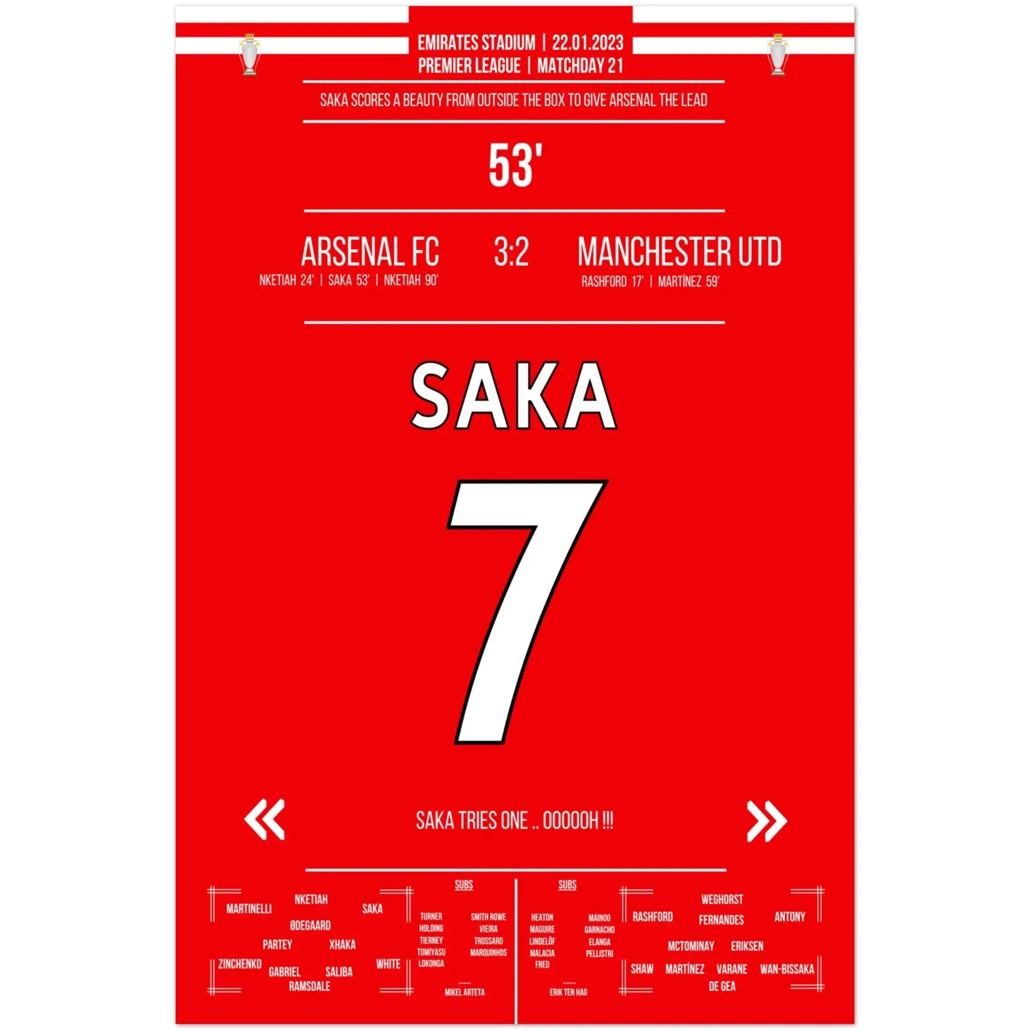 Le but de rêve de Saka de loin contre ManU