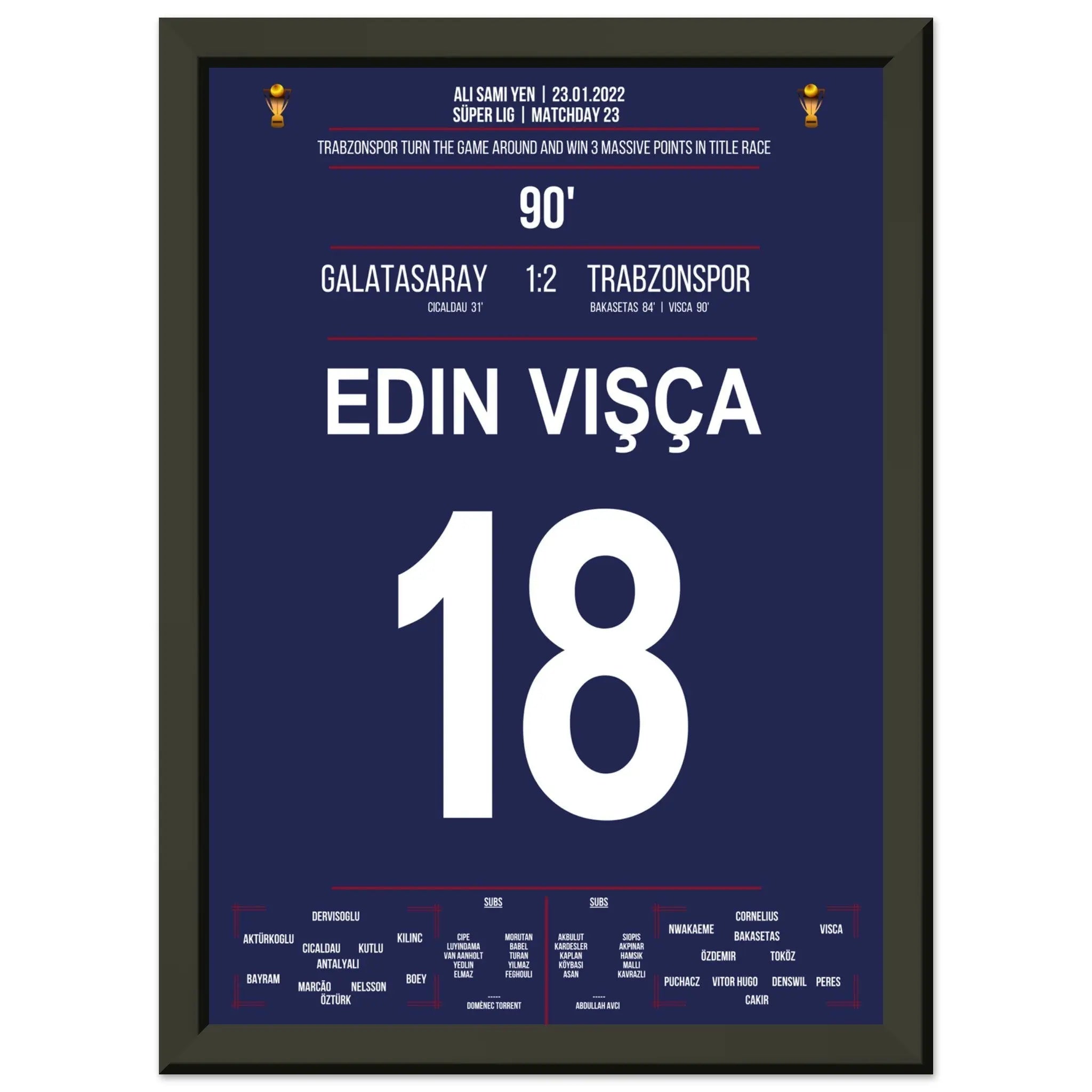 Voici notre impression premium de ce moment de football inoubliable pour une expérience de fan ultime. Imprimée sur du papier de qualité supérieure semi-brillant et épais, cette œuvre d'art brille par ses couleurs rehaussées et son éclat subtil qui fait ressortir chaque détail.